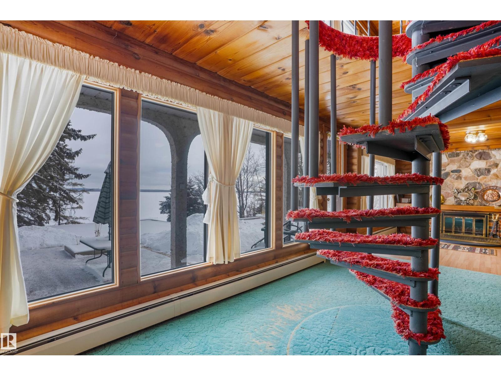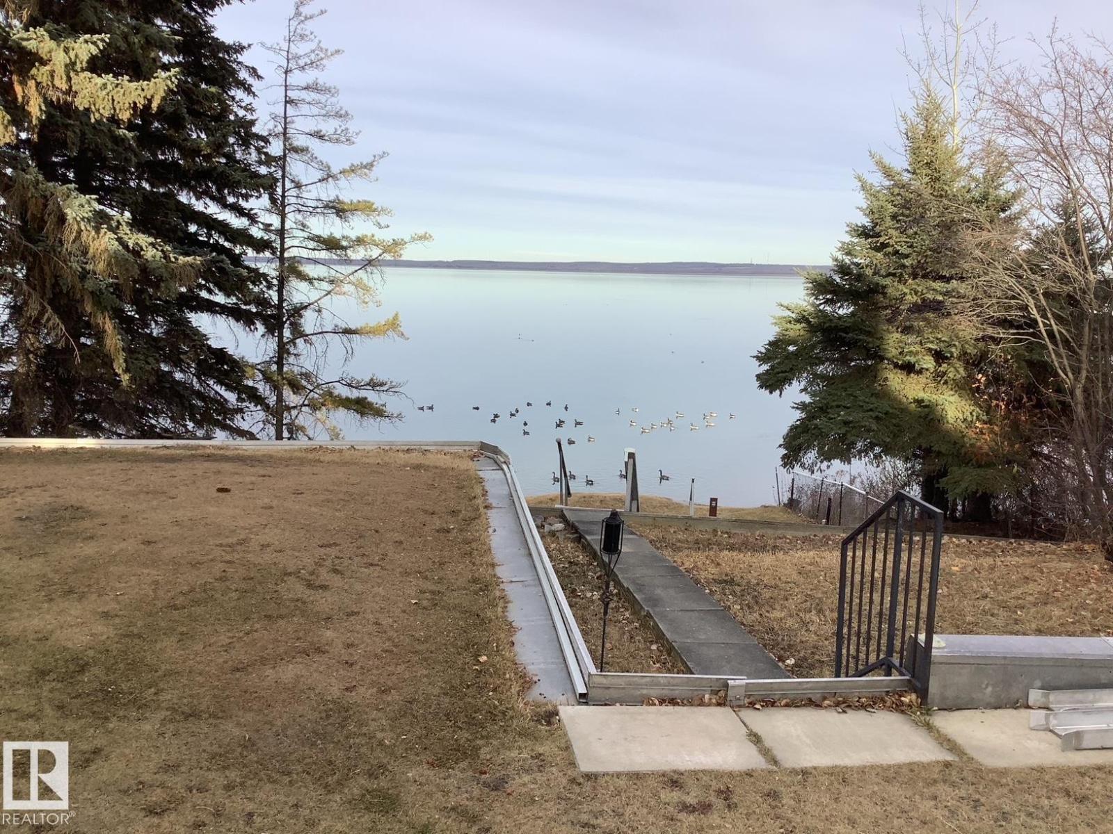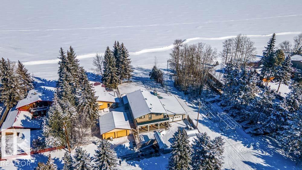 Welcome to Norris Beach, featuring one of the largest lakefront lots in the community and on Pigeon Lake. Enjoy excellent waterfront with a deep drop off and water conditions. This is perfect for those who value clean water and a beautiful shoreline. The lot measures 60 ft wide with a west lot line of 132.86 ft and an east lot line of 167 ft, plus nearly an additional 30 ft of length near the shoreline beyond the property line. Property is also bordered by a municipal reserve on one side offering added privacy. Nearly 2,000 sq ft home includes a double oversized attached garage (27.7x35.8 ft) offers 4 bedrooms, two large balconies, and expansive windows that capture stunning lake views. Additional features include a durable metal roof, powered overhead entrance gate, two automatic lawn mowers, a boiler heating system, Drilled well, circular metal staircase, two fireplaces (gas and wood), a sauna, breathtaking bonus room overlooking the water and a municipal Sewer System! 2 Mins to Village at Pigeon Lake! (id:63190)