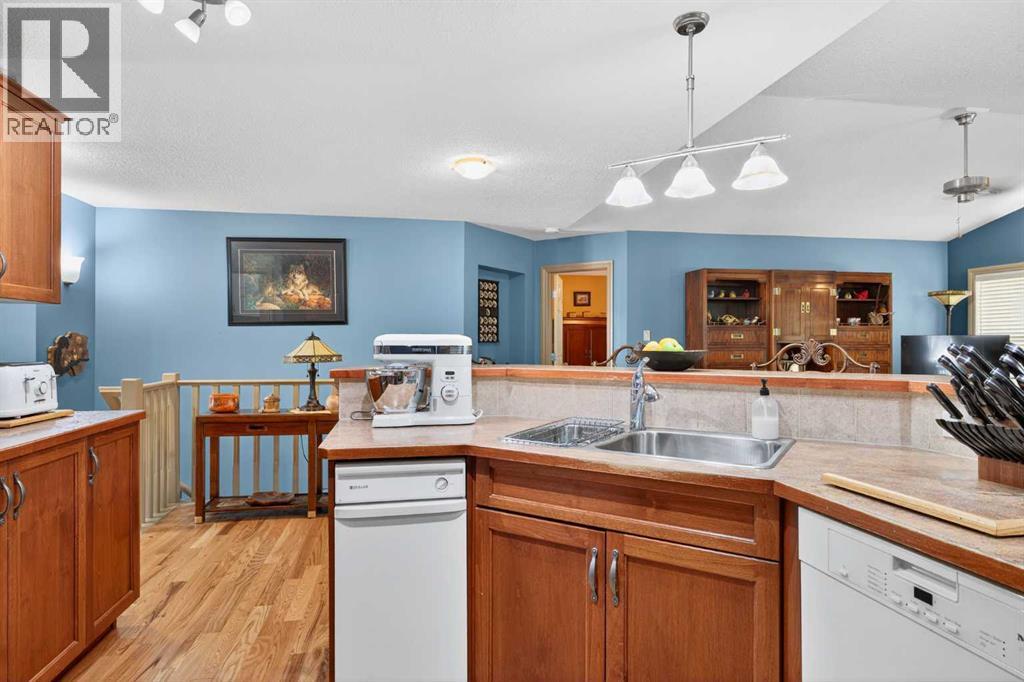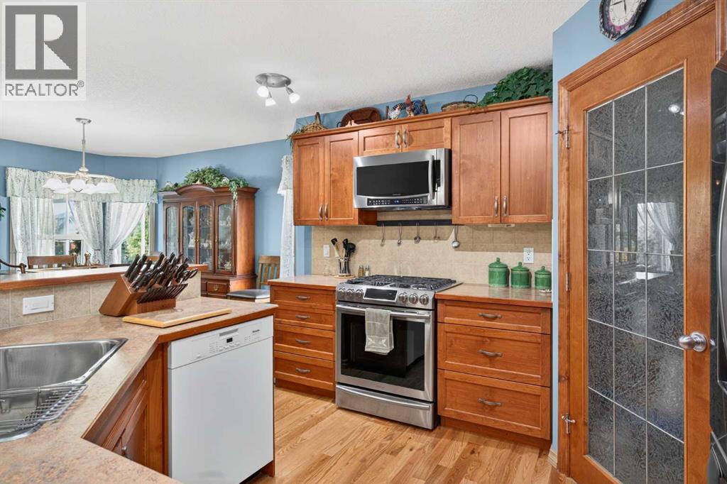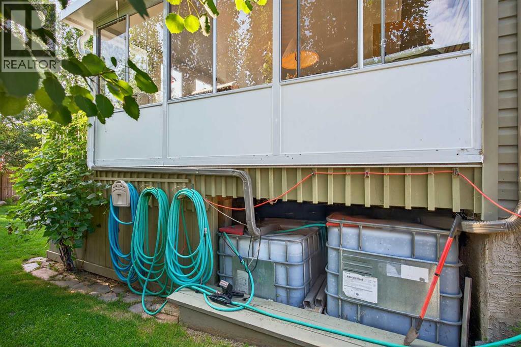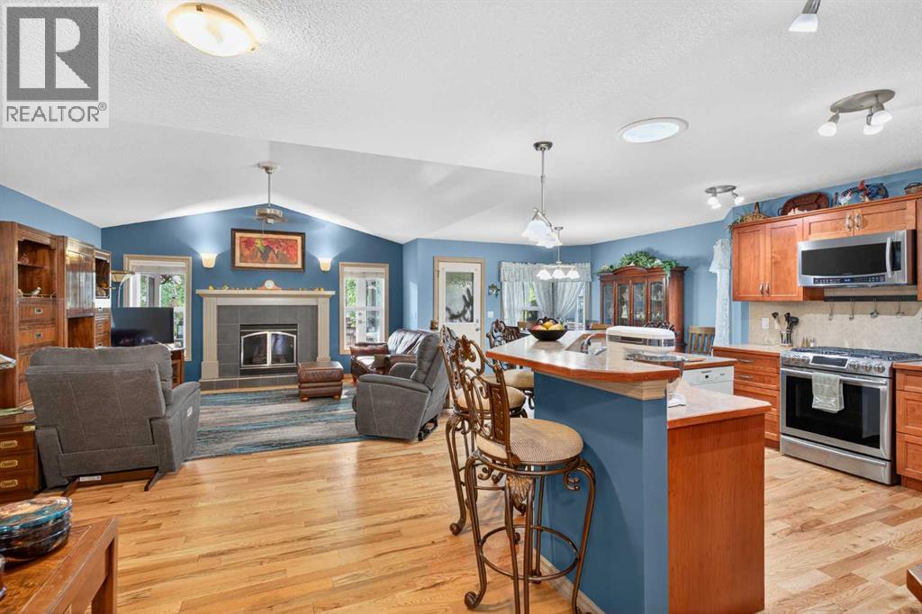 OPEN HOUSE Saturday April 18, 2026 from 12- 2 p.m. 125 Copeland Close, Langdon - where space, sunshine, and small-town charm come to meet. Loved by the same family since they had it built, this 1523 sq ft bungalow is set on a massive, beautifully landscaped, sunshine lot that's ready for year-round gatherings. Imagine morning coffee on a large front porch and relaxing in the evenings in one of two, large, 3 season sun rooms. Enjoy grilling on a natural gas BBQ (included),or gathering round a fire pit on a 23 ft circular cement pad. Two 1,000 litre rain collection tanks under the deck, plus a custom built shed makes gardening easy.Inside the main floor features new hardwood, fresh paint,a bright kitchen with a solar light, and a large walk-in pantry with an upright freezer included. The kitchen boasts a 1 year old fridge/freezer, a gas stove with 220 V power behind and a built in microwave above. The super quiet dishwasher, and trash compactor complete the thoughtful extras. 4 island height bar stools are included.The main floor laundry has a new washer and dryer. The main floor 3 piece bathroom is conveniently located with garage access.The main floor also features a bright, versatile office — perfect for working from home, running a small business, or creating a quiet homework space. With its convenient location near the front entrance, it offers both privacy and easy access for clients or guests, without disturbing the rest of the household.The oversized primary bedroom has a walk-in closet, 4 piece ensuite bath, and access to one of the sunrooms.The basement is completely developed with family comfort and entertainment in mind. There are 2 large bedrooms, each with custom features and a generously sized 4 piece bath. There is a craft room and large family room with wet bar and bar fridge included. One of two natural gas fireplaces complete this well planned space. The oversized attached garage is a handyman's dream with built in cabinets, 220 V wirin g, and counter top work space. (id:63190)