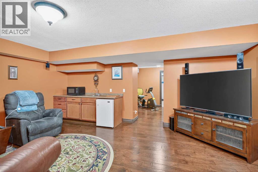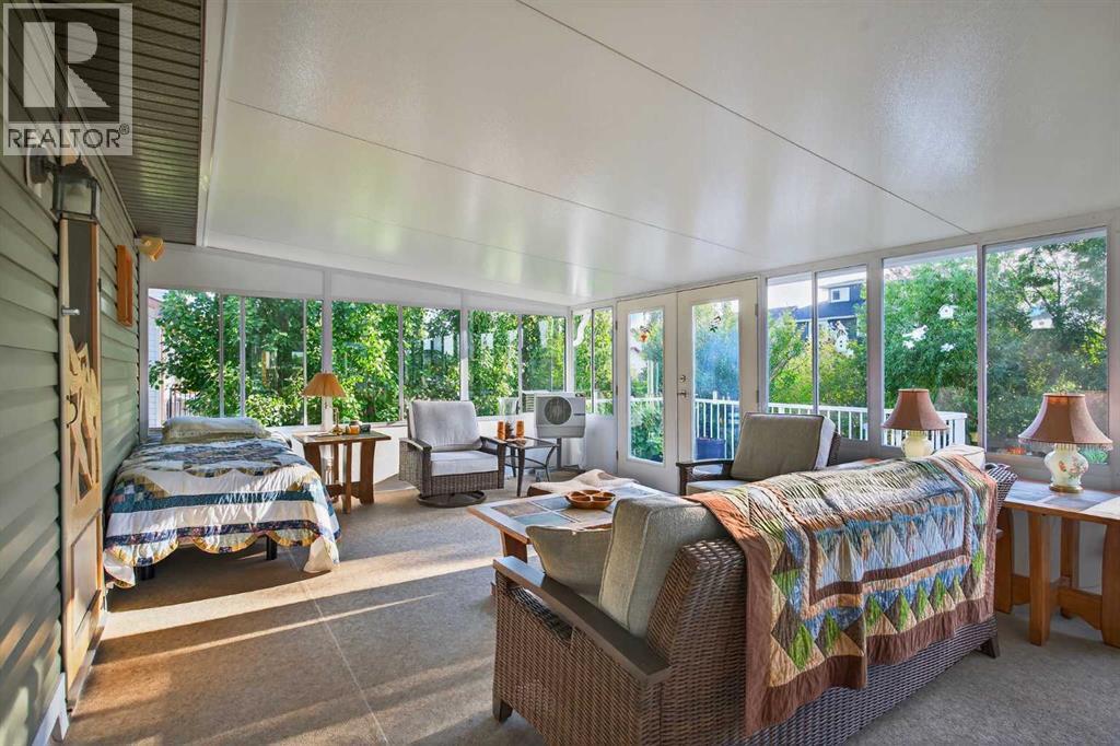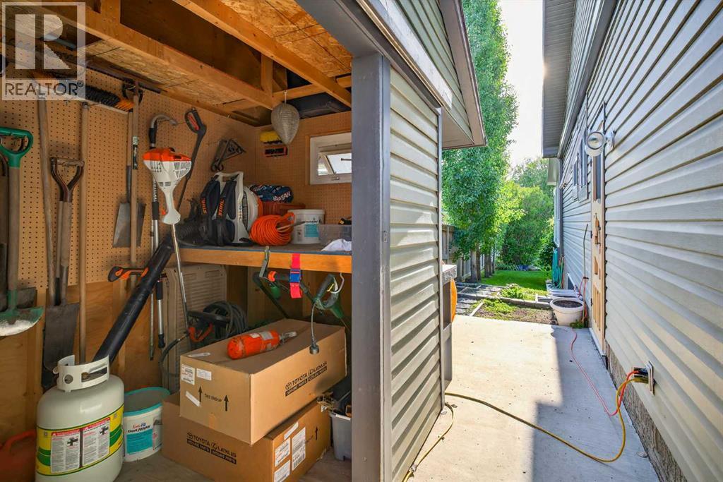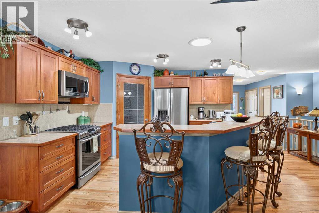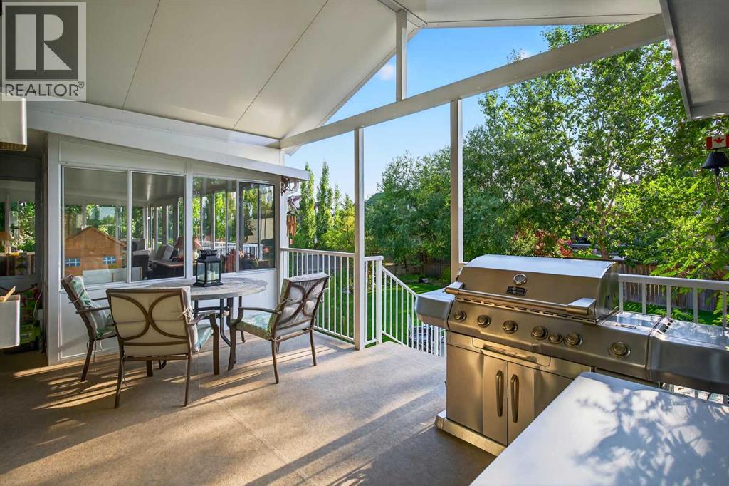 OPEN HOUSE Saturday April 18, 2026 from 12- 2 p.m. 125 Copeland Close, Langdon - where space, sunshine, and small-town charm come to meet. Loved by the same family since they had it built, this 1523 sq ft bungalow is set on a massive, beautifully landscaped, sunshine lot that's ready for year-round gatherings. Imagine morning coffee on a large front porch and relaxing in the evenings in one of two, large, 3 season sun rooms. Enjoy grilling on a natural gas BBQ (included),or gathering round a fire pit on a 23 ft circular cement pad. Two 1,000 litre rain collection tanks under the deck, plus a custom built shed makes gardening easy.Inside the main floor features new hardwood, fresh paint,a bright kitchen with a solar light, and a large walk-in pantry with an upright freezer included. The kitchen boasts a 1 year old fridge/freezer, a gas stove with 220 V power behind and a built in microwave above. The super quiet dishwasher, and trash compactor complete the thoughtful extras. 4 island height bar stools are included.The main floor laundry has a new washer and dryer. The main floor 3 piece bathroom is conveniently located with garage access.The main floor also features a bright, versatile office — perfect for working from home, running a small business, or creating a quiet homework space. With its convenient location near the front entrance, it offers both privacy and easy access for clients or guests, without disturbing the rest of the household.The oversized primary bedroom has a walk-in closet, 4 piece ensuite bath, and access to one of the sunrooms.The basement is completely developed with family comfort and entertainment in mind. There are 2 large bedrooms, each with custom features and a generously sized 4 piece bath. There is a craft room and large family room with wet bar and bar fridge included. One of two natural gas fireplaces complete this well planned space. The oversized attached garage is a handyman's dream with built in cabinets, 220 V wirin g, and counter top work space. (id:63190)