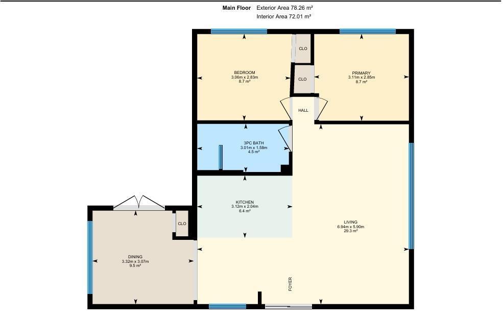 | Bedroom 2 | Main level | 3.06 x 2.83 | — |
