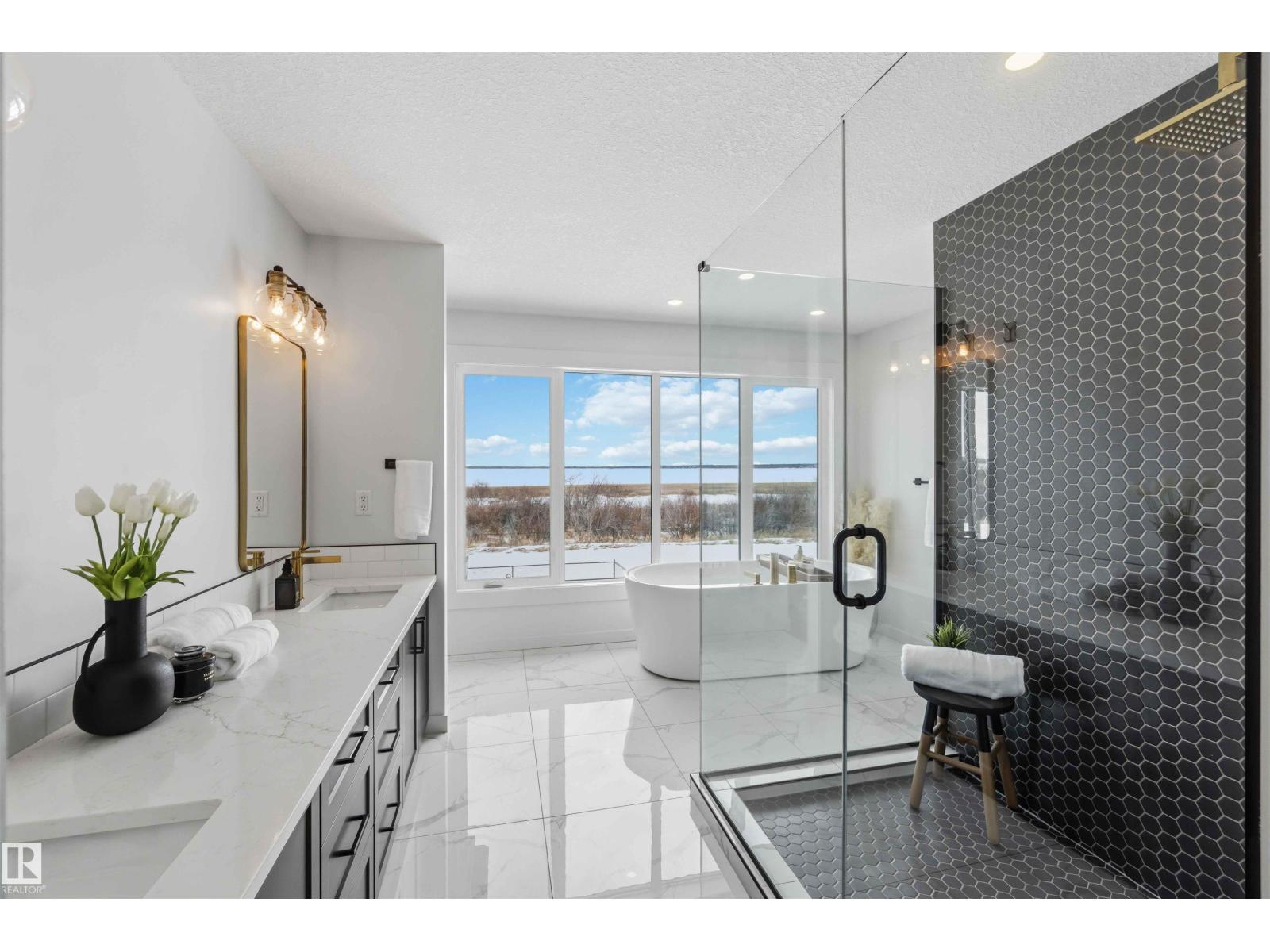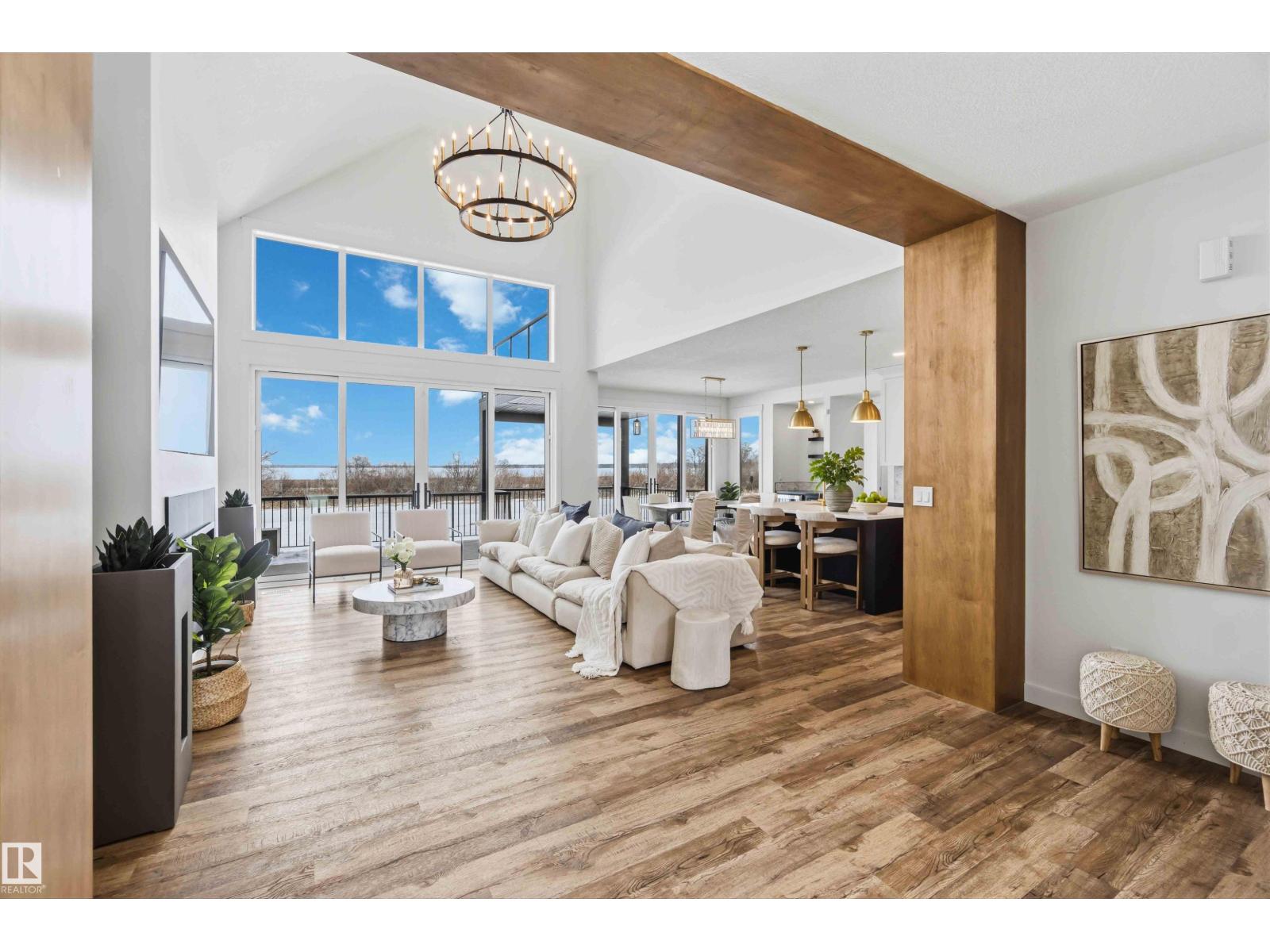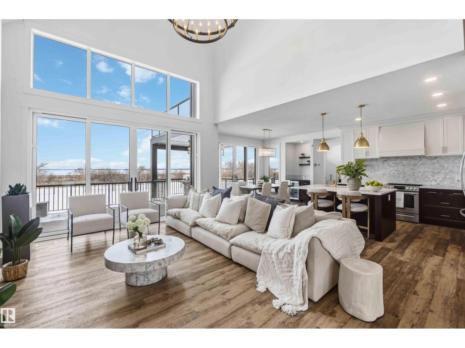 Experience luxury lakefront living in the exclusive gated community of Windmill Harbour on Lac Ste. Anne. This stunning custom-built home offers breathtaking waterfront views, exceptional design, and the privacy of one of the area’s most sought-after communities. The main level features soaring ceilings, expansive windows, and a bright open-concept layout that fills the home with natural light while showcasing the spectacular lake views. The chef-inspired kitchen flows seamlessly into the dining and living areas—perfect for entertaining or simply relaxing while enjoying the tranquil waterfront setting. Upstairs you’ll find two spacious bedrooms, including an impressive primary retreat complete with a spa-like ensuite and a generous walk-in closet. Every detail has been thoughtfully designed to provide both elegance and comfort. The basement is already framed for additional bedrooms, a bathroom, and a large family room—offering excellent potential to expand the living space to suit your needs. (id:63190)