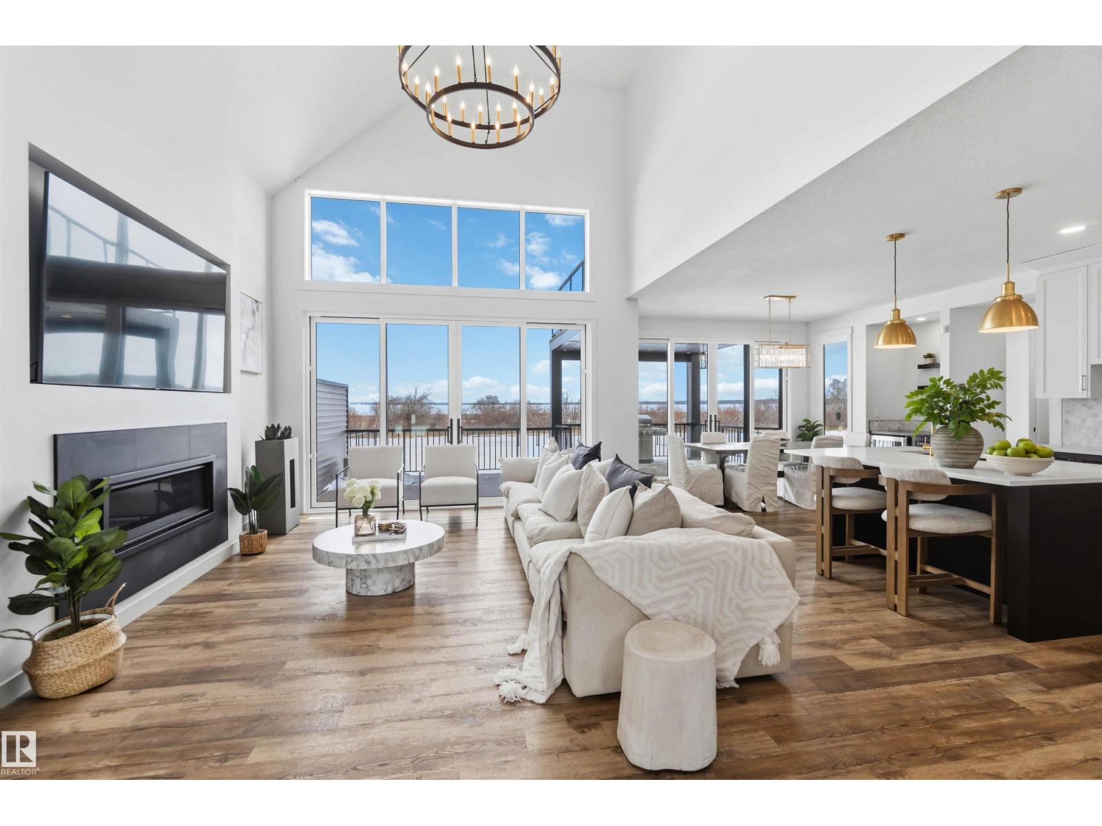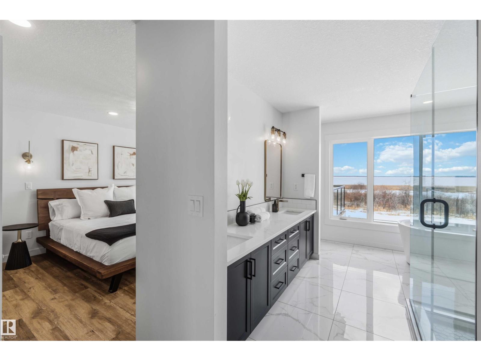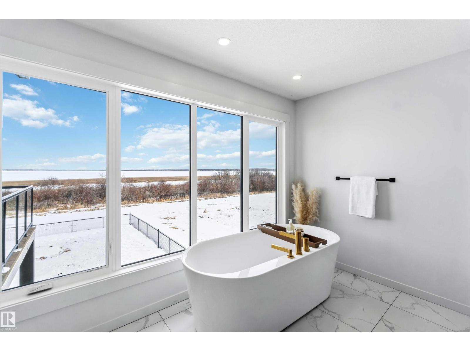 Experience luxury lakefront living in the exclusive gated community of Windmill Harbour on Lac Ste. Anne. This stunning custom-built home offers breathtaking waterfront views, exceptional design, and the privacy of one of the area’s most sought-after communities. The main level features soaring ceilings, expansive windows, and a bright open-concept layout that fills the home with natural light while showcasing the spectacular lake views. The chef-inspired kitchen flows seamlessly into the dining and living areas—perfect for entertaining or simply relaxing while enjoying the tranquil waterfront setting. Upstairs you’ll find two spacious bedrooms, including an impressive primary retreat complete with a spa-like ensuite and a generous walk-in closet. Every detail has been thoughtfully designed to provide both elegance and comfort. The basement is already framed for additional bedrooms, a bathroom, and a large family room—offering excellent potential to expand the living space to suit your needs. (id:63190)