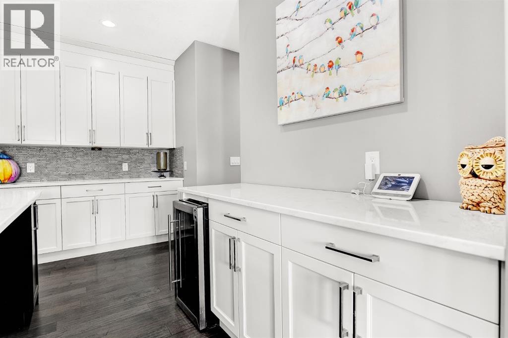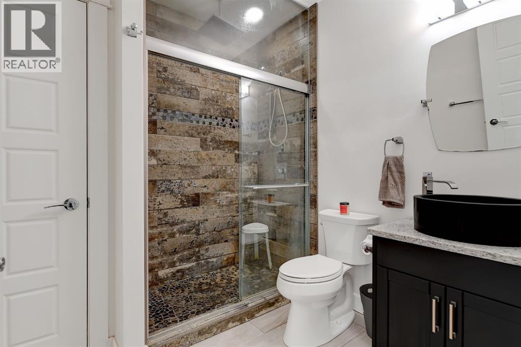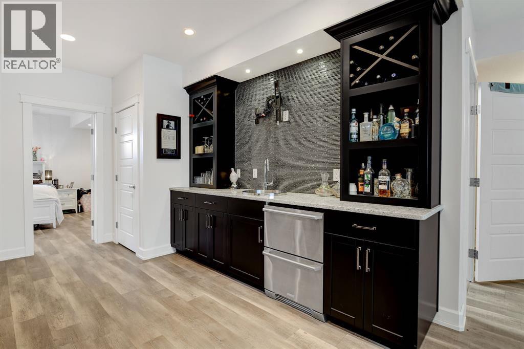 Stunning Custom Two-Storey with Lake Views on a Private Cul-de-SacWelcome to this beautifully crafted, fully developed 6 bedroom, 4 bathroom custom two-storey home offering stunning lake views and exceptional living space throughout. Thoughtfully designed for both comfort and entertaining, this impressive residence blends luxury finishes with outstanding functionality.The heart of the home is the chef-inspired kitchen featuring a large island, wine fridge, stylish backsplash, and abundant cabinetry—perfect for cooking and gathering. The spacious living room showcases soaring 18-ft tray ceilings and a dramatic floor-to-ceiling stone fireplace that creates a warm and inviting atmosphere.The main floor primary suite is a true retreat, complete with custom closet built-ins and a luxurious ensuite featuring dual vanities, a soaker tub, private laundry, and a separate walk-in shower. Upstairs you’ll find three additional bedrooms and second laundry area.The fully developed lower level is designed for entertaining and relaxation, featuring a custom wine room, built-in bar, two additional bedrooms, a large family room, gym area, and a spa-like bathroom with steam shower.Outside, the property continues to impress with a 38’ x 38’ heated triple garage with 9-ft doors and drive-through bay, paved RV parking with exterior waste hookup, and a 0.52-acre fully fenced pie-shaped lot located in a quiet cul-de-sac. Enjoy the beautifully landscaped yard with turf lawn, stamped concrete patio, greenhouse, and storage shed.Additional highlights include central air conditioning, high-efficiency furnace, irrigation system, and a massive 40’ x 30’ heated shop with 14-ft doors. The shop also features a studio apartment complete with bathroom and kitchenette, offering excellent flexibility for guests, workspace, or rental potential.A rare opportunity offering luxury, space, and exceptional amenities in a prime location. (id:63190)