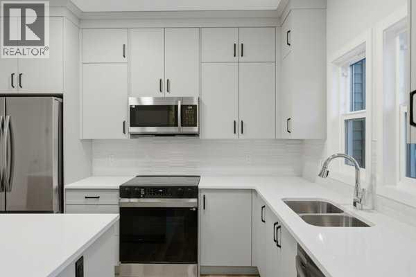 Welcome to 2157 Bayview Drive — The Old Castle — a stunning quick possession home crafted by McKee Homes, proudly recognized as Best Builder for 17 consecutive years. This beautifully finished 3 bedroom, 2.5 bathroom two-storey is nestled in the growing and vibrant community of Bayview, Airdrie, and is loaded with quality touches throughout including soaring 9'1" ceilings, an open concept living and dining area with Luxury Vinyl Plank flooring, a gorgeous kitchen with 1¼" Quartz countertops, pantry, and under-mount sinks. A welcoming front entry and a practical side door entry add everyday convenience, perfect for Alberta living. Upstairs, the spacious Owner's Suite offers a private ensuite retreat with heated floors alongside two additional bedrooms, a full bathroom, and linen closet. This home comes complete with 5 appliances, blind coverings throughout, a detached double garage, and fully landscaped front and rear yards — truly nothing left to do but move in. Enjoy scenic pathways, parks, a paved pump track, walkable schools, and quick access to Yankee Valley Boulevard, Veterans Boulevard, Chinook Winds Park, and all of Airdrie's daily amenities right at your doorstep. Built with McKee's hallmark commitment to Honesty in Every Detail, Quality in Every Corner, and Integrity in Every Home (id:63190)