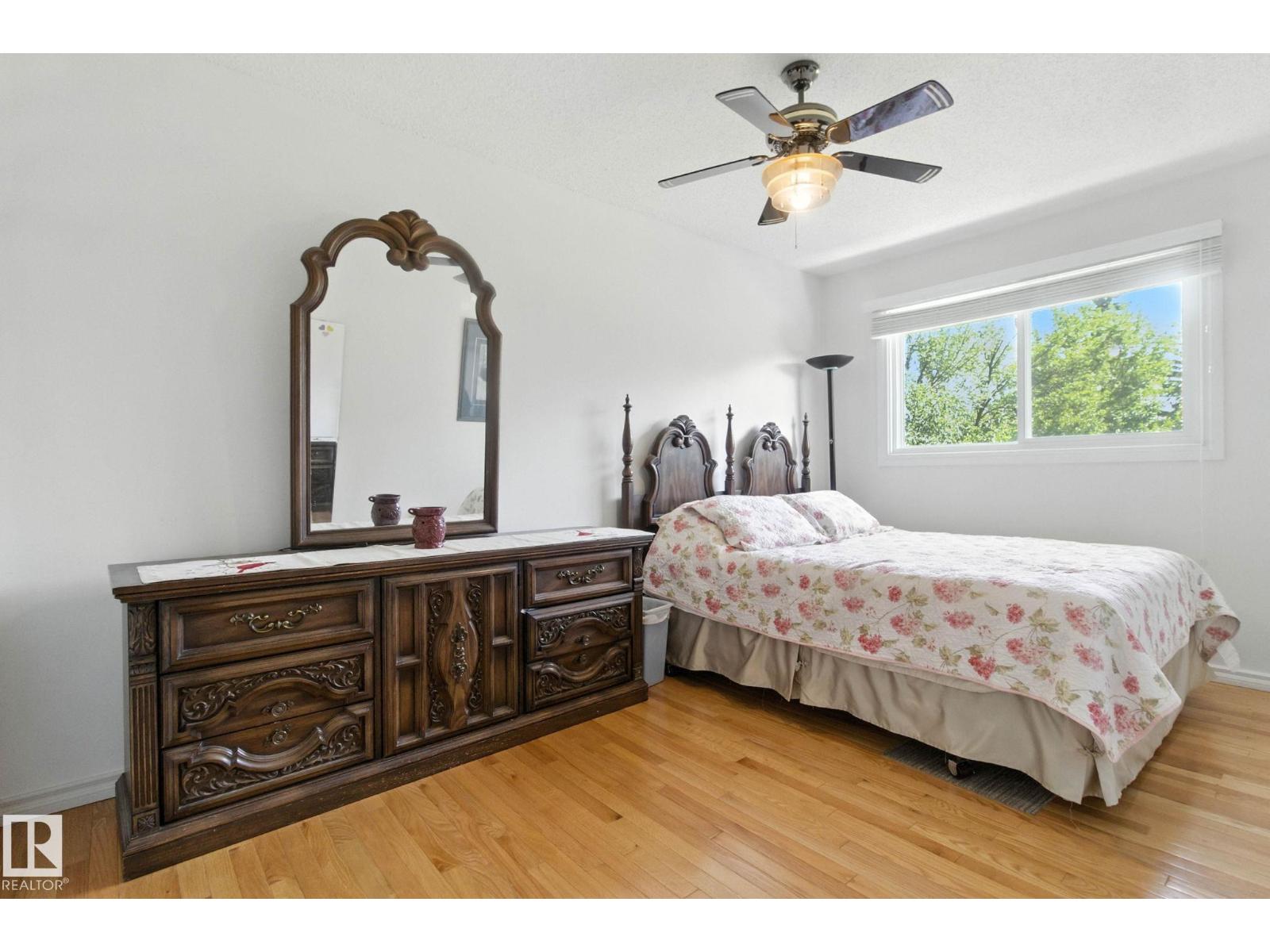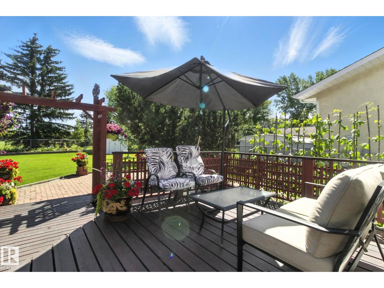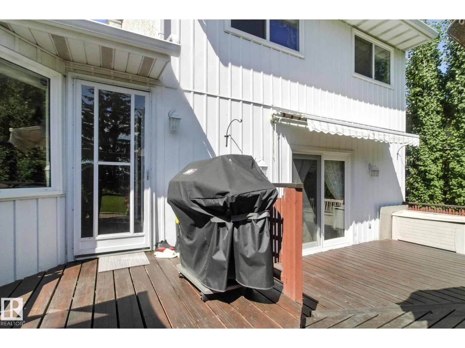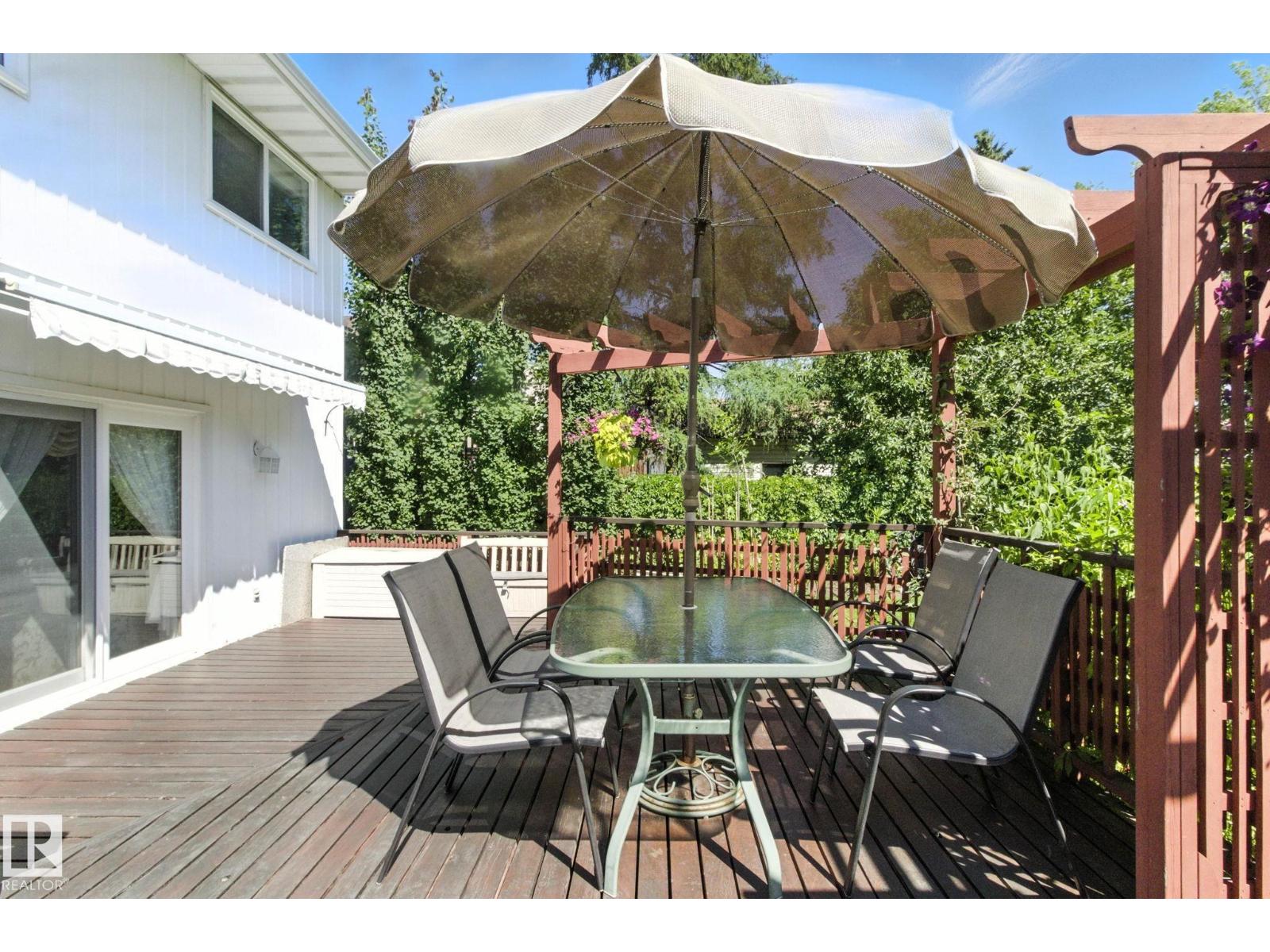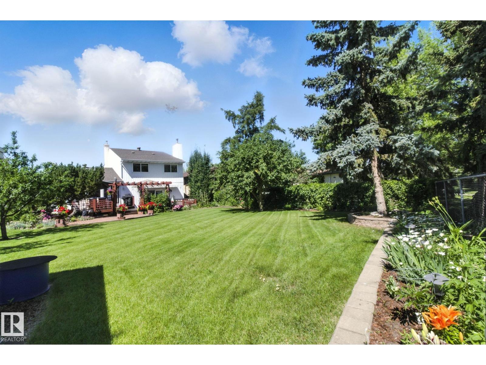 Welcome to the desirable Greenview community! This well-maintained home backs directly onto a park, offering a perfect blend of comfort, style, and privacy. The main floor features two spacious living areas with beautiful hardwood flooring, a formal dining room, and a bright kitchen. A convenient powder room and central air conditioning add extra comfort. Bay windows fill the home with natural light and overlook the private, beautifully landscaped backyard. Enjoy summer gatherings on the large deck in the fully fenced yard perfect for relaxing or entertaining. Upstairs offers 3 generously sized bedrooms and 2 full bathrooms.The finished basement provides additional living space, a spacious bedroom and a full bathroom, ideal for guests or extended family. Recent upgrades include the roof, windows, appliances and garage epoxy flooring. Located close to schools, shopping centers, LRT, bus stops, a golf course, and with easy access to whitemud highway. A fantastic opportunity to own a beautiful home!!! (id:63190)