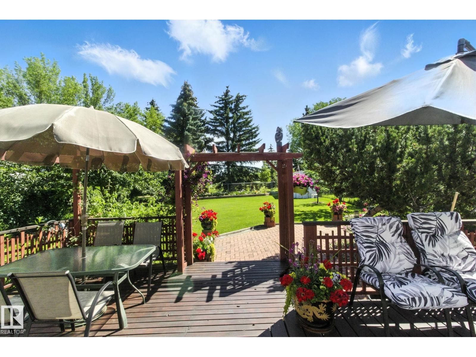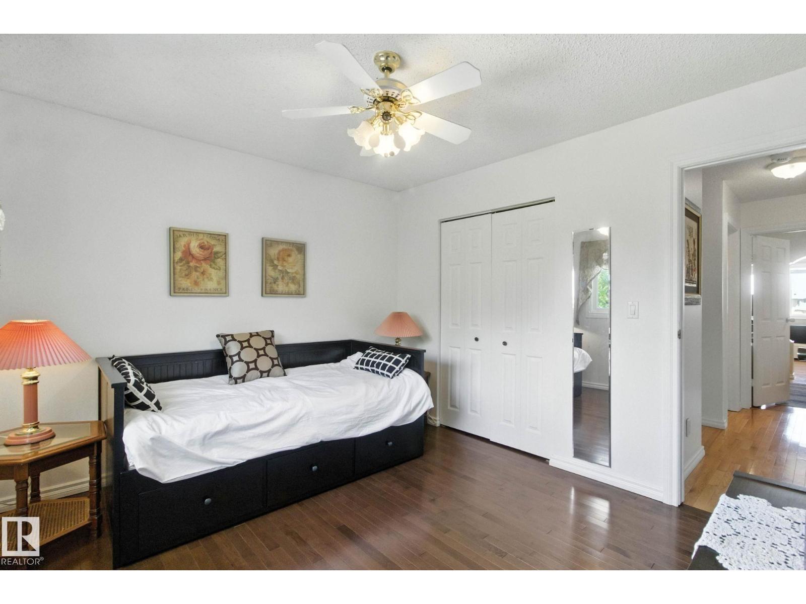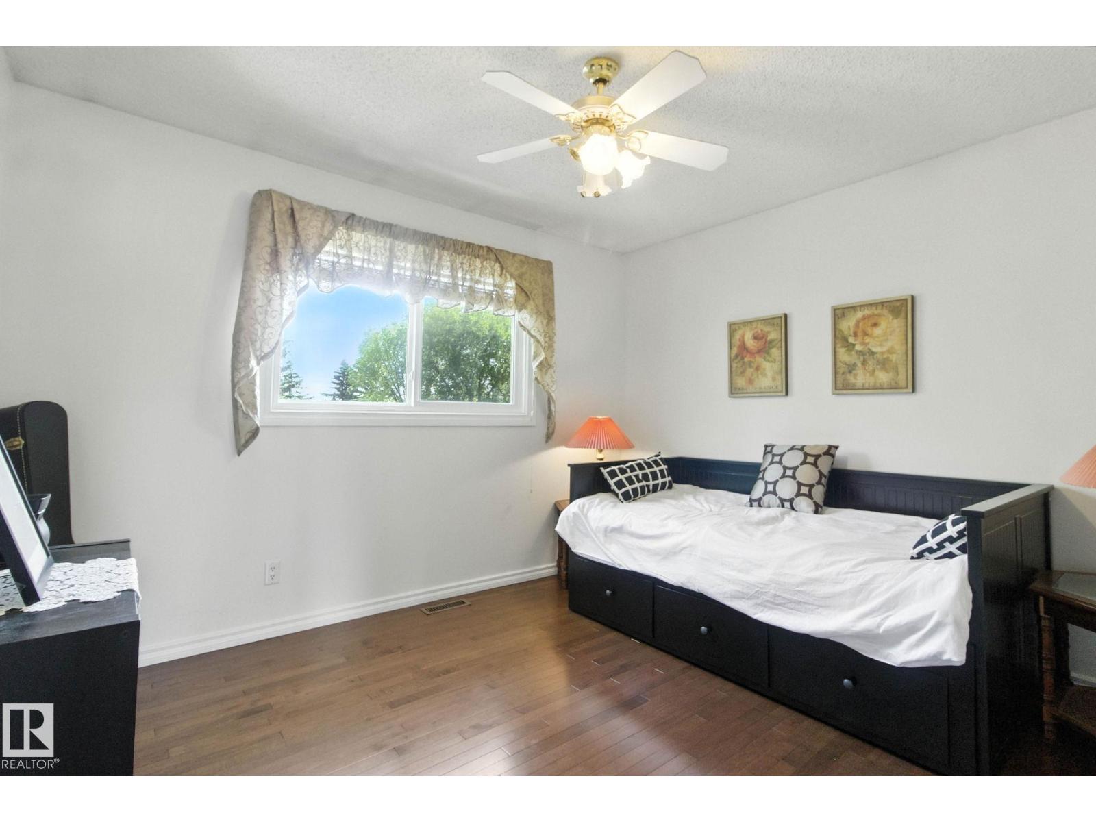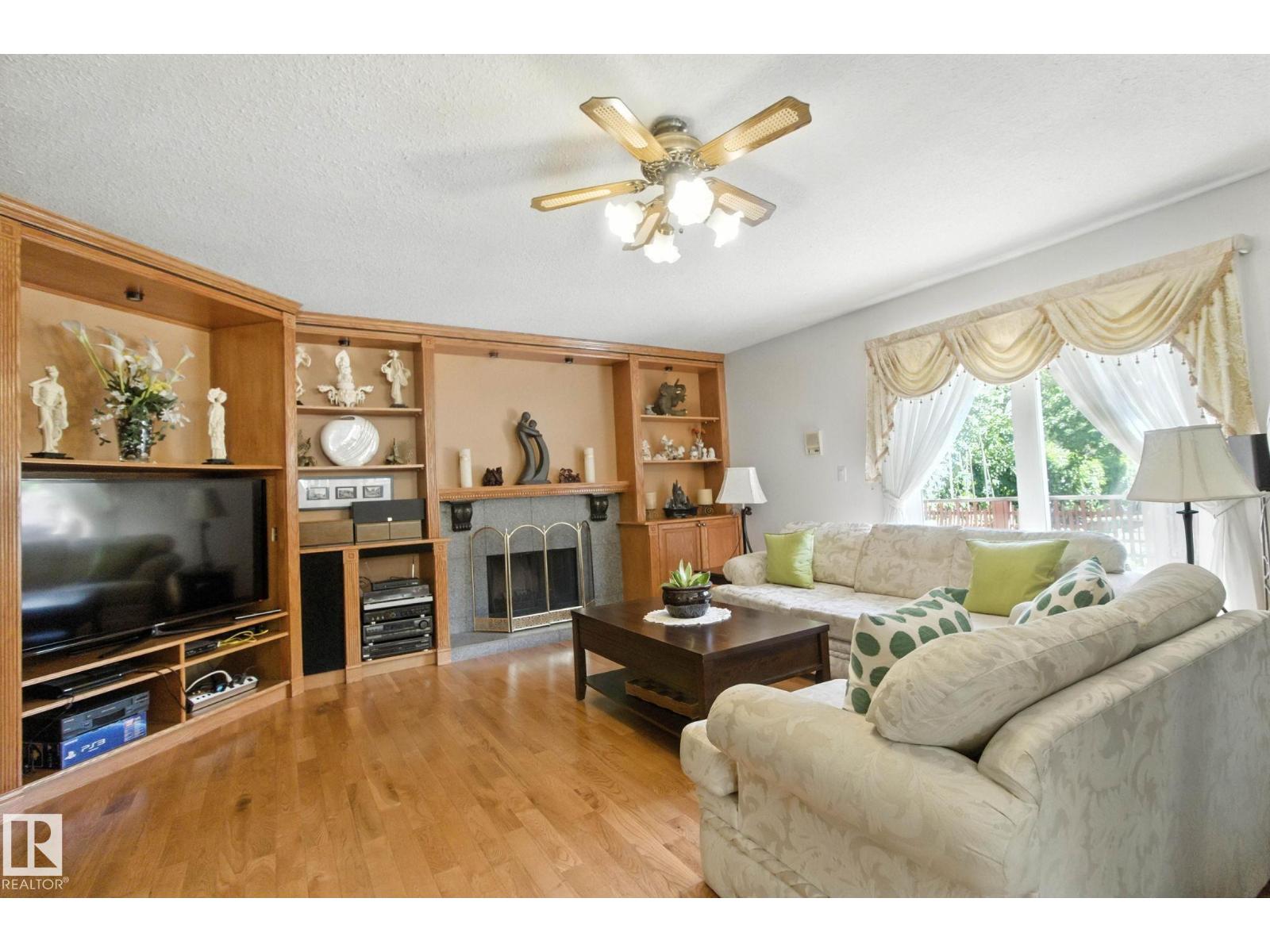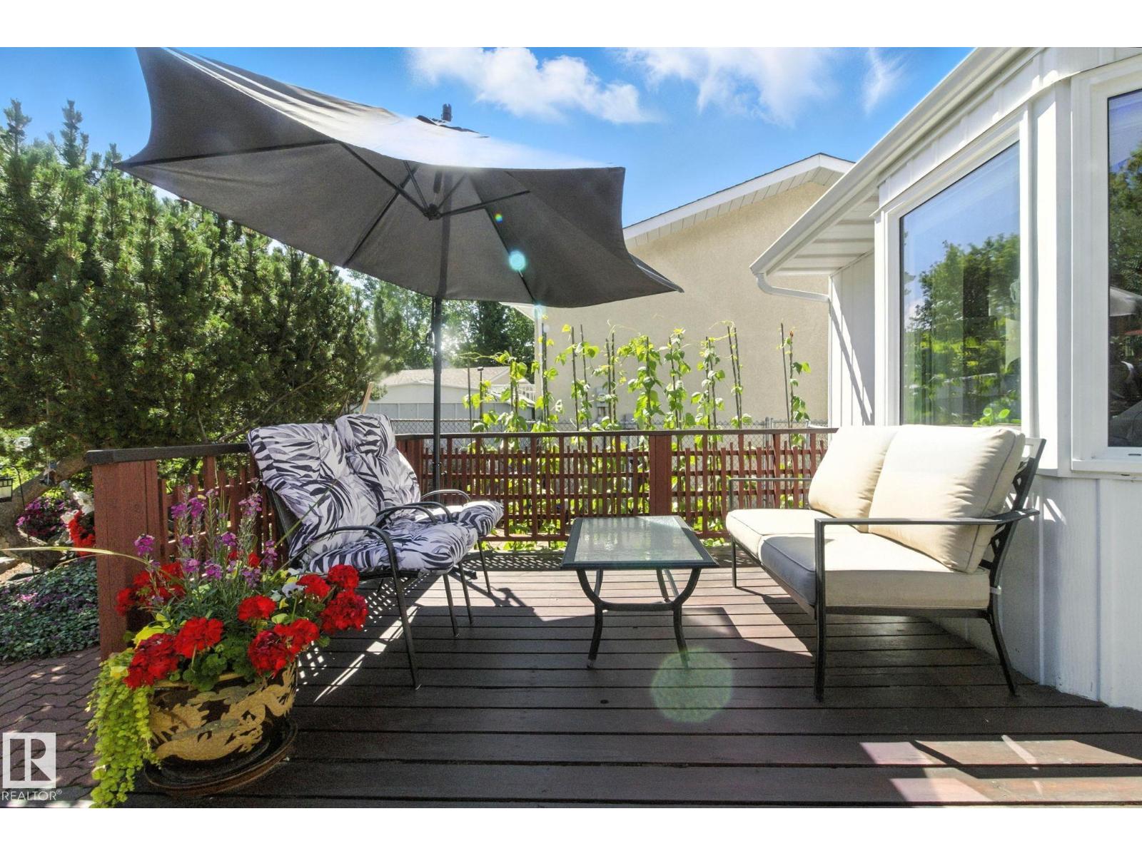 Welcome to the desirable Greenview community! This well-maintained home backs directly onto a park, offering a perfect blend of comfort, style, and privacy. The main floor features two spacious living areas with beautiful hardwood flooring, a formal dining room, and a bright kitchen. A convenient powder room and central air conditioning add extra comfort. Bay windows fill the home with natural light and overlook the private, beautifully landscaped backyard. Enjoy summer gatherings on the large deck in the fully fenced yard perfect for relaxing or entertaining. Upstairs offers 3 generously sized bedrooms and 2 full bathrooms.The finished basement provides additional living space, a spacious bedroom and a full bathroom, ideal for guests or extended family. Recent upgrades include the roof, windows, appliances and garage epoxy flooring. Located close to schools, shopping centers, LRT, bus stops, a golf course, and with easy access to whitemud highway. A fantastic opportunity to own a beautiful home!!! (id:63190)