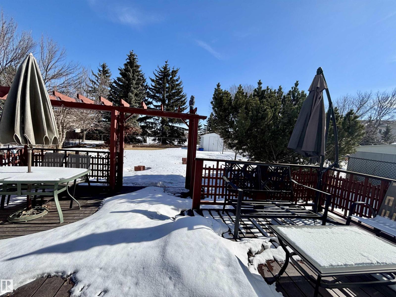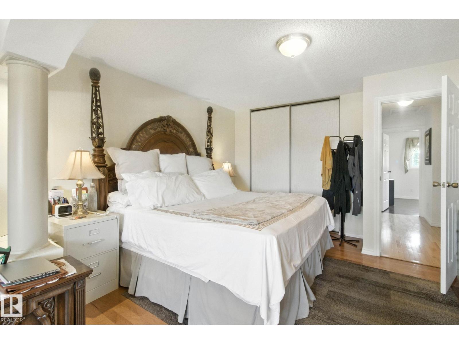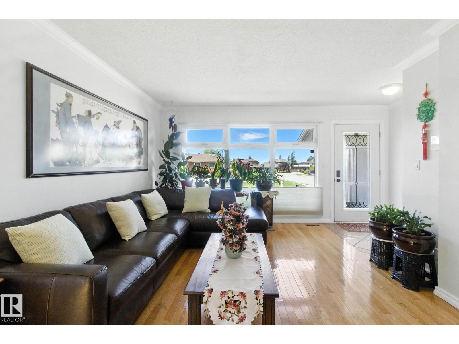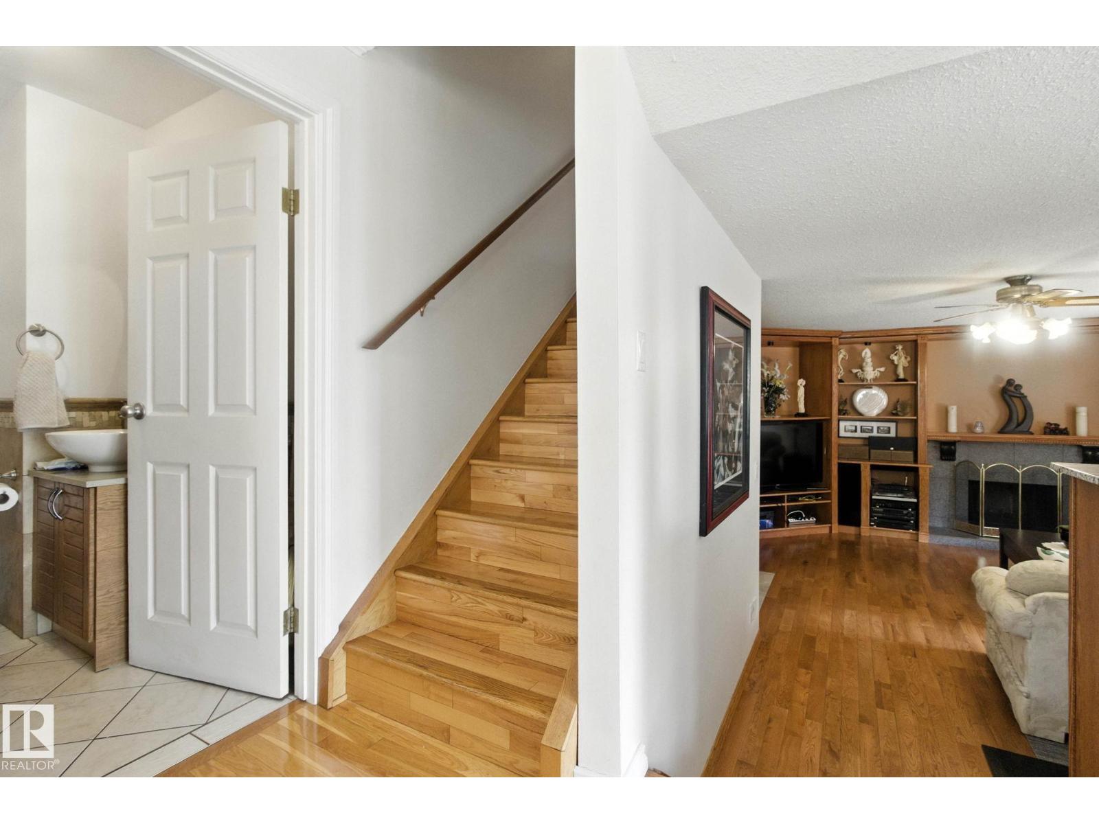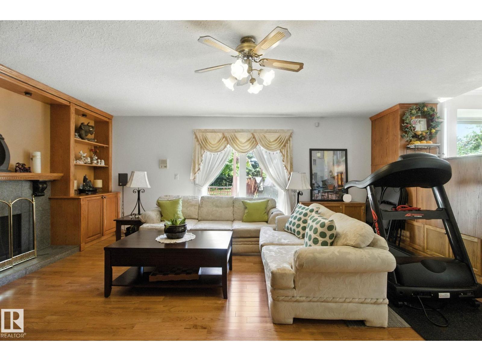 Welcome to the desirable Greenview community! This well-maintained home backs directly onto a park, offering a perfect blend of comfort, style, and privacy. The main floor features two spacious living areas with beautiful hardwood flooring, a formal dining room, and a bright kitchen. A convenient powder room and central air conditioning add extra comfort. Bay windows fill the home with natural light and overlook the private, beautifully landscaped backyard. Enjoy summer gatherings on the large deck in the fully fenced yard perfect for relaxing or entertaining. Upstairs offers 3 generously sized bedrooms and 2 full bathrooms.The finished basement provides additional living space, a spacious bedroom and a full bathroom, ideal for guests or extended family. Recent upgrades include the roof, windows, appliances and garage epoxy flooring. Located close to schools, shopping centers, LRT, bus stops, a golf course, and with easy access to whitemud highway. A fantastic opportunity to own a beautiful home!!! (id:63190)