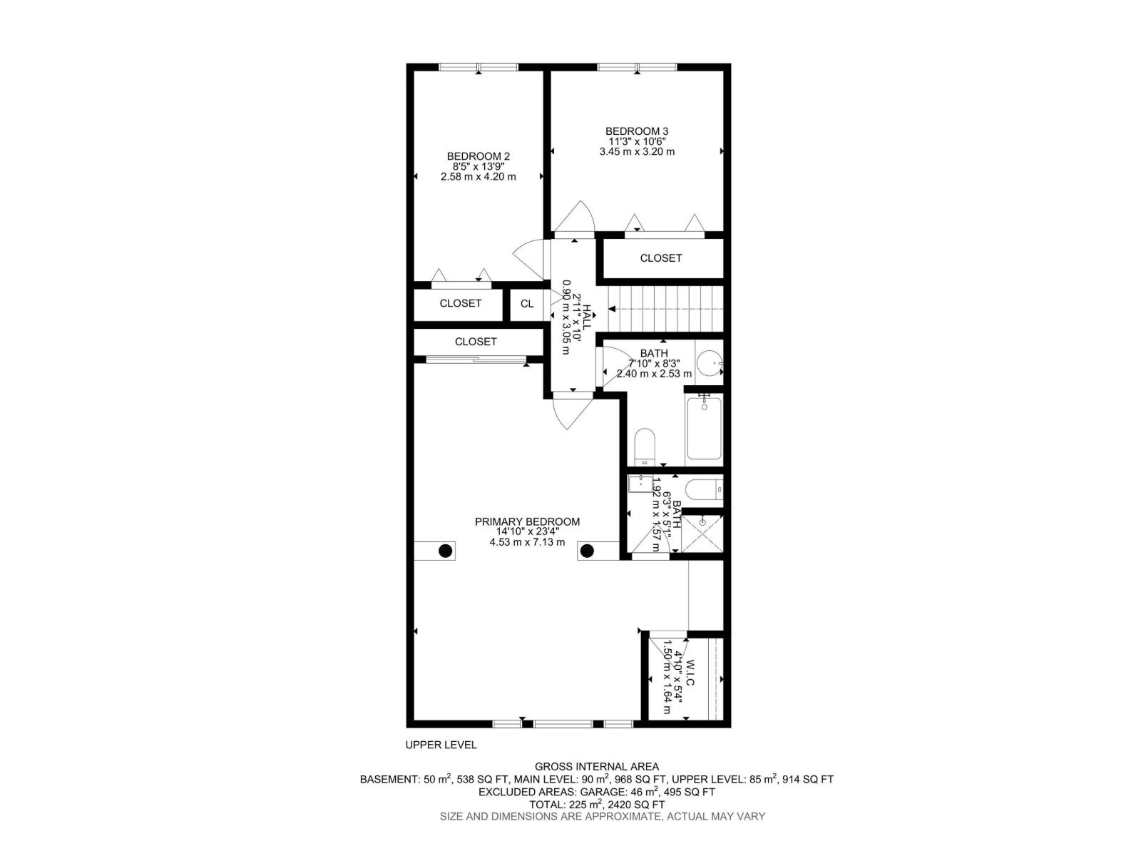 | Primary Bedroom | Upper Level | 7.13m | — |