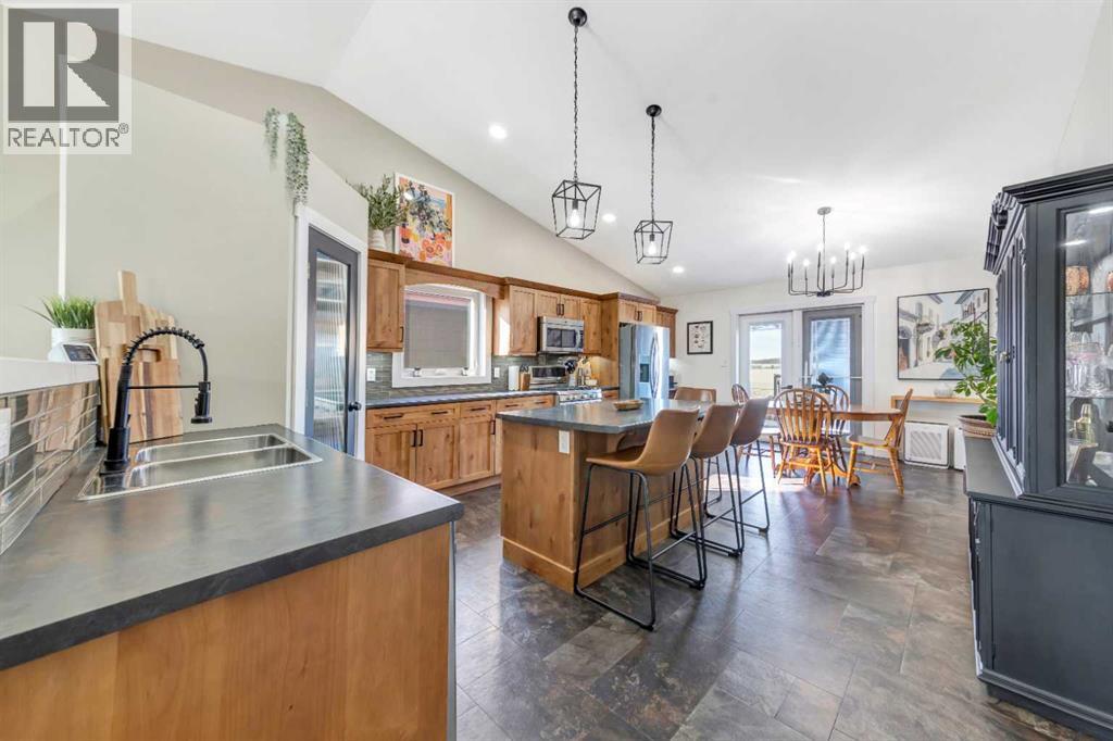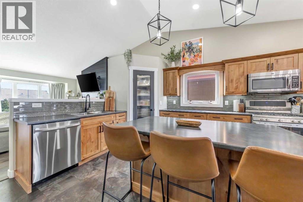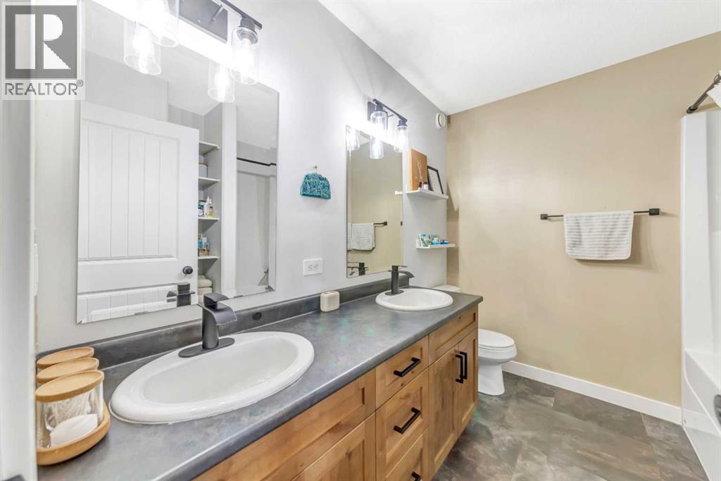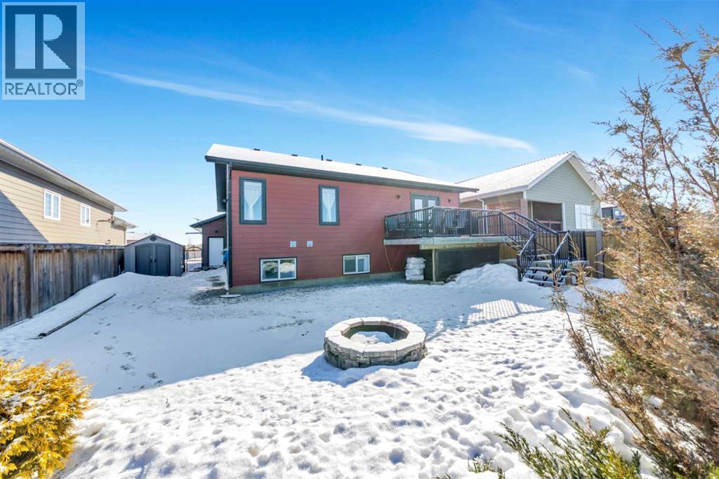 Welcome to the gated community of Lakeshore Estates, one of Lloydminster’s desirable locations surrounded by the beautiful Parkview area and steps from Bud Miller Park, walking paths, and outdoor recreation. This well-maintained 1,380 sq.ft. bi-level offers space, functionality, and modern updates throughout. The main floor features vaulted ceilings and an open layout, creating a bright and inviting living space. The kitchen is designed for everyday living, with alder cabinetry, a corner pantry, stainless steel appliances, a gas stove, an electrified island, and a dining area that leads directly to the deck with a BBQ gas line.A standout feature is the refreshed main-floor laundry room with a sink, offering convenience and extra storage. The spacious primary bedroom includes a walk-in closet and a 5-piece ensuite with dual sinks and linen storage.The fully finished basement features high ceilings, a large family room wired for sound, three additional bedrooms, a full bathroom, and ample storage.Outside, you’ll find a landscaped and fenced yard, a cobblestone patio with a firepit area, RV parking, and a shed with power. The 24’ x 27’ heated double-attached garage provides ample space for vehicles and storage. Located in a private, gated neighbourhood with low monthly condo fees that cover street snow removal and garbage services. A great opportunity to enjoy space, privacy, and location all in one. 3D Virtual tour Available! (id:63190)