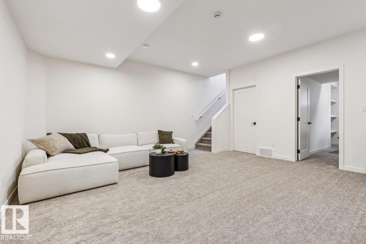 IMMEDIATE POSSESSION AVAILABLE! Welcome to the Bungalow Townhome 20 Plus by Cantiro Homes! Offering comfortable, low-maintenance living, this bungalow features an expanded layout with an open-concept kitchen, living, and dining area filled with natural light leading to a large primary bedroom and ensuite in the rear of the home. Additional main floor laundry and a half bath for guests make everyday living easier. The 9ft finished basement offers two additional bedrooms, a full bathroom, and a spacious family room - perfect for visiting family, additional storage, or flexibility for future needs. Finished in the Midsummer interior style, the home blends soft white tones with bold black accents that add a charming and modern contrast. This home is complete with a rear double detached garage measuring 20 ft. wide by 21 ft. deep , front and rear landscaping, a gas BBQ line, horizontal metal railing, and a charming modern farmhouse exterior. (id:63190)