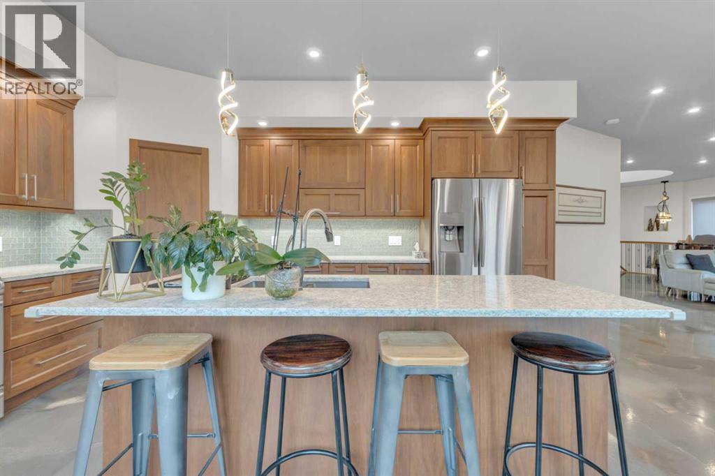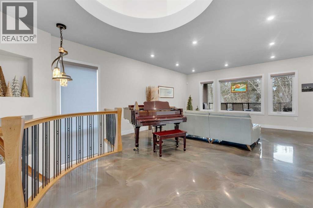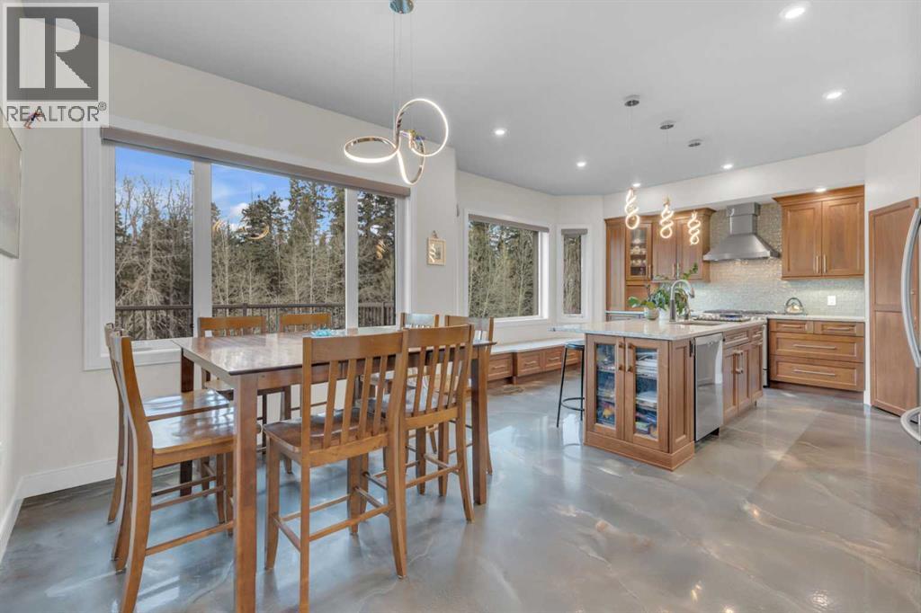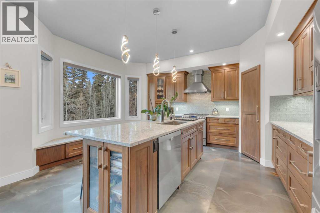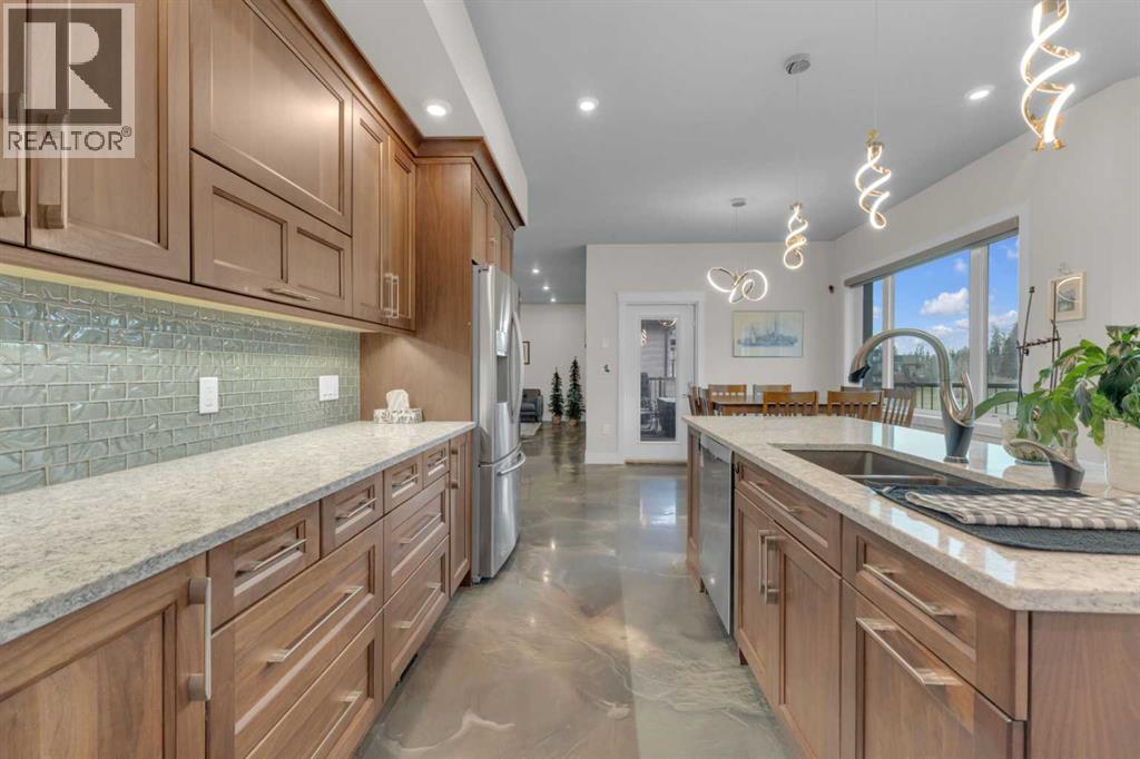 Prepare to be mesmerized by this stunning walkout bungalow, nestled on a serene cul-de-sac that backs onto a protected reserve and the renowned Red Deer trail system. As you step inside this exquisite residence, you'll immediately appreciate its refined charm. The custom epoxy concrete floors guide you into a remarkable living space, where a spacious living room adorned with an impressive array of windows showcases breathtaking views of the natural surroundings right outside your door.The kitchen is a chef's paradise, featuring elegant quartz countertops, a generous island area, and rich, custom cabinetry that adds a touch of sophistication.The main level of this exceptional home also includes a sizable office, convenient laundry facilities, and a tranquil primary suite complete with a spacious walk-in closet and a well-appointed ensuite, boasting both a separate shower and a luxurious soaking tub.Venturing to the basement, you'll discover a vast family room equipped with a wet bar and walkout access to the backyard deck, along with three additional bedrooms, a full bathroom, and a bonus area that was previously a workshop but could easily transform into the ultimate man cave or home gym. This unique space features a permanent scissor lift for effortless transport of heavy items from the garage to the basement.The true allure of this property lies in the spectacular views from both the expansive upper and lower decks, which offer both covered and uncovered areas for your enjoyment. Additionally, the lower patio is pre-wired for a hot tub, ready for your relaxation.Situated on a peaceful keyhole close, this home combines luxurious living with a serene country ambiance.Recent updates include fresh epoxy flooring in 2022, a new dishwasher, a water distiller, and modernized lighting fixtures, ensuring that this home is both stylish and functional. (id:63190)