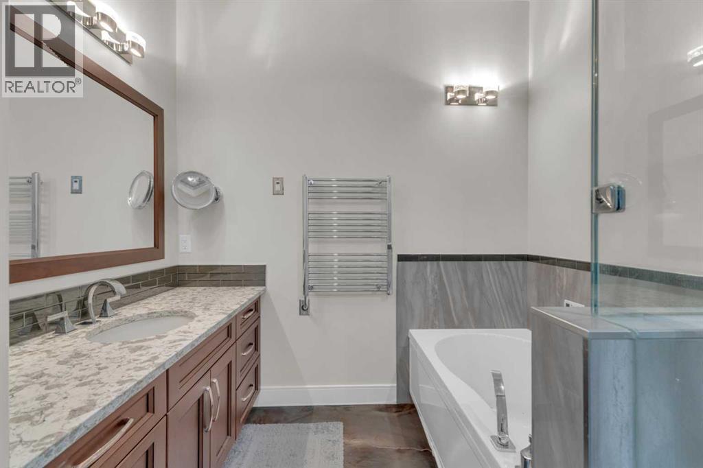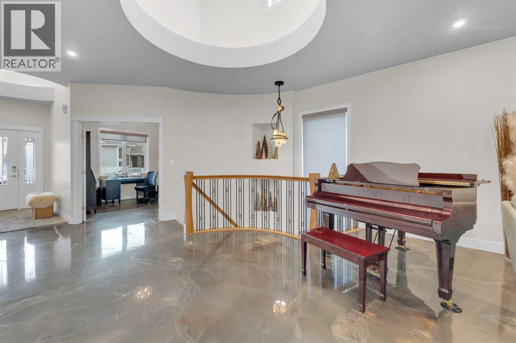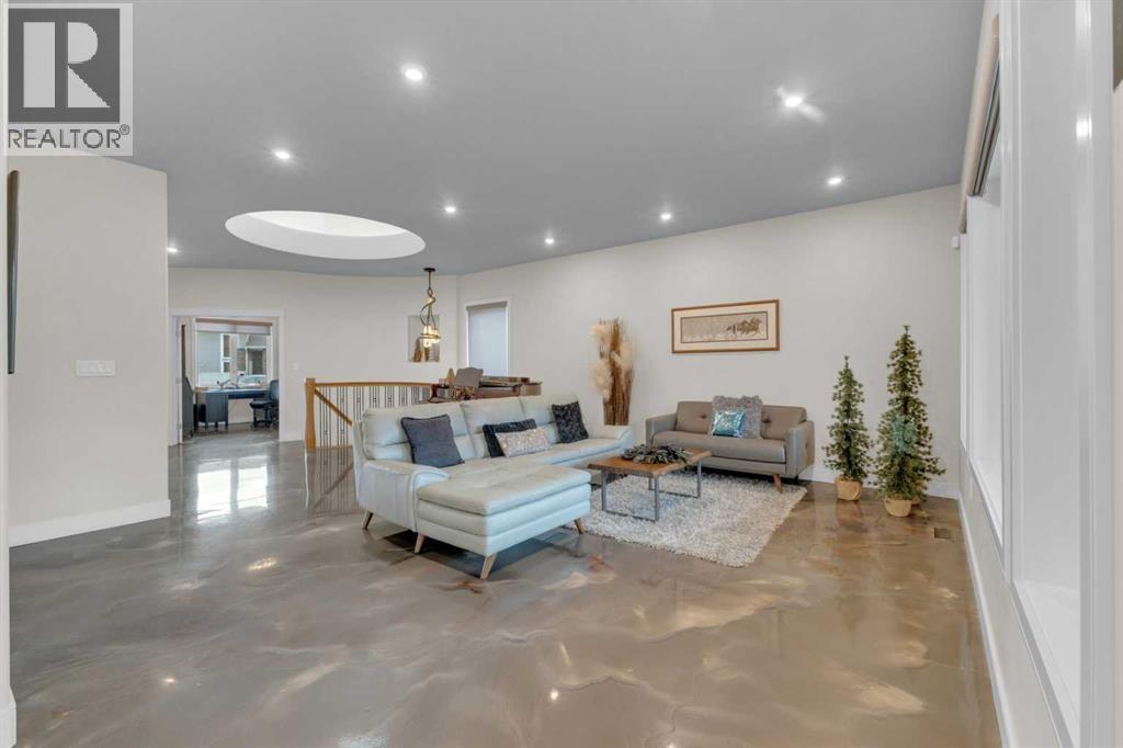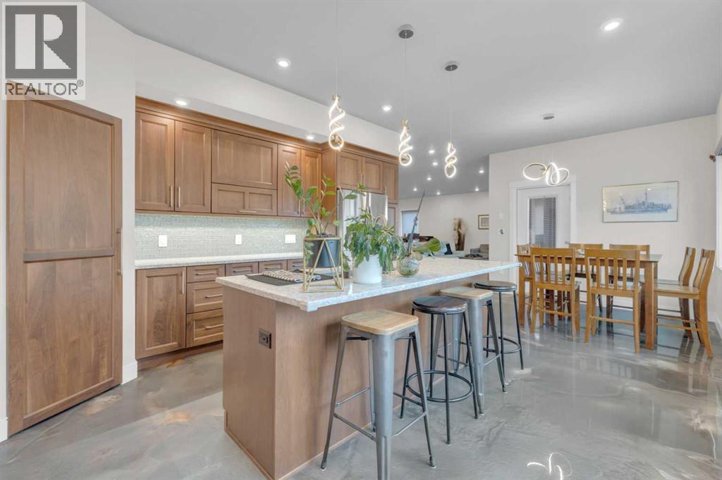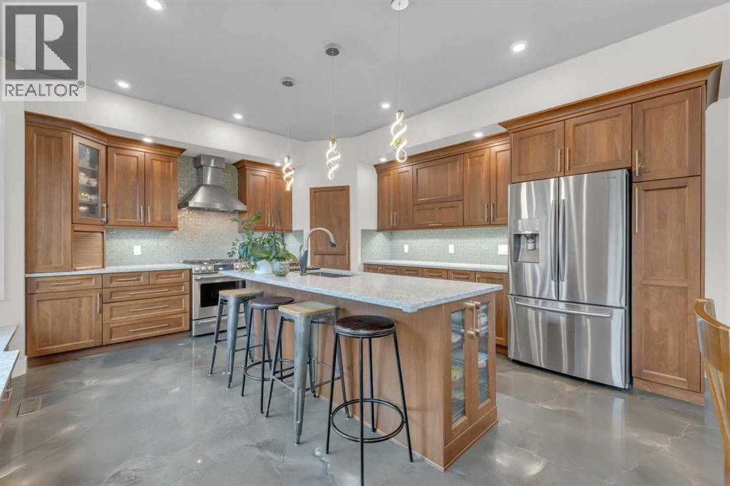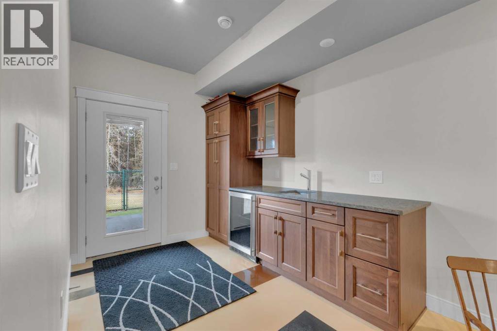 Prepare to be mesmerized by this stunning walkout bungalow, nestled on a serene cul-de-sac that backs onto a protected reserve and the renowned Red Deer trail system. As you step inside this exquisite residence, you'll immediately appreciate its refined charm. The custom epoxy concrete floors guide you into a remarkable living space, where a spacious living room adorned with an impressive array of windows showcases breathtaking views of the natural surroundings right outside your door.The kitchen is a chef's paradise, featuring elegant quartz countertops, a generous island area, and rich, custom cabinetry that adds a touch of sophistication.The main level of this exceptional home also includes a sizable office, convenient laundry facilities, and a tranquil primary suite complete with a spacious walk-in closet and a well-appointed ensuite, boasting both a separate shower and a luxurious soaking tub.Venturing to the basement, you'll discover a vast family room equipped with a wet bar and walkout access to the backyard deck, along with three additional bedrooms, a full bathroom, and a bonus area that was previously a workshop but could easily transform into the ultimate man cave or home gym. This unique space features a permanent scissor lift for effortless transport of heavy items from the garage to the basement.The true allure of this property lies in the spectacular views from both the expansive upper and lower decks, which offer both covered and uncovered areas for your enjoyment. Additionally, the lower patio is pre-wired for a hot tub, ready for your relaxation.Situated on a peaceful keyhole close, this home combines luxurious living with a serene country ambiance.Recent updates include fresh epoxy flooring in 2022, a new dishwasher, a water distiller, and modernized lighting fixtures, ensuring that this home is both stylish and functional. (id:63190)