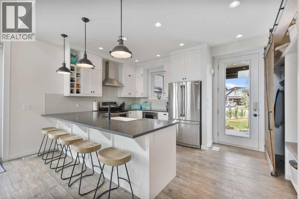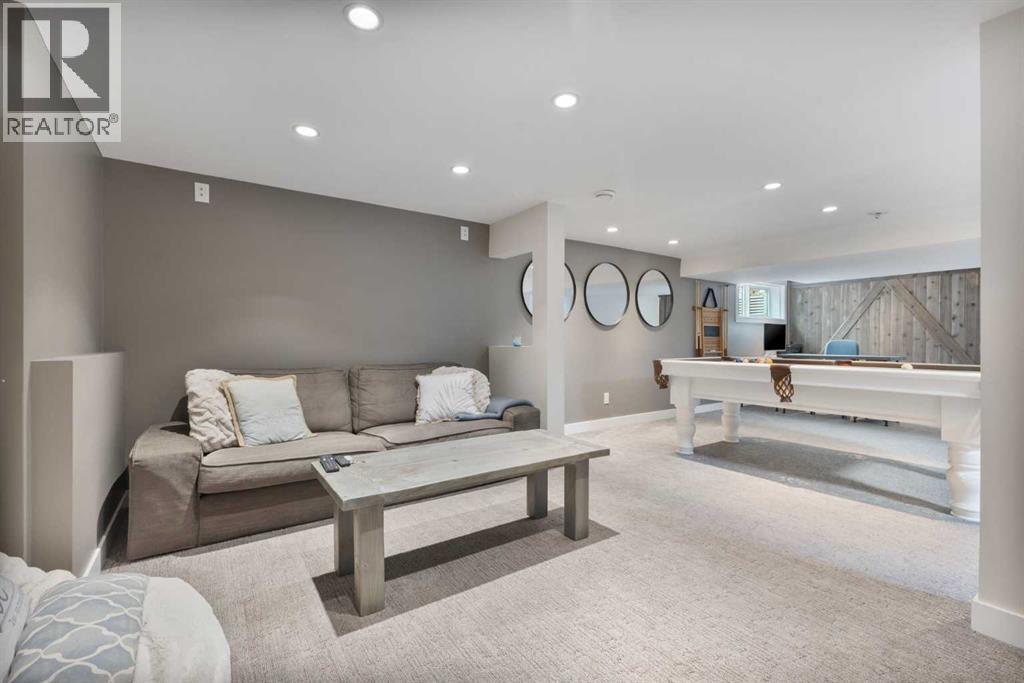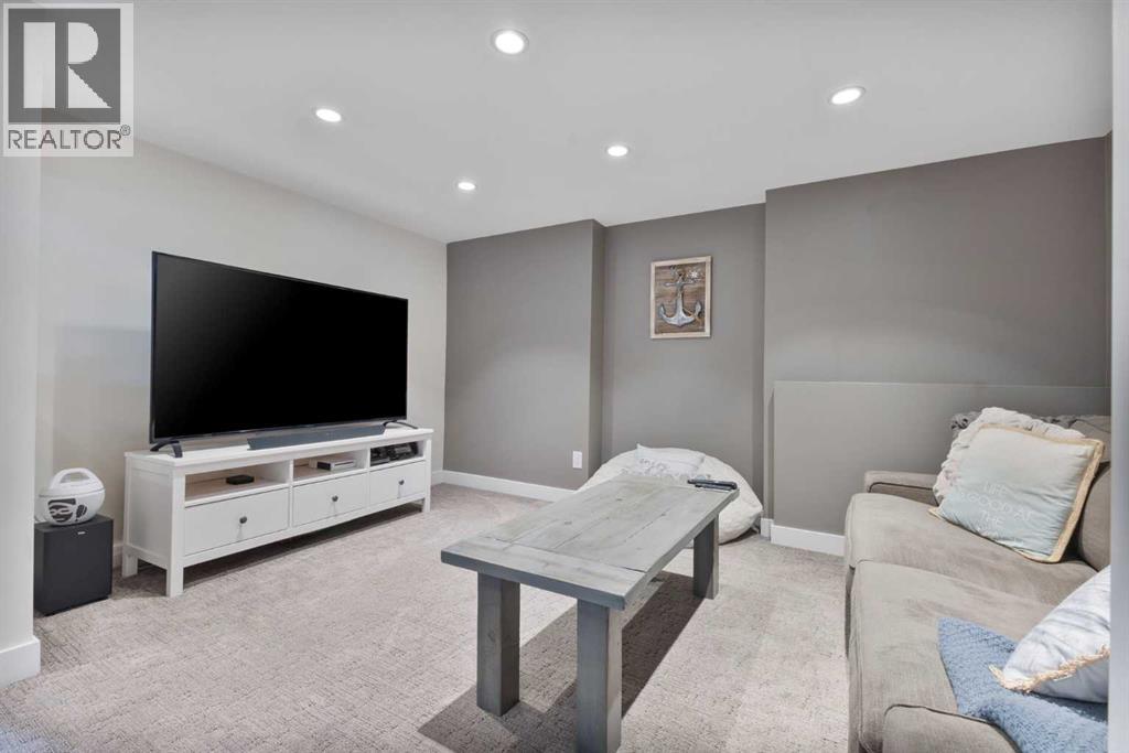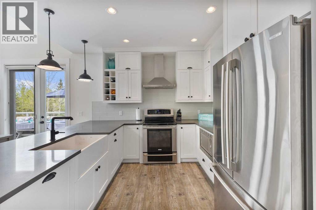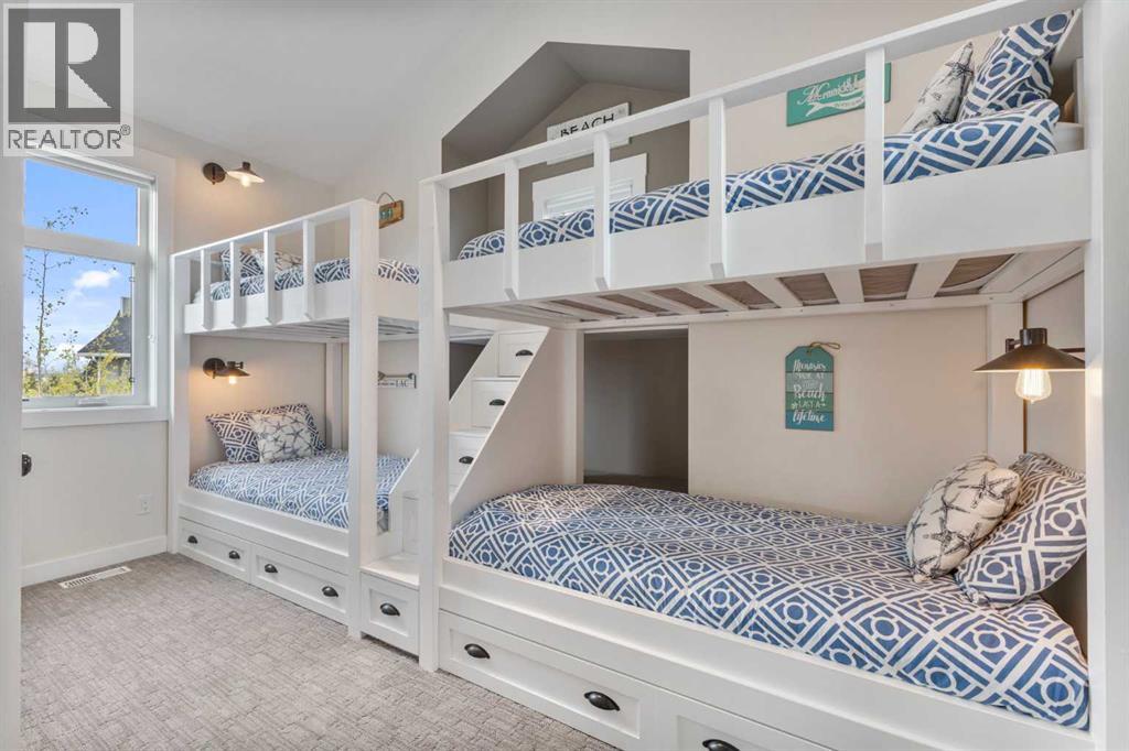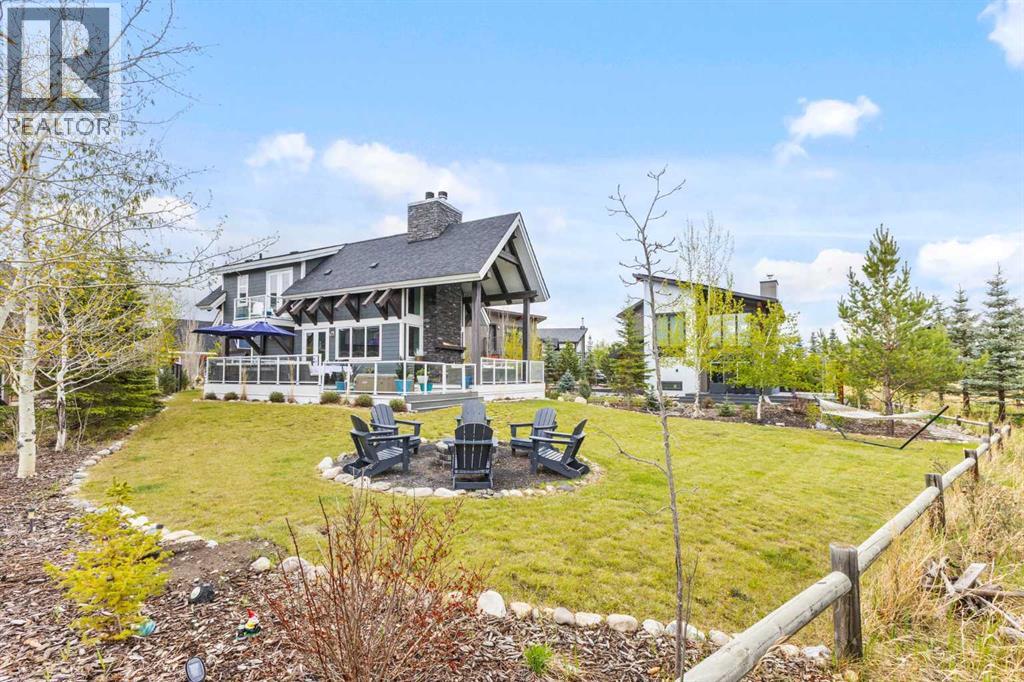 Welcome to your dream lake retreat at Ghost Lake – a truly exceptional property nestled on the largest developed lot in this prestigious gated community. This elegant and thoughtfully designed home backs onto a tranquil green space, offering the perfect blend of privacy, natural beauty, and high-end living. The luxury touches throughout such as premium triple-pane windows, offering superior comfort and energy efficiency along with the beautiful copper roof accents add timeless elegance and durability, reflective of the home's commitment to quality craftmanship. Step inside the main house and be greeted by a breathtaking 21-foot vaulted ceiling that crowns the open-concept main floor. The wood-burning fireplace creates a cozy and inviting atmosphere, ideal for relaxing after a day on the lake or entertaining friends and family. A stylish powder room adds convenience and charm to the space.Upstairs, you’ll find a cozy bunk room that sleeps four, perfect for kids or guests, alongside the primary bedroom and a 3-piece bathroom. The fully finished basement extends your living space with a generous recreation room and hosts the laundry area, offering both comfort and practicality. The magic continues outdoors where a wraparound deck invites you to host unforgettable gatherings under the stars. Lounge by the second wood-burning fireplace, unwind in the inflatable hot tub, or simply soak in the peaceful surroundings of this dark sky community. A separate carriage house offers even more flexibility, featuring its own coffee bar, queen sized bunk beds, and another 3-piece bathroom – perfect for hosting extended family, guests, or creating a private retreat space. As part of this exclusive lakeside community, you’ll enjoy unmatched amenities including lake access, an indoor pool, hot tub, tennis courts, fitness facility, community dock, kitchen, and beach volleyball courts – all set against the stunning backdrop of the Rocky Mountains.Whether you’re looking for a luxurious f ull-time residence or an upscale weekend getaway, this remarkable Ghost Lake property offers an unparalleled lifestyle.Don't miss this rare opportunity to own a premier piece of paradise – where nature, luxury, and community come together beautifully. (id:63190)