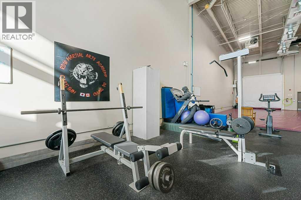 Exceptional space-share leasing opportunity in Springbank — purpose-built for instructors and organizations specializing in martial arts, yoga, boot camps, and weight training. This rare 30x100 bay allows a 3,000 sq ft open-layout facility featuring a premium 1,500 sq ft high-density foam mat area for martial arts classes and group movement, as well as a 750 sq ft rubber-floored fitness zone ideally suited to boot camps and weight training. High ceilings throughout, creating an inspiring atmosphere for energetic group activities and mindful yoga practices. Assembly occupancy approval from Rocky View County enables you to host sizeable classes and group events, maximizing your opportunity for business growth. Boost your brand visibility with available window and fascia signage.This space is perfect for independent instructors, small group programs, and organizations looking for flexible, part-time access in a professionally maintained facility.This simple gross lease offering at $3500 includes basic rent, condo fees, property taxes & utilities. Call today! (id:63190)