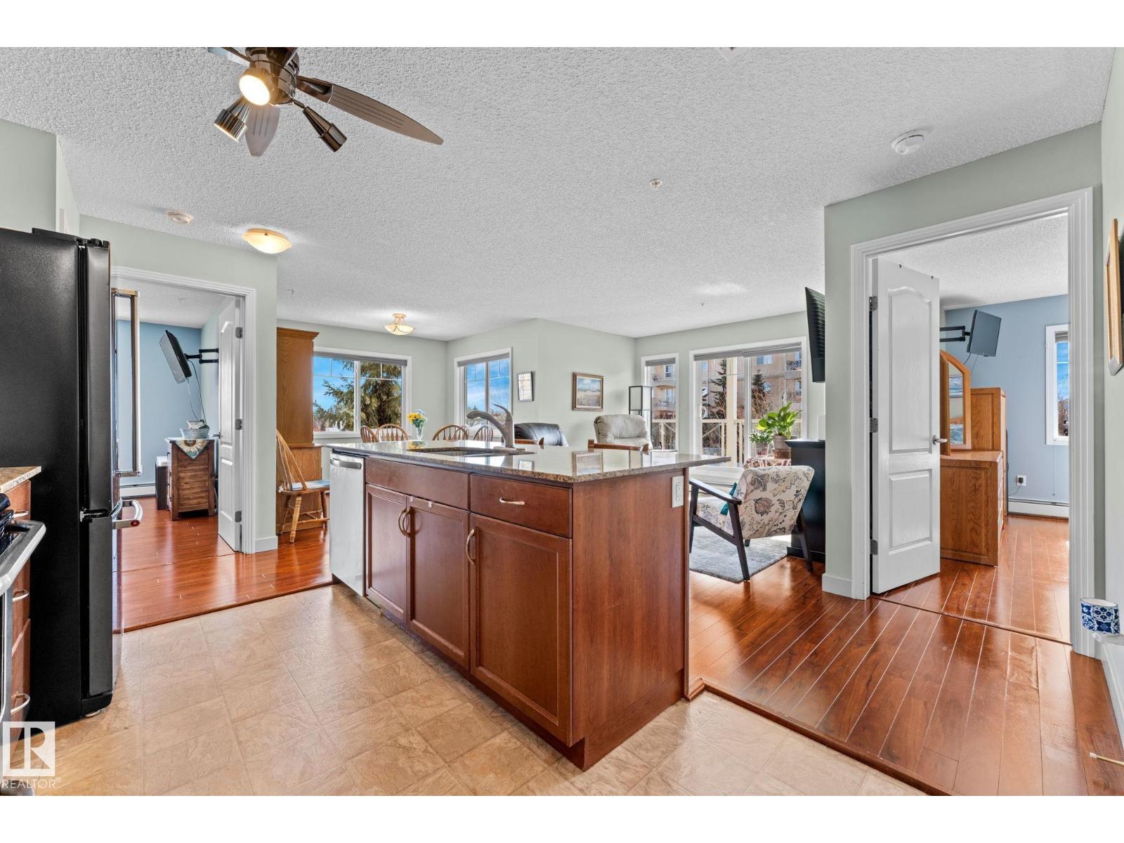 Welcome to this bright corner unit condo in Baranow, featuring 2 bedrooms and 2 full bathrooms with a functional, open concept layout. Large windows fill this well-maintained home with tons of natural light, creating a warm and inviting living space. The standout feature is the spacious wraparound balcony, perfect for relaxing, entertaining, or enjoying your morning coffee. The kitchen offers great functionality and includes newer appliances, including the refrigerator and dishwasher, for added convenience. Both bedrooms are well-sized, and the primary bedroom features its own private ensuite and walkthrough closet. This unit also includes two titled parking stalls and a titled storage unit, providing excellent convenience and extra space. Conveniently located close to schools, shopping, and everyday amenities, this home is ideal for first-time buyers, downsizers, or investors. (id:63190)