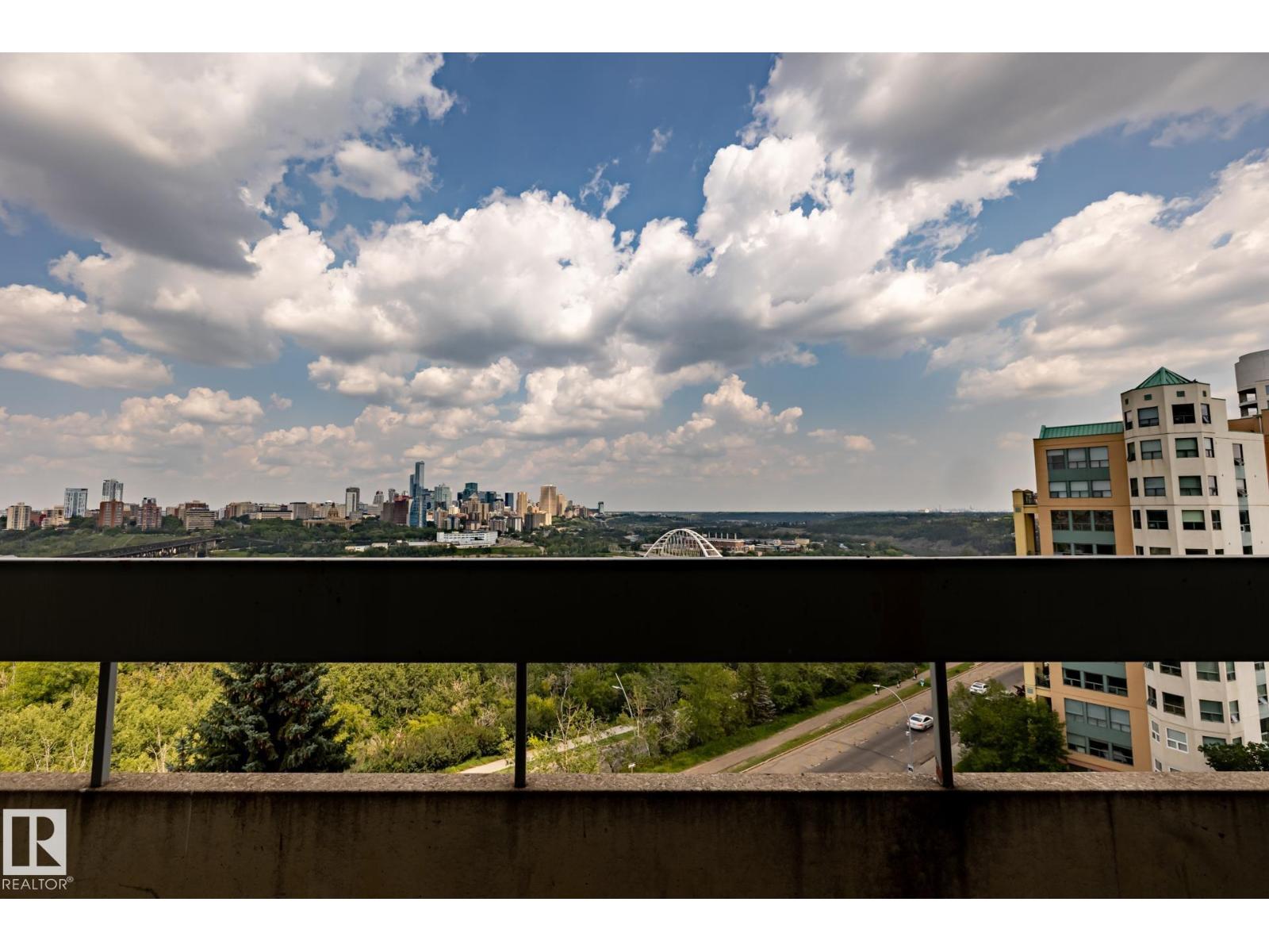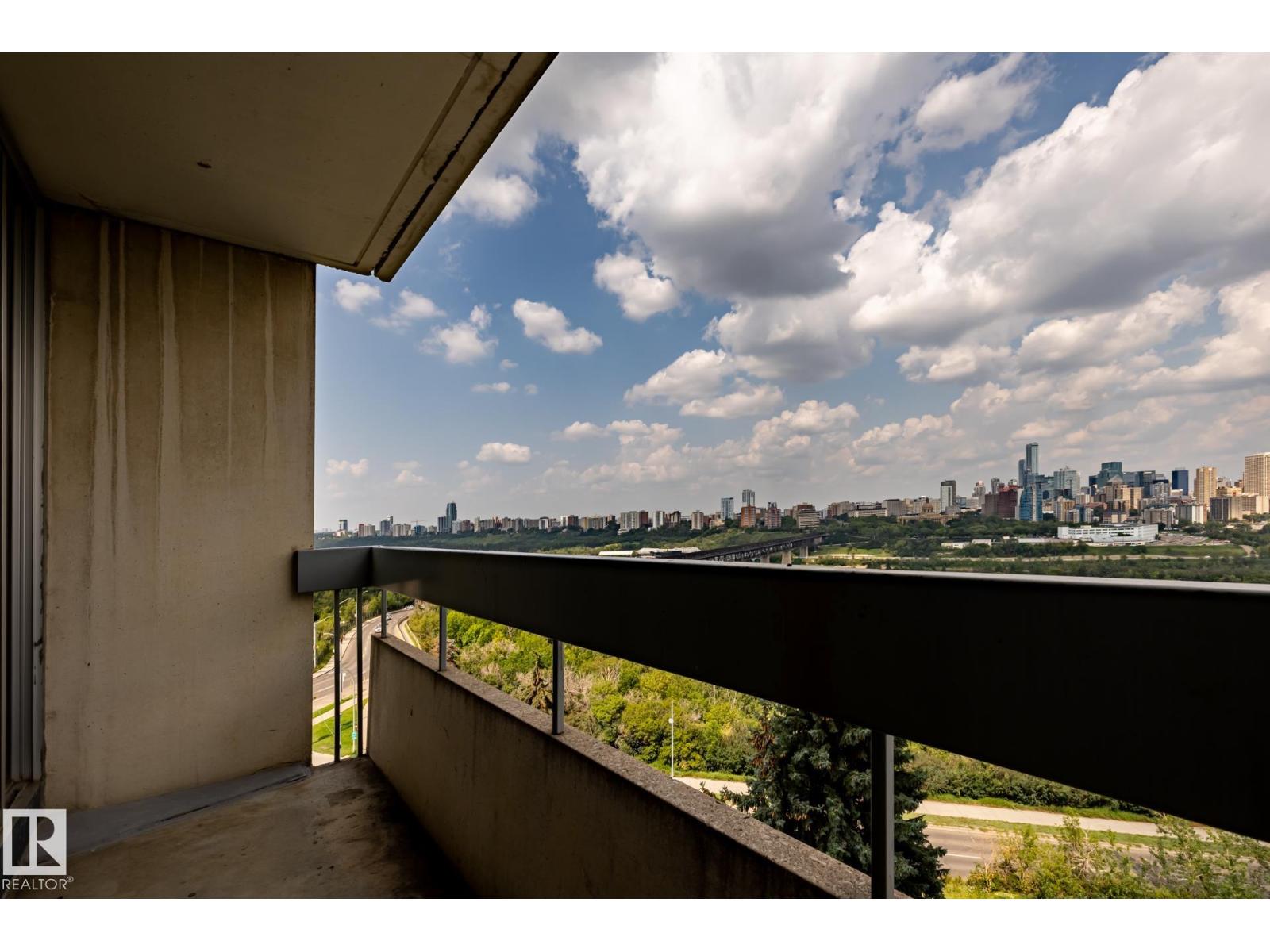 Excellent & best buy hi-rise condo on prestigious Saskatchewan Drive. This fabulous one bedroom corner unit features a stunning open floor plan with a spectacular & unobstructed panoramic view of city skyline, river valley and the beautiful night view of Downtown. Bright and spacious layout with nice sized rooms, open kitchen w/painted maple cabinetry, island w/raised eating bar & stainless steel appliances. Upgraded laminated & tiled floorings, an oversized balcony perfect for outdoor enjoyments. Walk to the U of A, Kinsman Sport & Rec Centre, River valley’s bike/walking trails just steps from the front doors. Exceptional university and river front location, well maintained building has fitness/social rooms, private garden court yard w/ gazebo and BBQ facilities, visitor parking, in-site mail delivery. Condo fee includes heat, water, power, private parking stall & more. Fabulous condo style living for starter/revenue home (great tenant in place), much affordable & priced for great upside value. (id:63190)