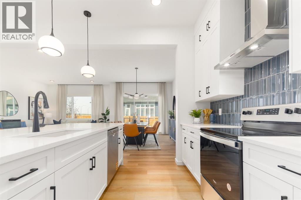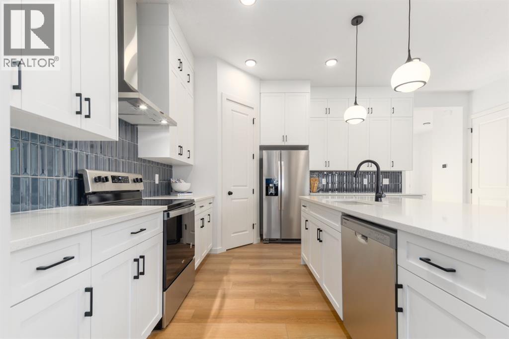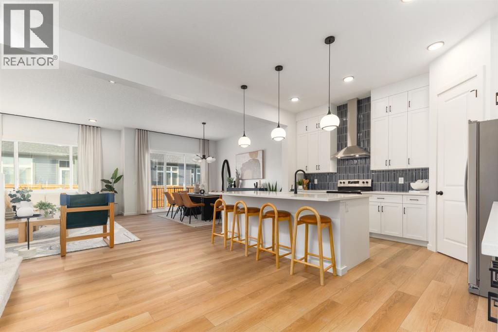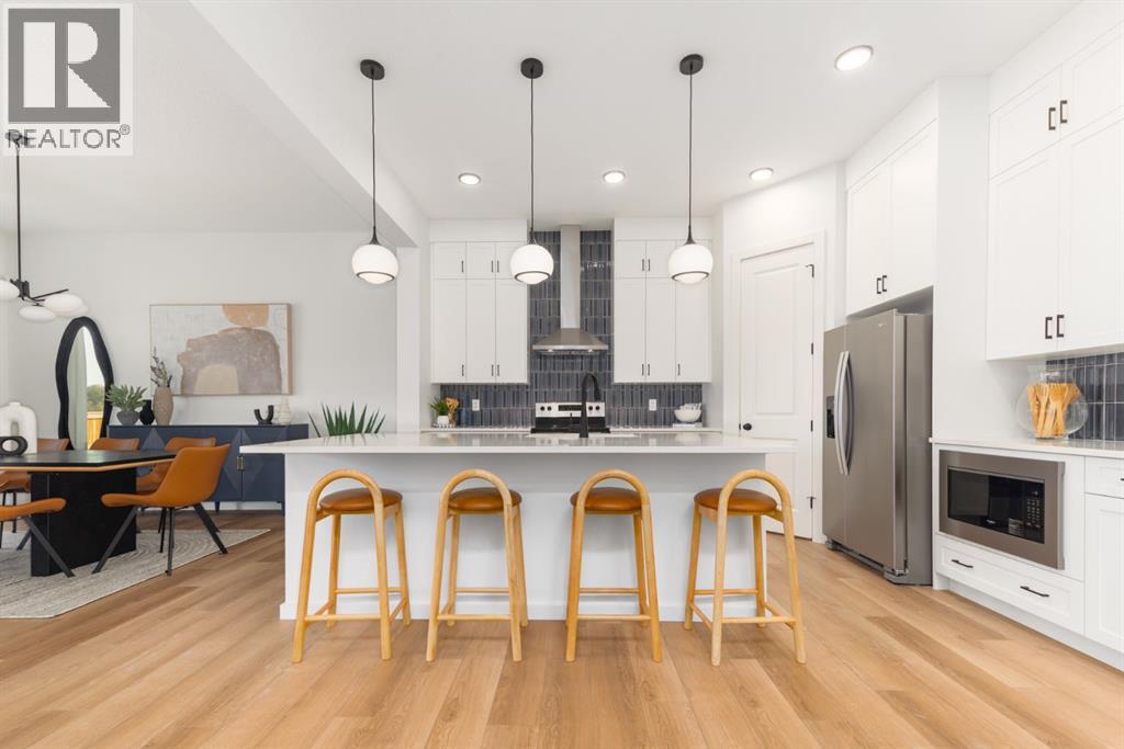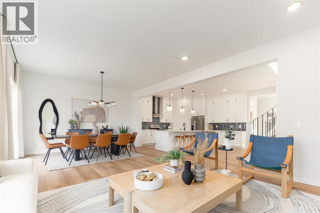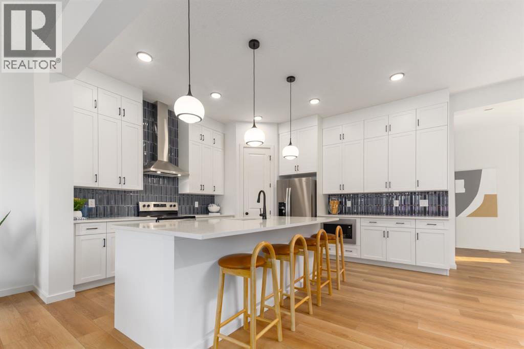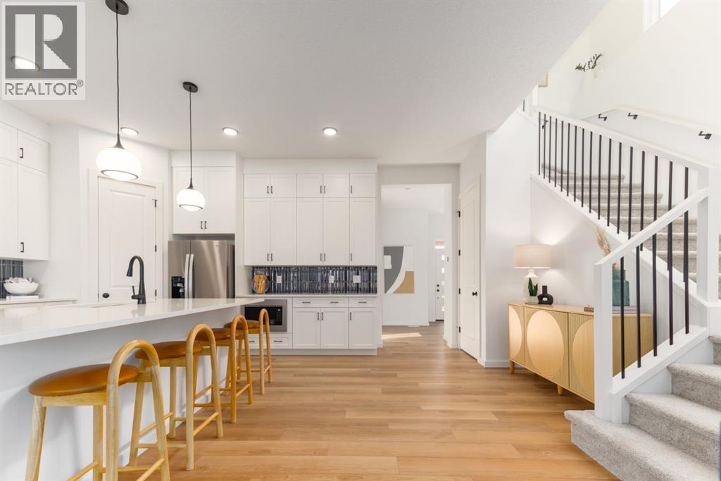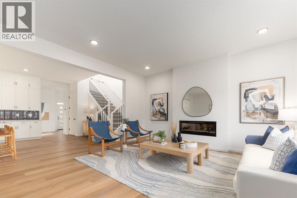 ***OPEN HOUSE Sunday, April 26, 1pm-3pm***4 BEDROOMS | 3 1/2 BATHROOMS | 2-STOREY | 3,700+ SQFT OF LIVING SPACE | DOUBLE ATTACHED GARAGE | FULLY DEVELOPED BASEMENT | CORNER LOT This Home by AVI home exudes grandeur in every detail, with meticulously chosen materials curated to create an atmosphere that captivates from the moment you enter. Inspired by modern Scandinavian design, it embraces cozy hygge vibes while offering the space and functionality families desire today. The main floor welcomes you with soaring 10-foot ceilings and an airy, open layout that feels both warm and impressive. At its heart is a beautifully upgraded kitchen, finished to the ceiling with crisp white cabinetry, quartz countertops, a brand-new stainless steel appliance package, and a spacious walk-in pantry. The open-concept design flows seamlessly into the living room, where a modern fireplace creates both a stylish focal point and a sense of comfort. A large dining area overlooks the private backyard, with glimpses of the rolling hills beyond. Completing this level is a flexible room that can adapt to your needs — whether as a home office, guest bedroom, mudroom, or playroom. Upstairs, 9-foot ceilings and expansive windows flood the home with natural light. Double doors lead to the serene primary bedroom, a true retreat featuring a spa-inspired ensuite with dual vanities, a soaker tub, and a generous walk-in closet. In the opposite wing, two additional bedrooms — each with their own walk-in closet — share a well-appointed family bath. A convenient laundry room is thoughtfully designed to keep life organized. At the center of it all sits a dramatic bonus room with a vaulted ceiling and striking blue feature wall, perfectly suited for movie nights, games, or quiet relaxation while also offering a natural separation between the primary suite and secondary bedrooms. The lower level continues the sense of openness with 9-foot ceilings and a beautifully executed side entrance, providing the a space for in-laws. A dedicated wellness room and a spacious recreation area enhance the lifestyle appeal, while an additional bedroom and full bathroom make this level ideal for guests, older children, or extended family. Outside, mountain-inspired architecture with timber accents blends seamlessly into the surroundings. With full landscaping and a finished deck already complete, this turnkey home is ready to be enjoyed from the moment you arrive. Nestled in Southwest Calgary, the community of Sirocco offers everything from scenic golf course views to vibrant local amenities and over 5 km of connected pathways. Honoring its heritage while embracing modern convenience, Sirocco is a place where rolling foothills and nearby trails bring the peace of country living within easy reach of the city. Don't miss on experiencing this spectacular well thought out home. (id:63190)