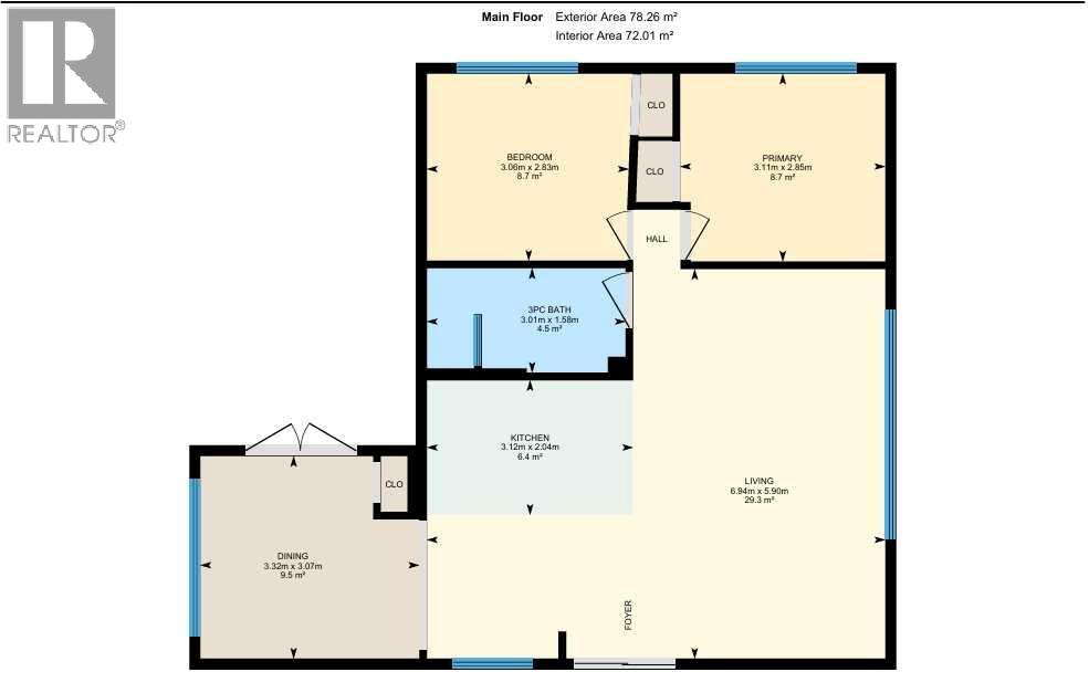 | Primary Bedroom | Main level | 2.85 M x 3.11 M | — |