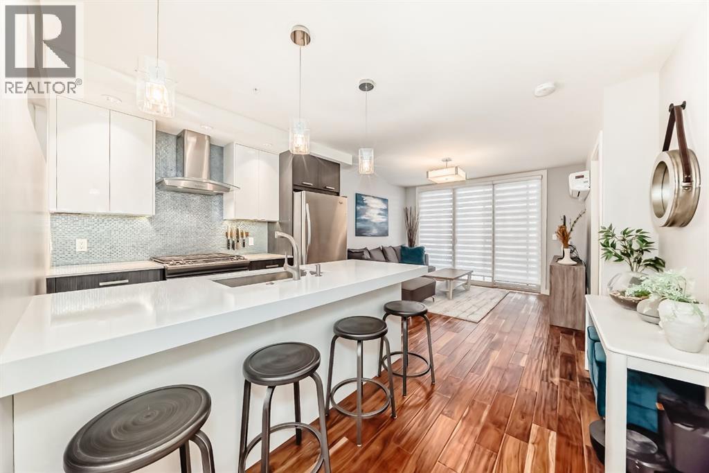 "" SUNDAY, APRIL 26, 1:00 - 2:30 PM "" Excellent professional and or investor condo ((short term rentals allowed) in a prime area of Connaught/Beltline. Sunny south unit direction with air conditioning ($10000 option). Two bedroom, two full bathrooms (Ensuite and guest bathrooms), spacious living room, kitchen with dining, eating bar area, upgrade features include: quartz countertops, engineered hardwood flooring, spacious open plan, 9 foot ceilings, in suite laundry, spacious deck, one rear lot parking stall, beside rear access door. Bedroom 2 fits a bed. No exterior window and closet is in hallway. Extra storage locker in parkade area Location is close to everything downtown: restaurants, coffee shops, etc. but location is still quiet at night - away from the noise of the nightlife. (id:63190)