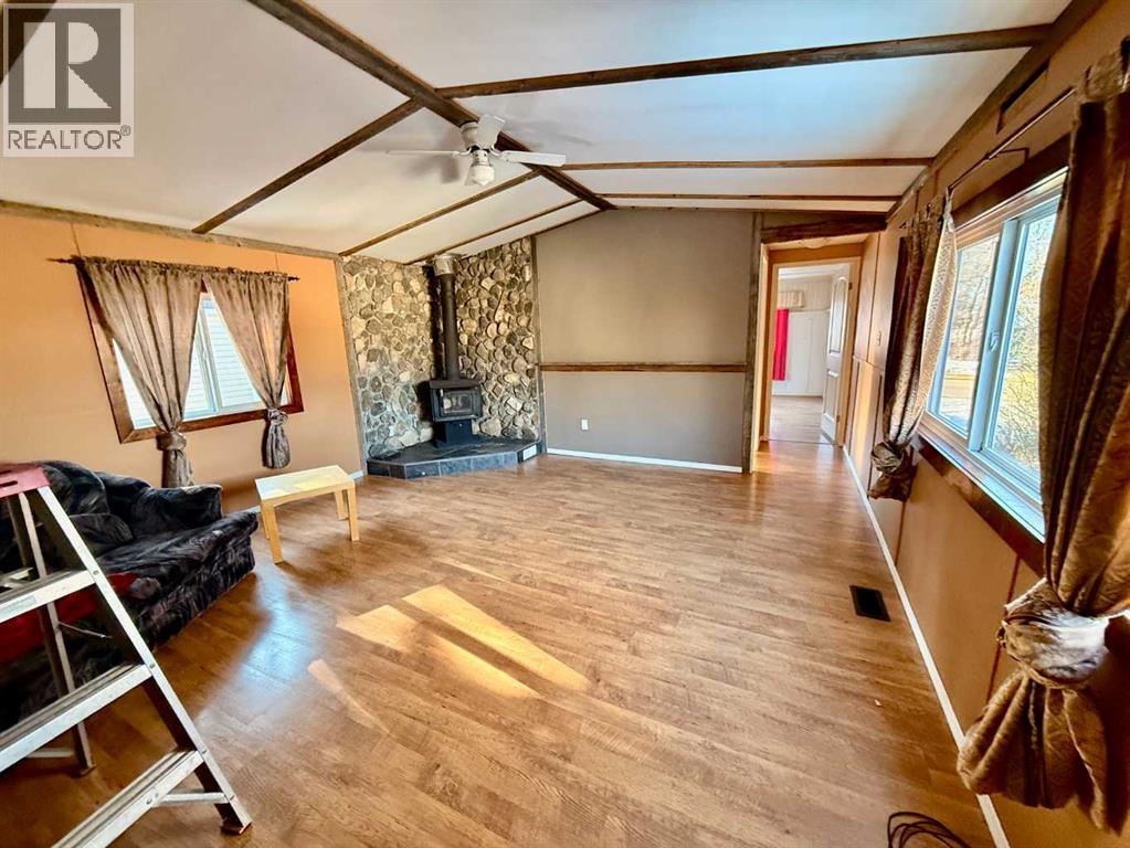 Located in the Village of Amisk, this 1,184 sqft. mobile home features 3 bedrooms, bright & open primary bedroom large enough to fit a king bed, 2 additional bedrooms with a 4pc. jack & jill bathroom. Modern & trendy open kitchen, dining area, living room with wood burning fireplace & separate laundry room. This home is situated on a nice sized lot with a 24 x 30 double detached heated garage. (id:63190)