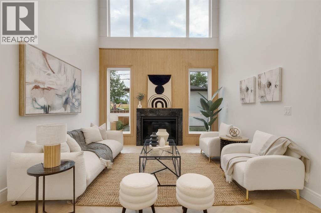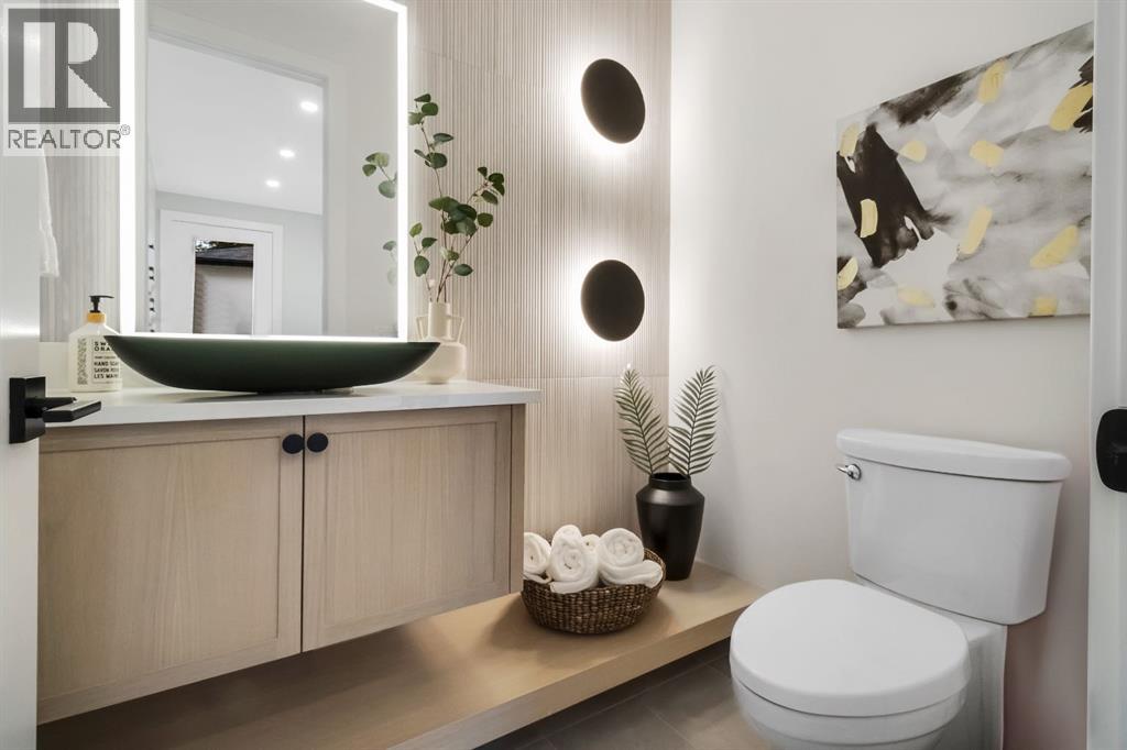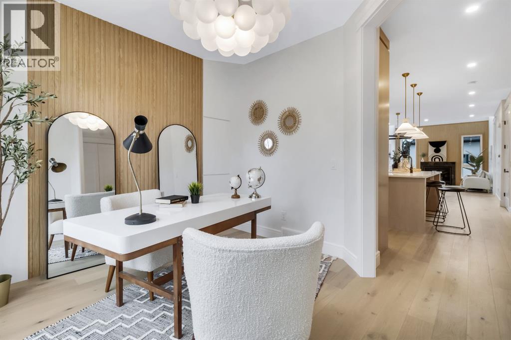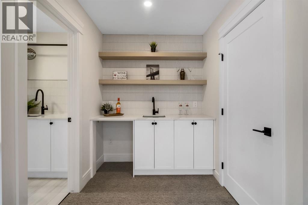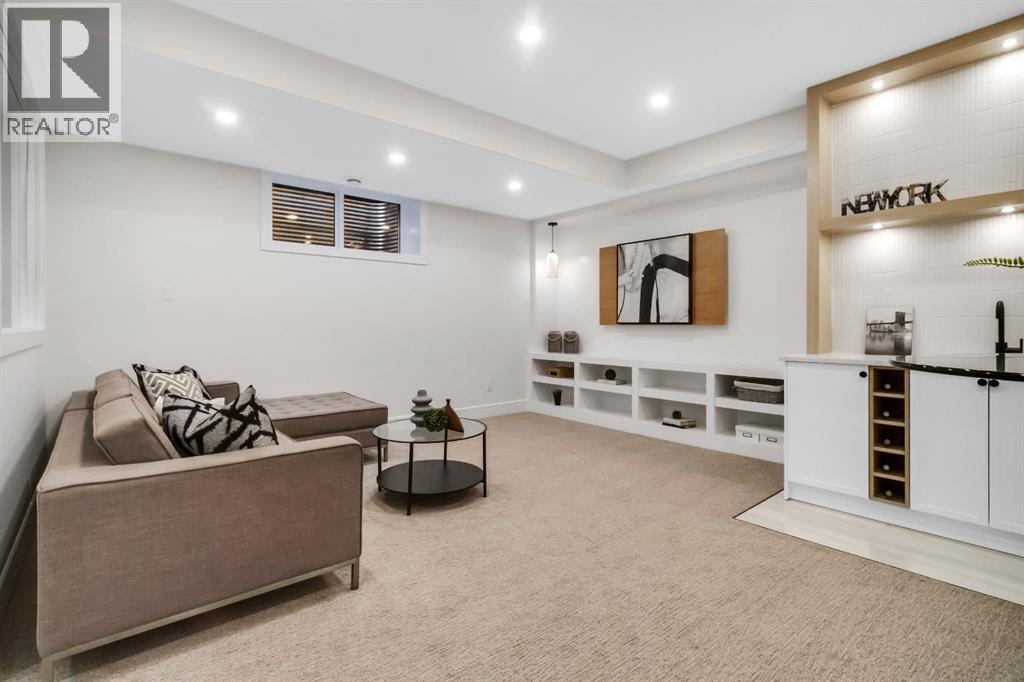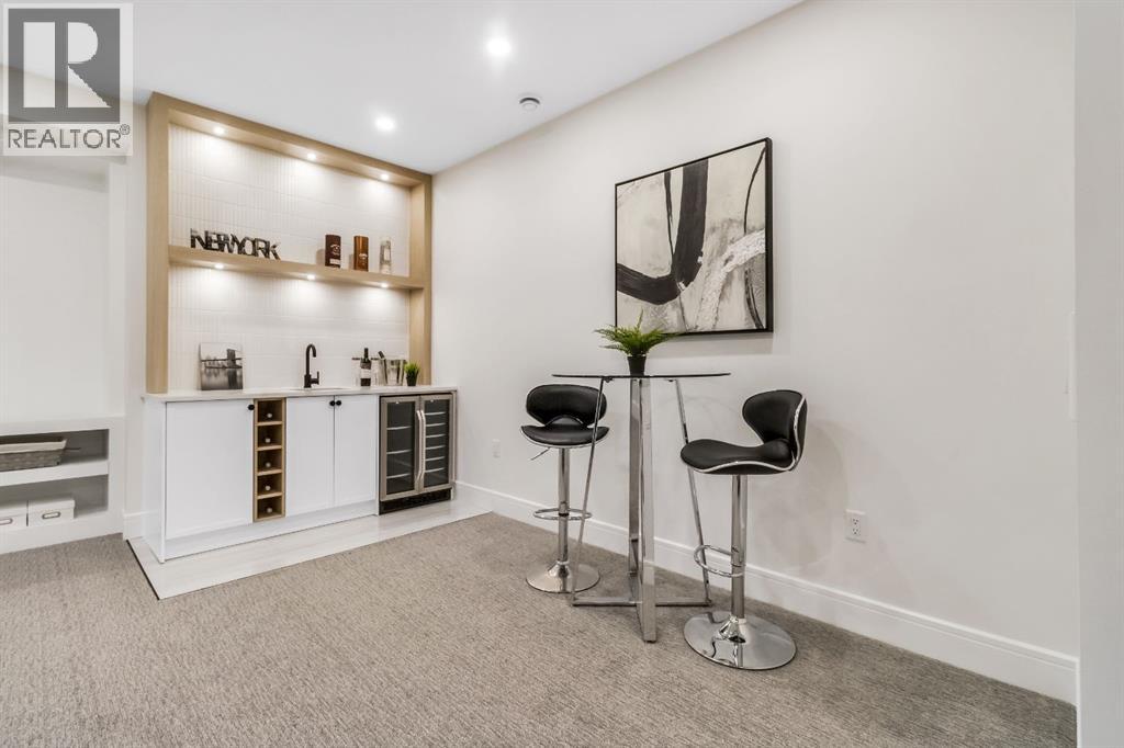 Welcome to this exceptional modern home nestled on a quiet, mature street in the heart of desirable Banff Trail, with a charming park right at your doorstep. Boasting over 3,800 square feet of thoughtfully designed living space across four levels—and serviced by a private elevator—this home seamlessly blends contemporary luxury with everyday comfort. Step into the elegant front den, where custom lighting and a statement feature wall offer a stylish first impression. The main level showcases wide-plank hardwood flooring and a soaring open-to-above layout that brings a dramatic sense of space to the living area. The gourmet kitchen is a true showstopper, equipped with premium appliances, including a 6-burner gas range, and framed by sleek finishes that will delight any culinary enthusiast. A chic powder room, complete with a standout vanity and playful designer lighting, adds personality, while the rear mudroom provides functional storage and access to the backyard. The second level is thoughtfully laid out with two large bedrooms, each featuring a built-in closet, and connected by a spacious Jack-and-Jill bathroom—perfect for family or guests. This floor also includes a cozy bonus room with a built-in bar and a large laundry area with everything you need for convenience. Ascend to the third floor to discover a private primary retreat spanning the entire level. This sanctuary features a generous bedroom, a coffee/wet bar, and a sunny balcony with peaceful views over the backyard and adjacent park. The custom walk-in closet is outfitted with high-end built-ins, and the spa-inspired ensuite is a true retreat, showcasing a dramatic black soaker tub, a double vanity, a stunning tile-clad steam shower, and floor-to-ceiling tile details. Downstairs, the fully finished basement continues to impress with a fourth bedroom, a stylish full bathroom with bold black tile accents, a dedicated home gym, and a spacious media room complete with a wet bar—ideal for movie nights or ente rtaining friends. Outside, the striking architectural is complemented by a welcoming front patio. With quick access to major routes, top schools, and nearby amenities, this home is a rare combination of style, functionality, and unbeatable location.Schedule your private tour today and experience the ultimate in modern inner-city living. (id:63190)