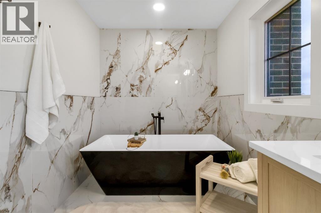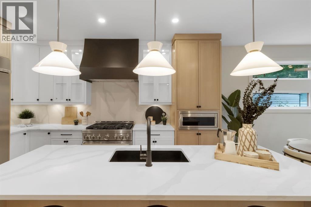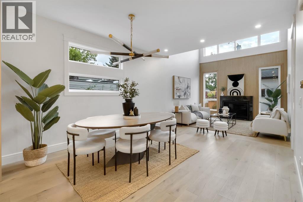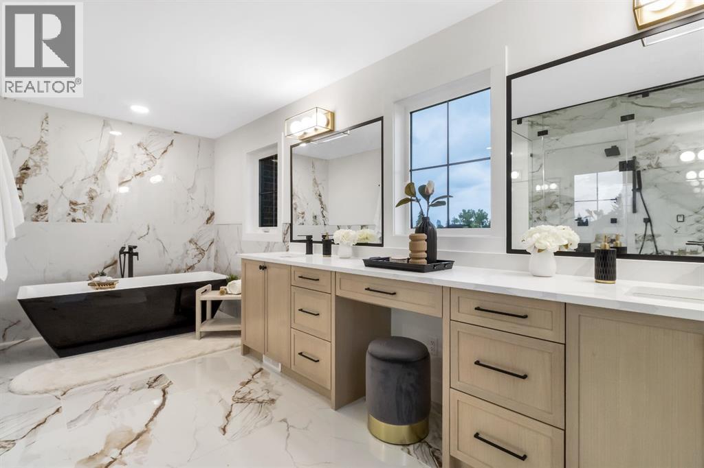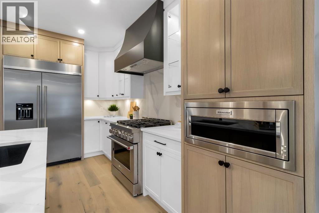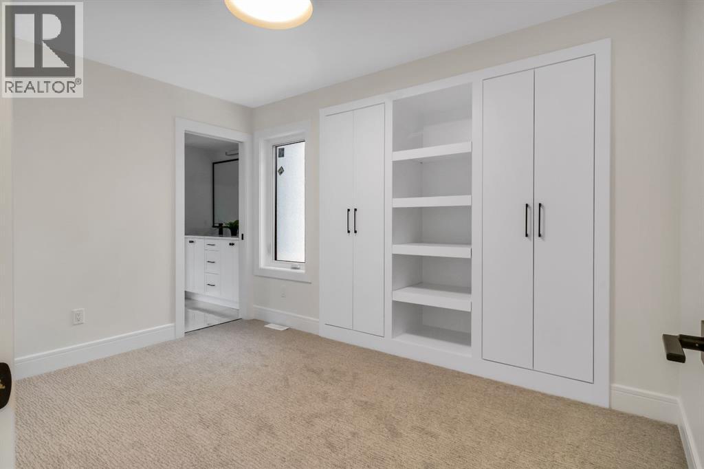 Welcome to this exceptional modern home nestled on a quiet, mature street in the heart of desirable Banff Trail, with a charming park right at your doorstep. Boasting over 3,800 square feet of thoughtfully designed living space across four levels—and serviced by a private elevator—this home seamlessly blends contemporary luxury with everyday comfort. Step into the elegant front den, where custom lighting and a statement feature wall offer a stylish first impression. The main level showcases wide-plank hardwood flooring and a soaring open-to-above layout that brings a dramatic sense of space to the living area. The gourmet kitchen is a true showstopper, equipped with premium appliances, including a 6-burner gas range, and framed by sleek finishes that will delight any culinary enthusiast. A chic powder room, complete with a standout vanity and playful designer lighting, adds personality, while the rear mudroom provides functional storage and access to the backyard. The second level is thoughtfully laid out with two large bedrooms, each featuring a built-in closet, and connected by a spacious Jack-and-Jill bathroom—perfect for family or guests. This floor also includes a cozy bonus room with a built-in bar and a large laundry area with everything you need for convenience. Ascend to the third floor to discover a private primary retreat spanning the entire level. This sanctuary features a generous bedroom, a coffee/wet bar, and a sunny balcony with peaceful views over the backyard and adjacent park. The custom walk-in closet is outfitted with high-end built-ins, and the spa-inspired ensuite is a true retreat, showcasing a dramatic black soaker tub, a double vanity, a stunning tile-clad steam shower, and floor-to-ceiling tile details. Downstairs, the fully finished basement continues to impress with a fourth bedroom, a stylish full bathroom with bold black tile accents, a dedicated home gym, and a spacious media room complete with a wet bar—ideal for movie nights or ente rtaining friends. Outside, the striking architectural is complemented by a welcoming front patio. With quick access to major routes, top schools, and nearby amenities, this home is a rare combination of style, functionality, and unbeatable location.Schedule your private tour today and experience the ultimate in modern inner-city living. (id:63190)