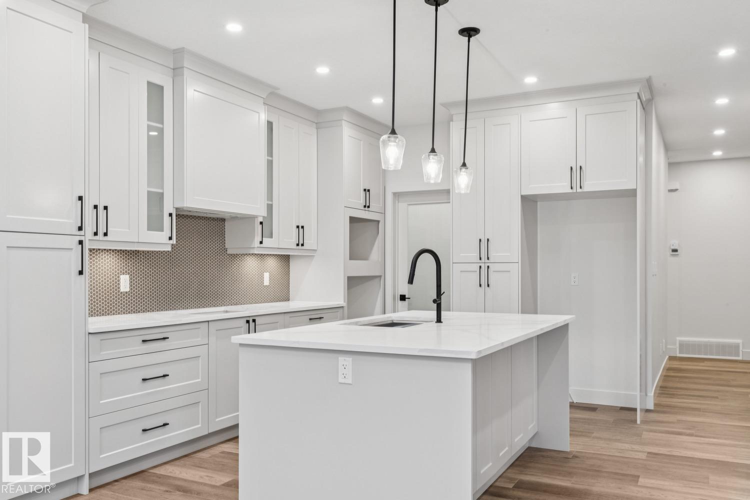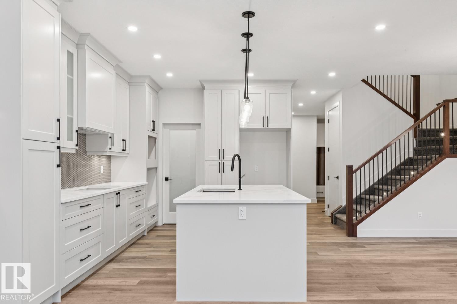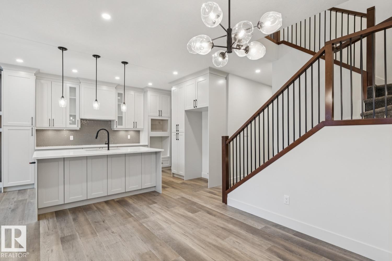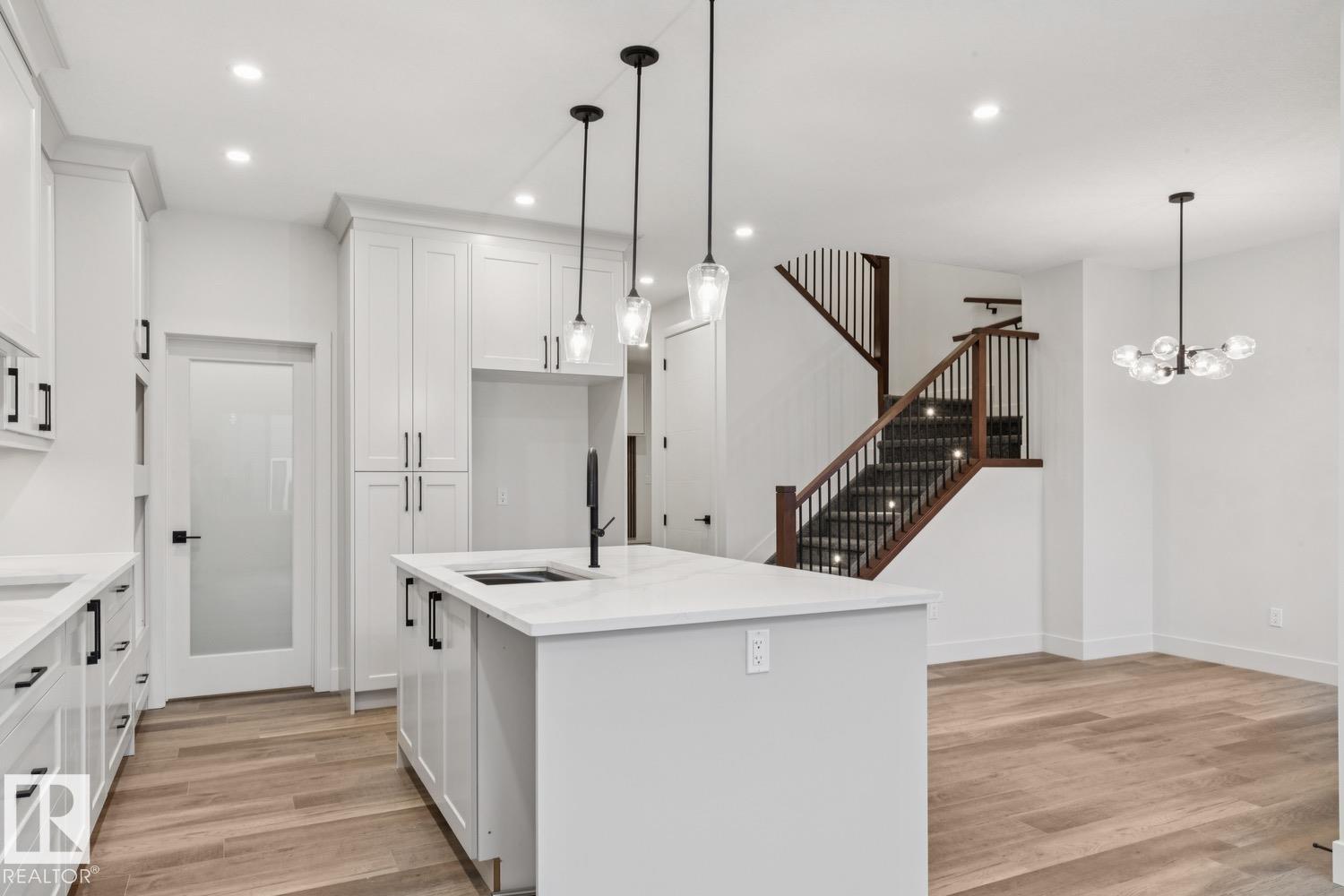 Welcome to this beautiful 3 bedroom + den, 3 bathroom home that includes a SPICE KITCHEN, OPEN TO ABOVE IN LIVING ROOM and SIDE SEPARATE ENTRANCE. This home features beautiful luxury vinyl plank, upgraded plumbing and lighting and more. The functional layout offers a den on the main level which can also be used as a bdrm, a full bath, generous dining area, huge living room with fireplace and a breathtaking kitchen. The custom kitchen features soft close cabinets, quartz countertops and fully equipped with stainless steel appliances. Not to forget, the kitchen also includes a spice kitchen that walks through to the mudroom. The upper level is where you will find the additional 3 bedrooms, 2 full bath, bonus room and laundry. The primary bedroom is absolute stunning and includes its own walk-in closet and beautiful 5pc ensuite with his and her sinks. The side entrance offers the ability to develop your future basement suite. Located minutes to all your shopping needs, schools and public transportation. (id:63190)
