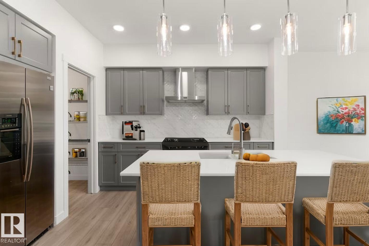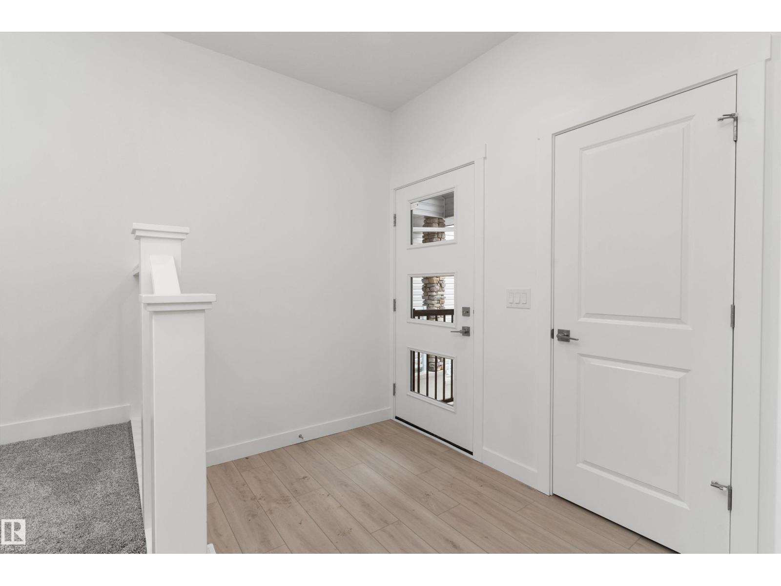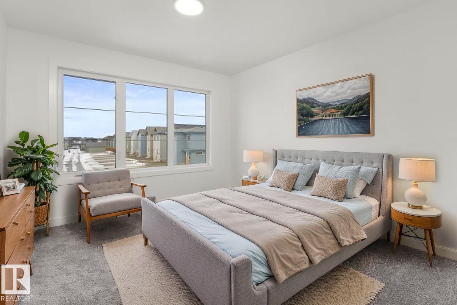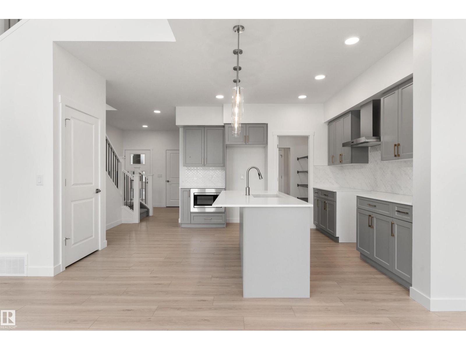 Built by Sterling Homes, this front-attached home in Rivers Edge offers bright, modern living with a dramatic open-to-below great room. Triple pane windows and 9’ ceilings create an airy main floor, featuring a stylish kitchen with quartz counters, a large island, ceiling-height cabinetry, chimney hood fan, full-height backsplash, and a walk-through pantry leading to the mudroom. The great room includes an electric fireplace and sliding patio doors to the backyard. Upstairs, the primary suite has a spacious walk-in closet and 3-piece ensuite. A bonus room, full bath, laundry area, and two additional bedrooms complete the layout. With a separate side entrance, upgraded railings, a garage with floor drain, luxury vinyl plank flooring, and basement rough-ins, this home blends comfort and design in a scenic community. (id:63190)
