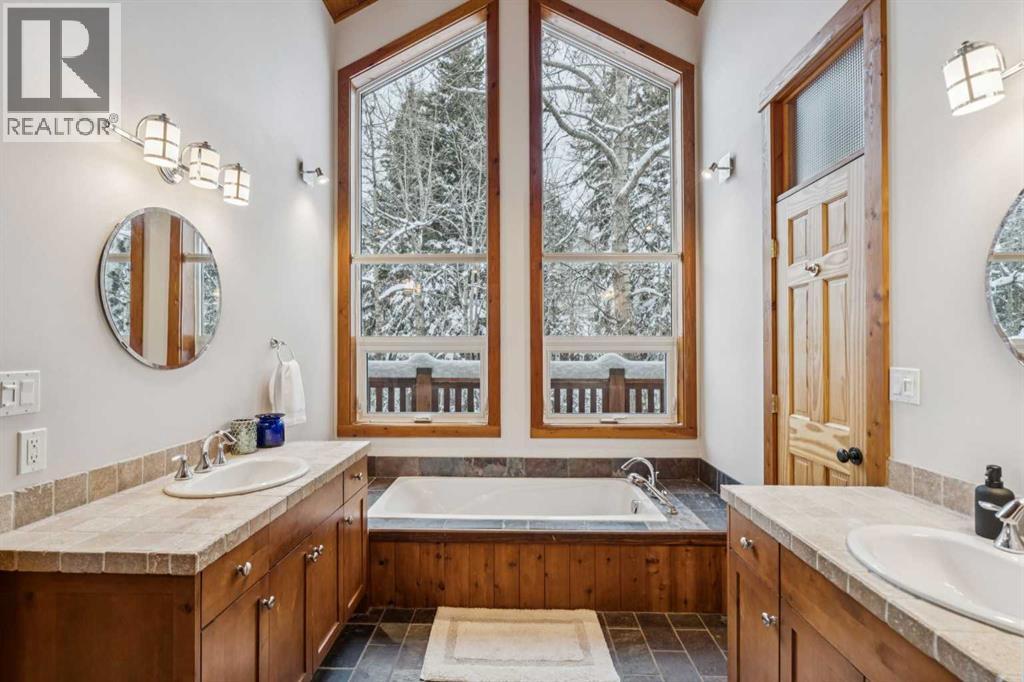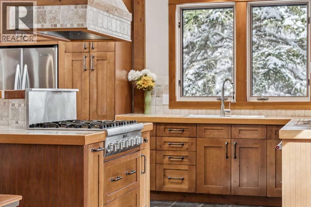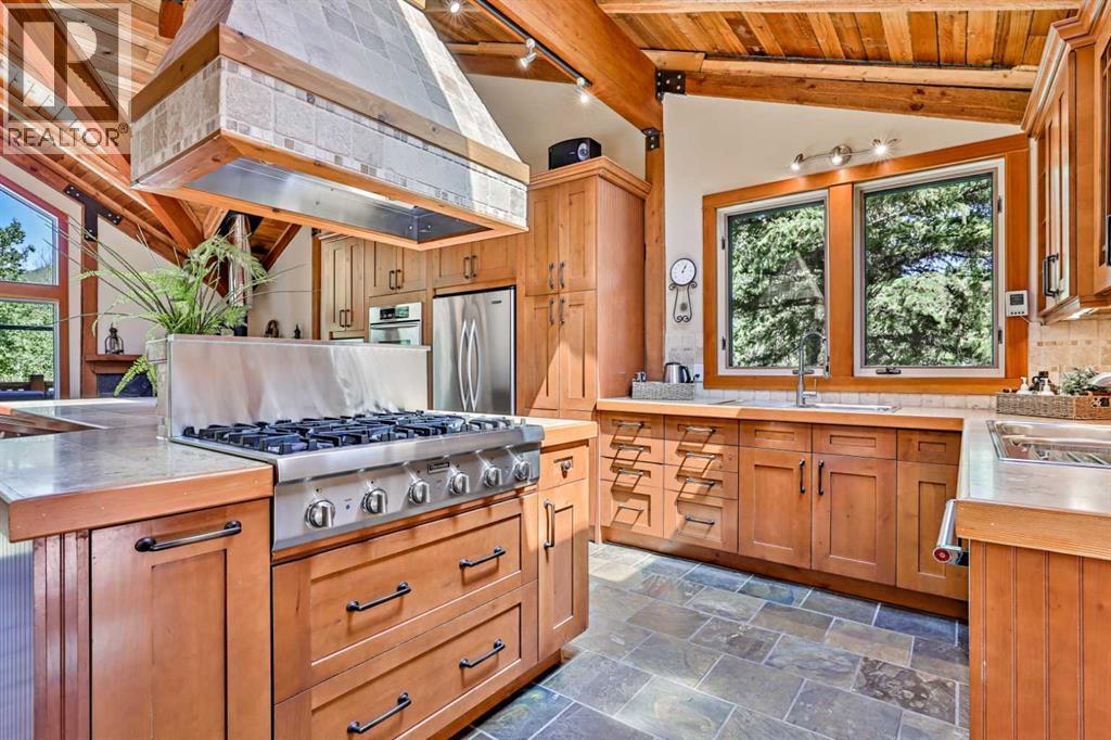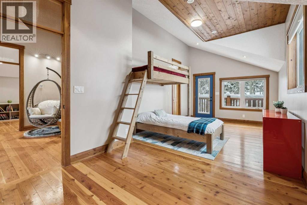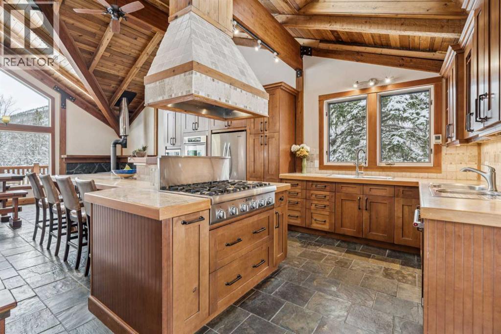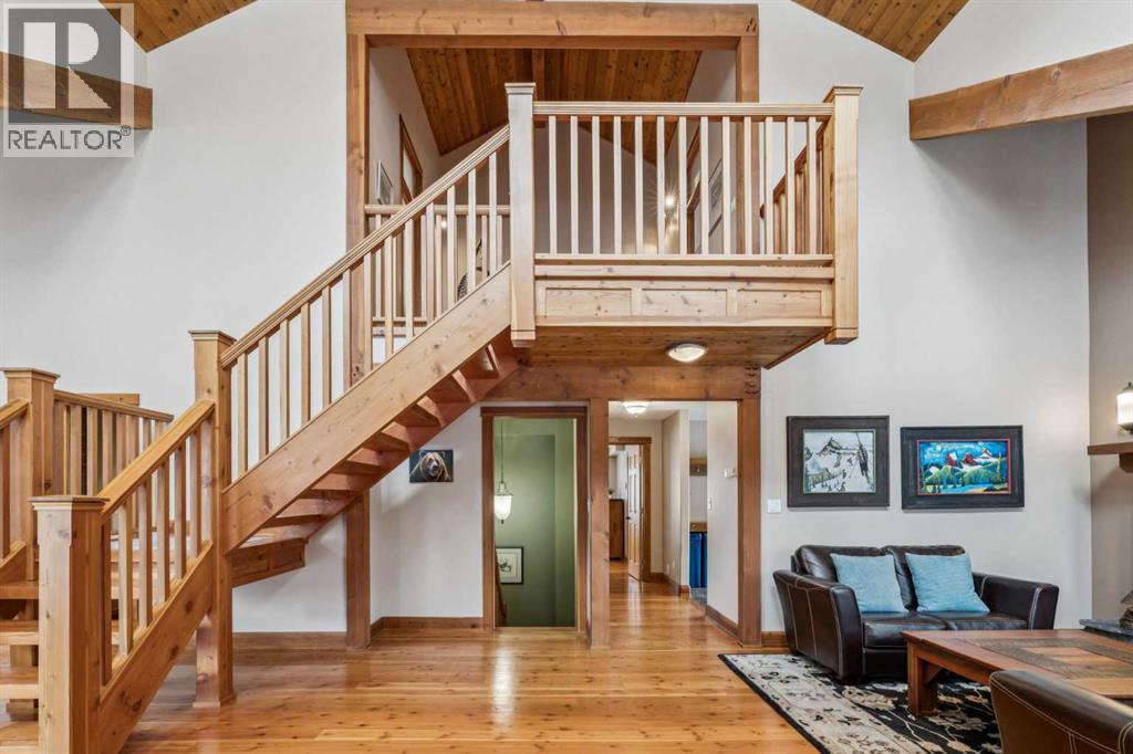 *** OPEN HOUSE SATURDAY, APRIL 18th - 11 AM to 3 PM.*** Wake up to breathtaking mountain views & the peaceful beauty of Lac des Arcs. This private and pristine half-acre mountain retreat offers spectacular scenery and surrounds you with the incredible outdoor lifestyle that defines the Bow Valley. This beautifully designed home offers over 4,300 square feet of developed living space, featuring soaring vaulted ceilings, rustic wide-plank flooring, rough-cut timber beams, warm cedar ceilings, and skylights that flood the home with natural light. A stunning wrap-around timber deck creates the perfect place to relax and take in the surrounding beauty. Originally built in 1978, the home was EXTENSIVELY EXPANDED in 2006 with the addition of a second storey and an enlarged main-floor primary suite, creating a spacious and thoughtfully designed layout. The chef-inspired kitchen features stone countertops and opens to the main living and dining areas where large windows frame beautiful mountain views. A cozy wood stove adds warmth and character to the dining space, while a separate sitting area with a wood-burning fireplace creates a cozy retreat. The large main-floor primary suite is a true sanctuary, offering direct access to the rear deck and a luxurious five-piece ensuite with soaring windows and nature views. An elegant staircase leads to the upper level to two expansive bedrooms, each showcasing vaulted ceilings, expansive windows and views, and a shared spa-like 5-pc bath, providing comfortable space for family or guests. The fully developed lower level features yet another sprawling bedroom, a full bathroom, den, and gym area, offering additional flexibility for guests, recreation, or working from home. You can access the attached, oversized double garage from here. The garage and most of the home have extensive in-floor radiant heat. A standout feature of the property is the impressive 2,200 sq. ft. detached garage/workshop/carriage house. The main level incl udes three overhead bay doors, a vehicle hoist, 220V wiring, airline and compressor for air tools, making it ideal for automotive enthusiasts, hobbyists, or trades. The bright, sunny upper level welcomes you with vaulted ceilings, offering endless possibilities for a studio, workspace, or future development. In-floor heating on the main level could also be connected to the upper level. Surrounded by world-class recreation, residents enjoy nearby access to hiking and biking trails, the Bow River, the Canmore Nordic Centre, and multiple ski resorts including Nakiska, Mount Norquay, and Sunshine Village. Golf at Stewart Creek and Silvertip is just minutes away. Conveniently located just 10 minutes from Canmore, and one hour from the Calgary International Airport, this remarkable property offers the perfect balance of peaceful mountain living and convenient access to nearby communities and amenities, at a more accessible price point. Properties in this area are not part of the foreign buyers ban. (id:63190)