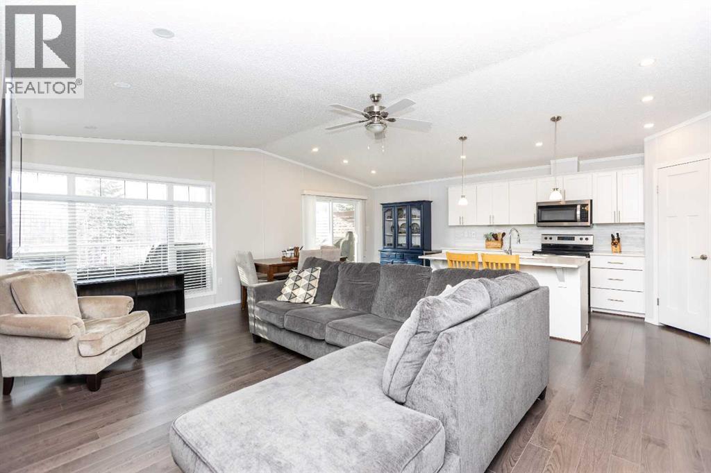 Lake life! So much to do, so little time. First class recreational year round park on the south west shore of Gull Lake with so many amenities you and the fam won't have a bored moment! Brand new (12 hole) golf course set to open in 2026. Man made marina (boats) giant beach (swimming) are the obvious activities, but they have volleyball courts, playgrounds, a giant gazebo with big firepit and hiking/biking trail that will take you to either the Gull Lake townsite or the town of Bentley. Looking for something a little less "active"... try pickleball! There's cross country skiing, snowmobiling or ice fishing. Or... you can just enjoy a massive covered deck overlooking your backyard and the lake. This former show home is spectacular inside and out. Great room area has vaulted ceiling, stunning white kitchen with upscale stainless appliances, quartz counters and access to the massive back deck and yard. Good sized master has a "temp wall" that can easily be removed. Full ensuite bath as well as standard bath and a guest room. Laundry is included in the home, but right across the street is the community laundry and washrooms (very clean!!). Marina with restaurant and gas bar are just a short walk away. Lease value for marina slip is $1627 + GST for '26 (limited availability). Owners are responsible for maintaining their own yard. Condo Corp will keep common areas looking great, remove snow, supply your water and sewer and the keep it a great place to live. This home can be used year round. It has R40 insulation in the attic and under the floor and R22 in the walls. There are several year rounders here now... This is a newer, extremely well done, recreational condo park. You are ON the lake... (id:63190)