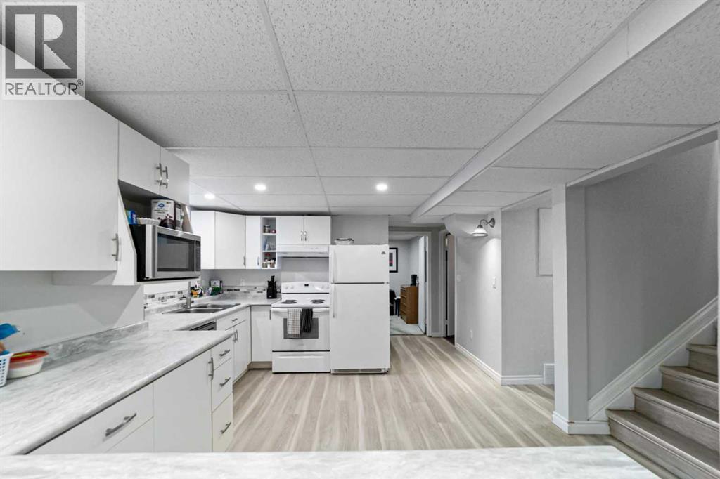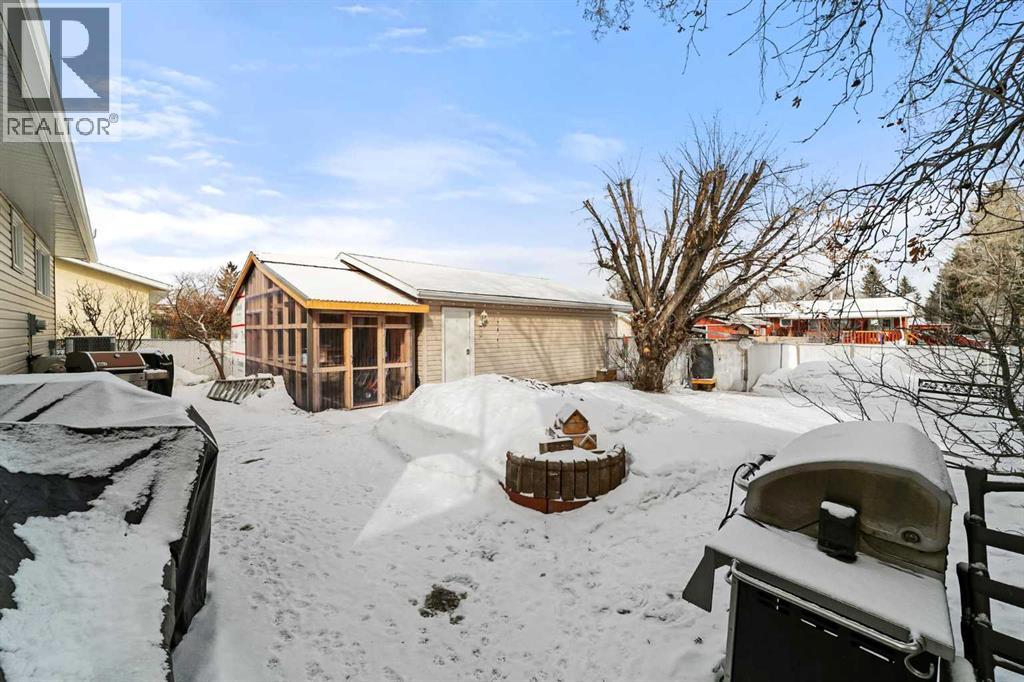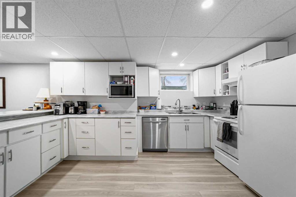 Welcome to this well-maintained, move-in-ready family home located in a quiet neighborhood in Camrose. The main floor features 3 bedrooms and 1.5 bathrooms, including a convenient 2-piece ensuite off the primary bedroom. The bright and functional kitchen offers newer appliances and a gas stove, while main floor laundry adds everyday convenience. The newly developed basement provides excellent additional living space with kitchen, living room, dining area, one bedroom, a full bathroom, plus a second set of laundry. Important mechanical updates include a new furnace (2024), central air conditioning (2024), and a newer hot water tank. Outside you’ll find a finished and heated double garage with built in storage, a large greenhouse, a fully fenced yard with patio, fruit trees, and a garden area. Alley access adds extra convenience and additional parking. This property shows nicely and offers a great combination of comfort, functionality, and outdoor space in a desirable, quiet location. (id:63190)
