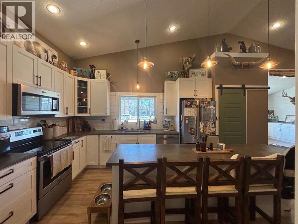 This beautiful bungalow features 4 bedrooms, 2.5 bathrooms, and just over 1,800 sq ft of living space. The home features a great open concept with high vaulted ceilings that flows from the kitchen to the dining area and into the massive family room. Just off the family room is a convenient 2 piece bathroom. The primary bedroom includes a nice walk-in closet and a 5 piece ensuite. There are also three additional bedrooms and another 4 piece bathroom. The home had extensive renovations completed less than 10 years ago. On the exterior, it received new siding, windows, and doors. The garage was torn off and rebuilt on the same footprint, fully insulated, with plenty of storage space and ramp access into the home. The entire roof was also removed and rebuilt with new trusses, sheathing, and shingles, and the gutters were redone a couple of years ago. Inside, the home was updated with new insulation, plumbing, and electrical. The kitchen features newer appliances, cabinets, countertops, a large island, and a walk-in pantry. The entire home was also professionally painted last summer. A 10’ x 14’ deck was added off the side of the home. It is partially covered and a great spot for BBQs or relaxing outside. Both side fences were recently redone, and the yard is fully fenced with a few trees for added privacy. A shed was also added, giving you extra storage space. (id:63190)