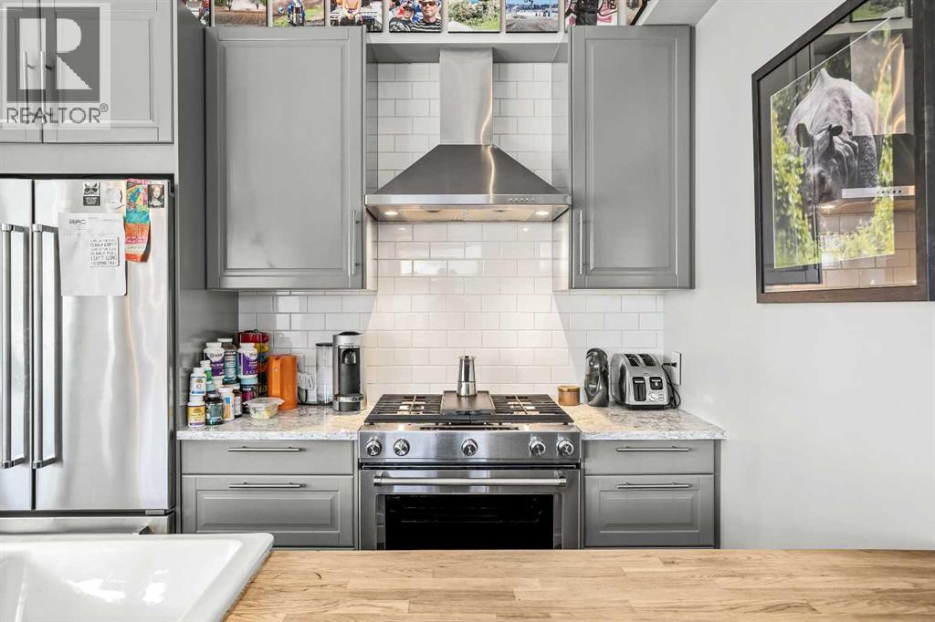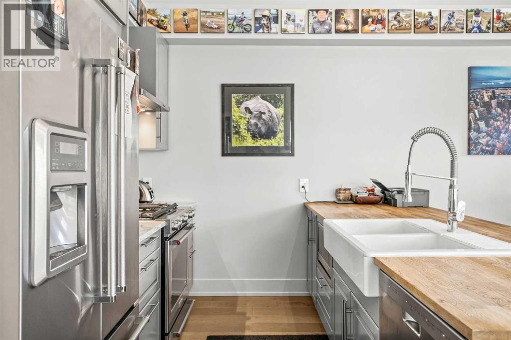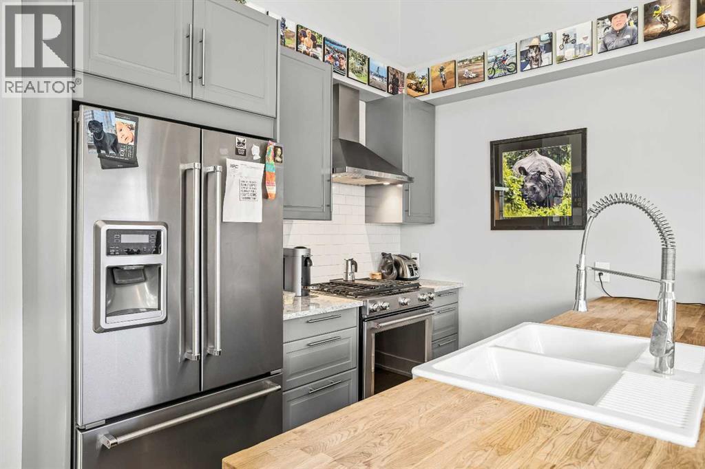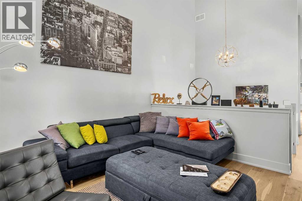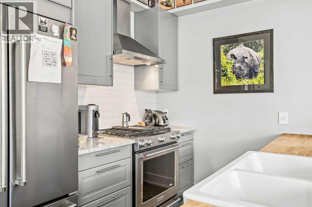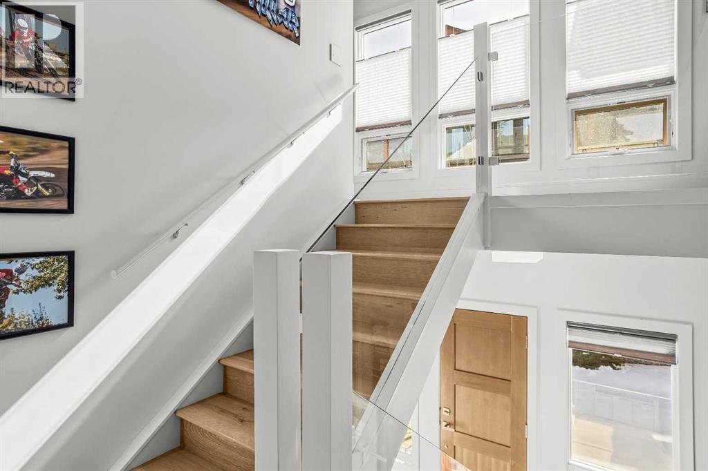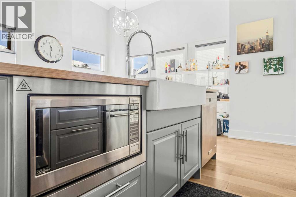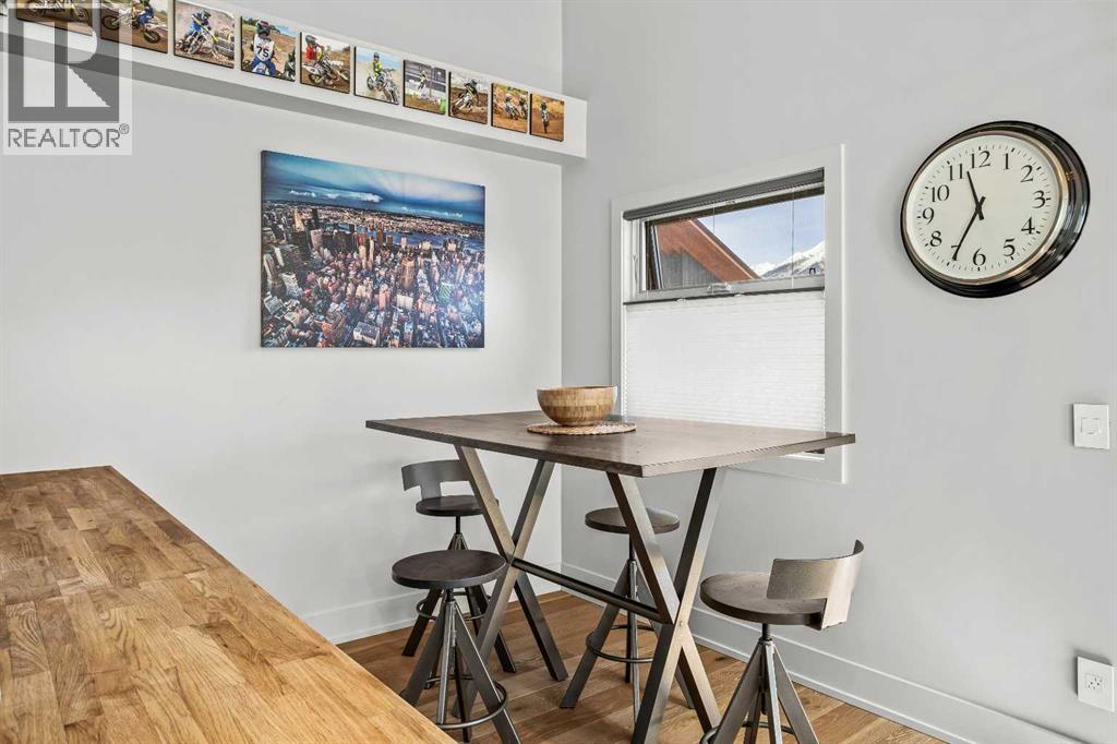 In a back row location, alongside a lovely treed hillside you'll find this well appointed, bright & spacious modern townhome. Over 3 storeys, with no one above or below you, this 1743 SF end unit provides serenity & pride of place in the Three Sisters of Canmore. On entry, vaulted ceilings & a glass bordered stairway leads up to the main level, or down to a handy flex space, laundry & single garage, perfect for active lifestyles. The middle floor offers 2 bedrooms, where the primary suite is an ideal respite with its own bath & generous closet space. A private balcony leads to the woods alongside. Upstairs, views are panoramic, where 3 walls of glass bring the outside in. A thoughtfully laid out kitchen sits together with the dining area & will be the heart of entertaining. Opposite, the living room inspires relaxation & calm under soaring ceilings. Finding inspired design which brings comfort & utility while also offering an environment that's "of" Canmore is a rare offering. We hope you agree! (id:63190)