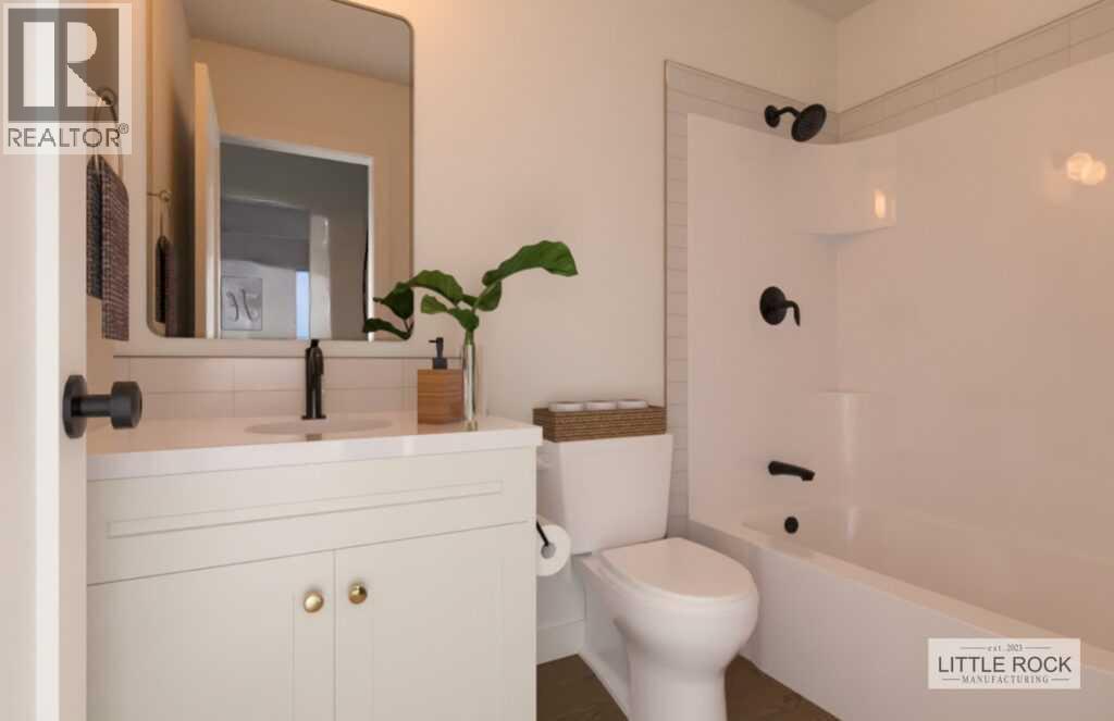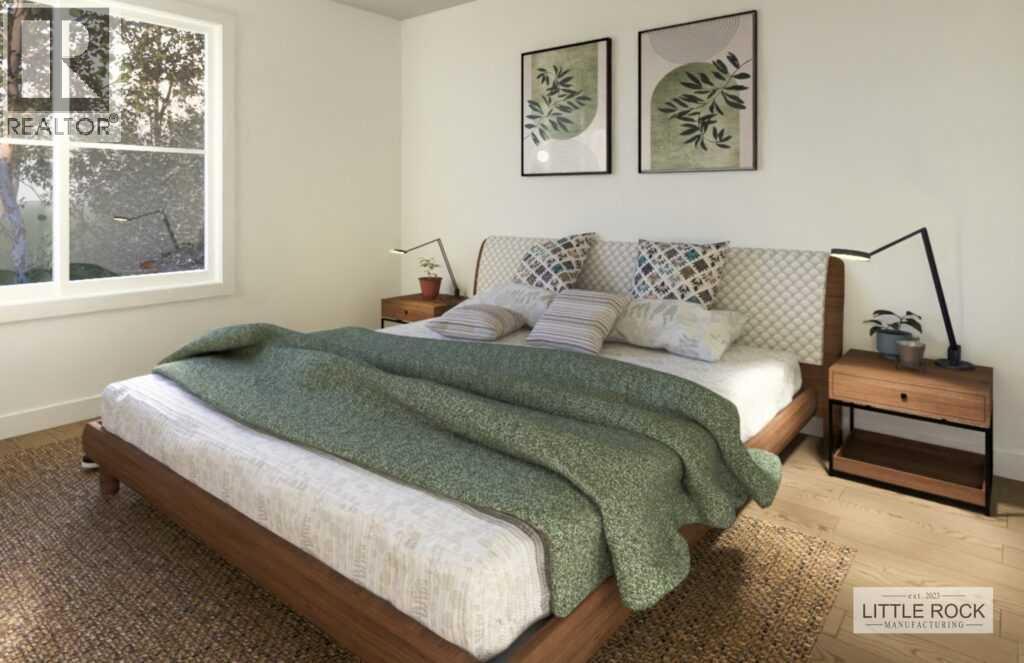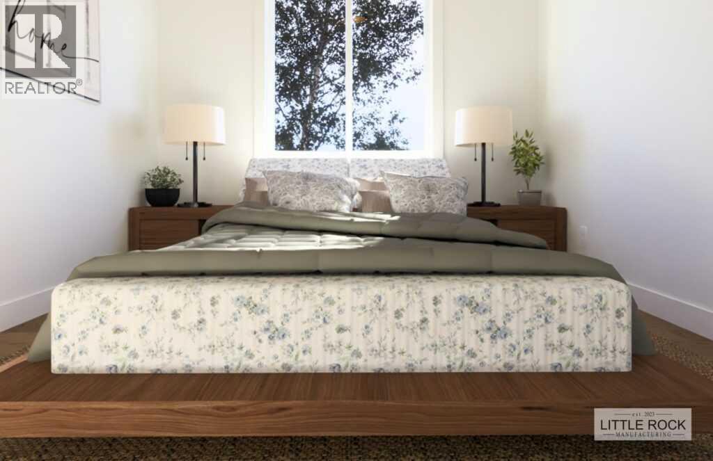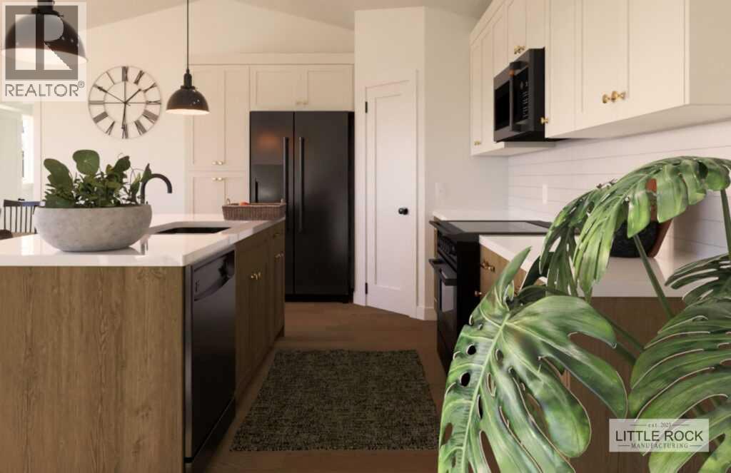 Welcome to Rio Bend Estates, where peaceful country living meets modern comfort just 25 minutes east of Grande Prairie and minutes from the hamlet of Bezanson. Set on a 3.17 acre parcel overlooking the Smoky River Valley, this property offers the perfect opportunity to own a brand-new acreage home. The Saddlebrook, by Little Rock Manufacturing is a beautifully designed 1,456 sq. ft. home featuring 3 bedrooms and 2 bathrooms, thoughtfully crafted in a modern farmhouse style. Its open-concept layout creates a warm and inviting atmosphere, seamlessly connecting the living, dining, and kitchen areas ideal for both everyday living and entertaining. The kitchen is a standout with shaker-style cabinetry, a farmhouse sink and custom finishes that blend timeless charm with modern functionality. Throughout the home, you’ll find designer lighting and plumbing fixtures, painted drywall, and a clean, contemporary color palette. The spacious primary bedroom includes a private ensuite, while two additional bedrooms provide flexibility for family, guests, or a home office. The exterior features durable vinyl siding and a low-maintenance finish, as well as a large, finished deck, while the expansive lot offers endless potential for outdoor living, garages, shops, or simply enjoying the surrounding views. While the home is currently under construction off site, possession of your new acreage could be as early as the beginning of May allowing you all summer to enjoy the outdoors; be it fencing the property for a couple horses, building your perfect firepit to enjoy the beautiful views, or tending to your own homestead garden. This is a rare chance to own a new home on acreage for under $600,000. Take the drive and see the views for yourself or contact your Real Estate Professional for more details and to view the home. *Photos are renderings of what the finished home will look like (id:63190)