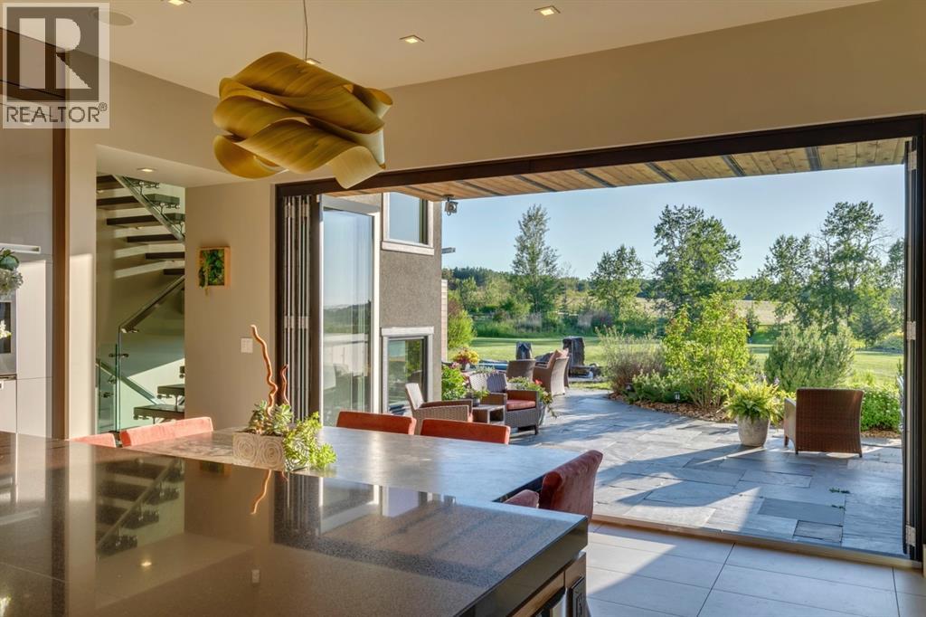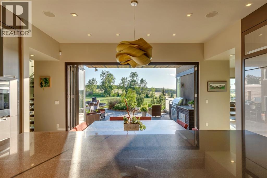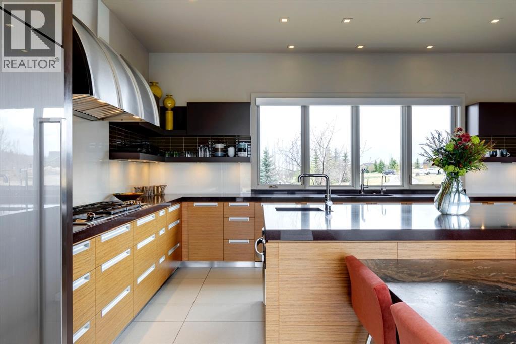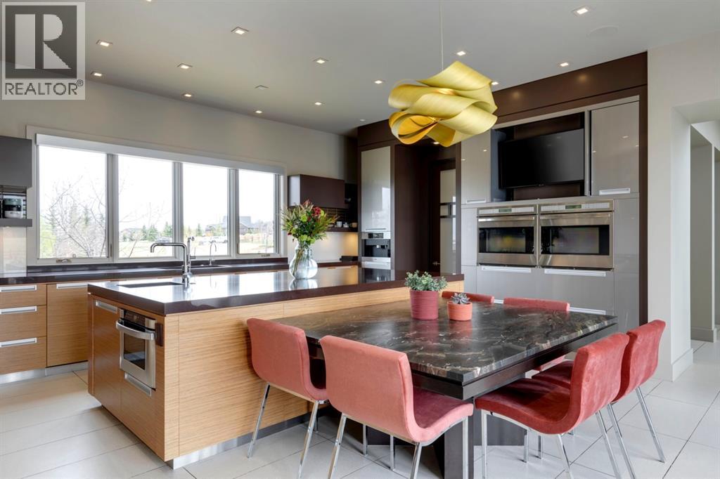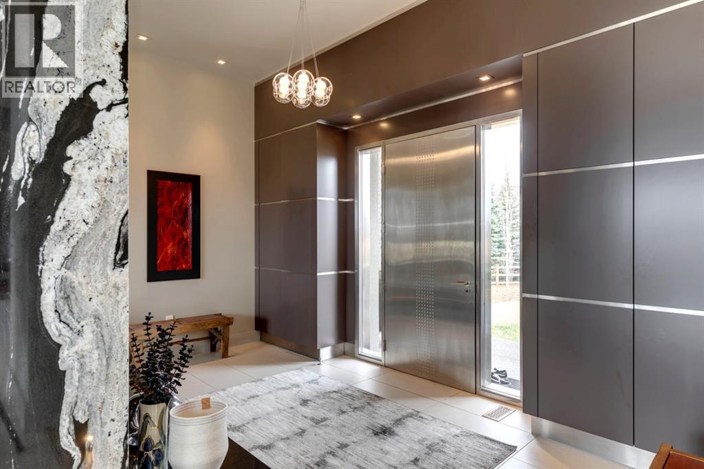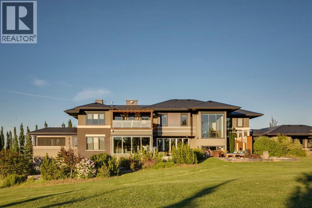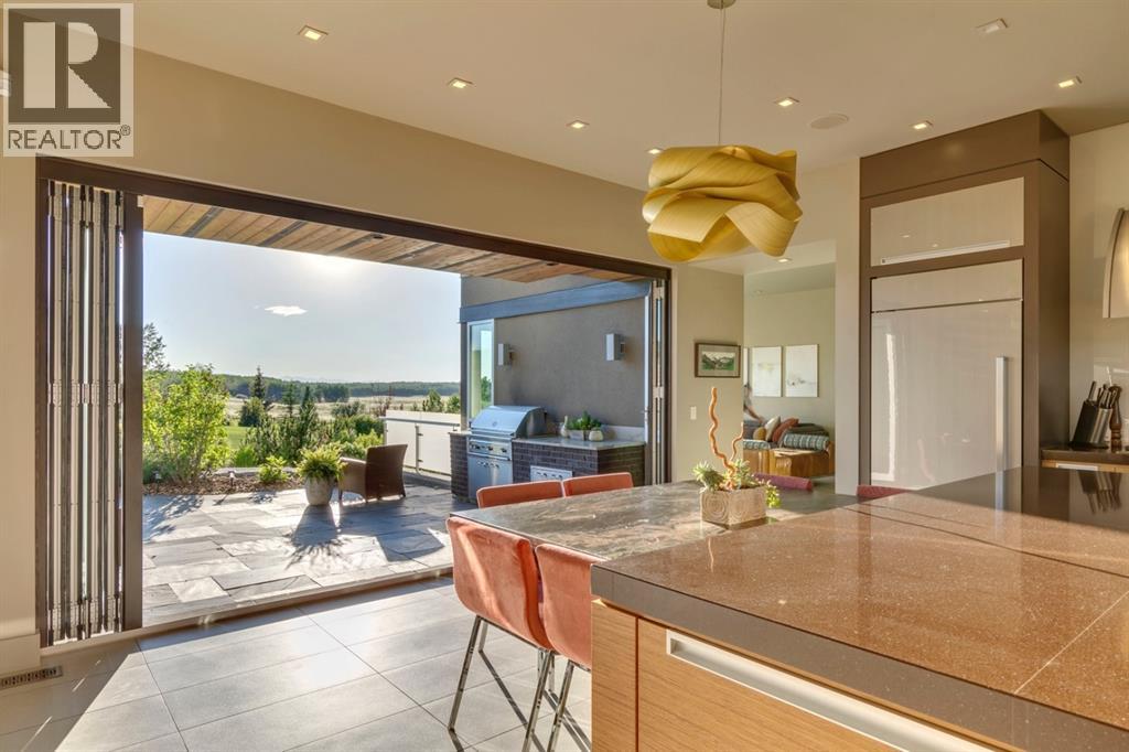 Architecturally inspired by Frank Lloyd Wright and designed to capture breathtaking west-facing views of the Rocky Mountains, this Built Green & Gold Certified, energy efficient estate is one of the most exceptional homes in Bearspaw. Thoughtfully curated on 2.91 pristine acres at the end of a quiet cul-de-sac, this 5 bedroom, 7 bath residence offers over 6,200 sq ft of developed living space, all warmed & cooled via advanced geothermal technology with in-floor heating. Striking floor-to-ceiling commercial grade windows frame the dramatic mountain vistas throughout the home. The chef’s kitchen is impeccably appointed with full Sub-Zero fridge & freezer, six-burner Wolf cooktop, custom hood fan, dual Wolf convection wall ovens, Wolf warming drawer, & Miele dishwasher & coffee station. A substantial quartz island provides abundant prep space, while the built-in kitchen table finished in Capolavoro honed granite adds warmth & texture. Entertain effortlessly as a 15.5-ft NanaWall opens to the spectacular backyard oasis, featuring a built-in Lynx BBQ, custom water feature, natural gas fireplace, & professionally designed landscaping with automated irrigation. The seamless indoor-outdoor flow is ideal for hosting gatherings large &/or small. The main level is completed by a spacious living area with dual-sided fireplace, a west-facing home office filled with natural light, formal dining room well suited for large gatherings, & a well-designed mudroom with extensive built-ins, laundry facilities, & a second floor laundry chute. A covered courtyard with motorized screens, sound system, & natural gas fire table creates an inviting outdoor lounge experience. A bright breezeway connects to the heated 4+ car garage, complete with dog wash & EV charging. The upper level hosts four generous bedrooms. The primary suite & fourth bedroom each feature private ensuites, while the second & third bedrooms share a Jack & Jill bath. The primary retreat rivals a six-star hotel, showcasing a custom built-in king bed & a Holt Renfrew-inspired walk-in dressing room. A thoughtfully designed kids’ media area completes this level. The walkout lower level is equally impressive, offering guest quarters, a media room with blackout blinds, custom banquet seating, wine room, wet bar, & a fitness studio with direct access to the private salt water hot tub. The spa-inspired bathroom features a rainfall steam shower & large infrared sauna, creating the perfect space for healthy detox & rejuvenation. A full Control4 smart home system provides advanced automation (lighting, audio video, temperature, blinds, irrigation, + security) all accessible via your smartphone. The property also has a radon mitigation system & reverse osmosis water throughout. Ideally located with quick access to the mountains, the airport, & the downtown core, this remarkable property offers a rare blend of architectural distinction, cutting-edge technology, & serene natural beauty, call for more information! (id:63190)