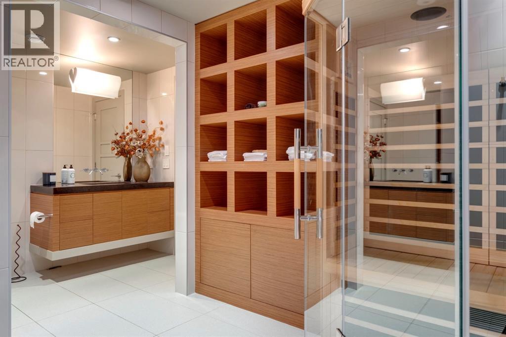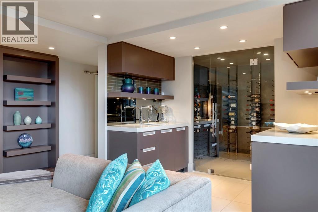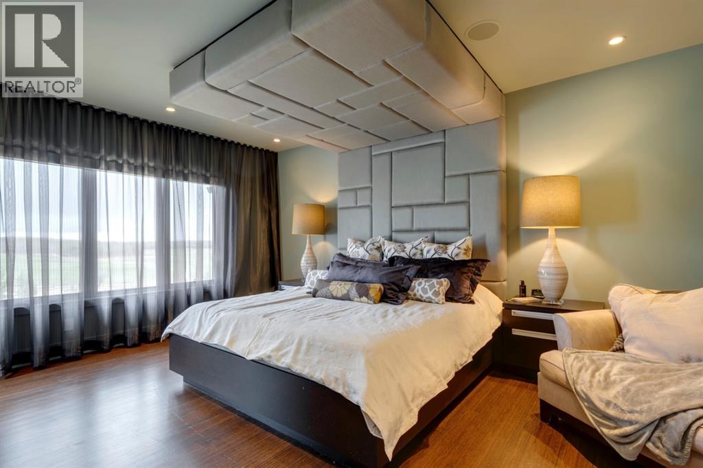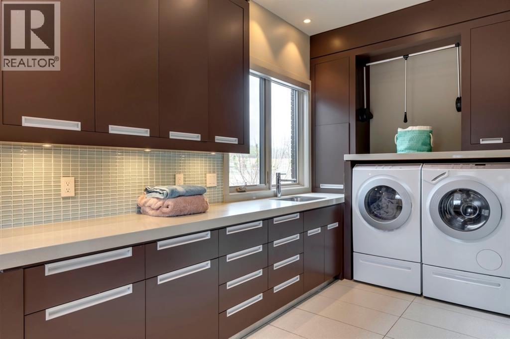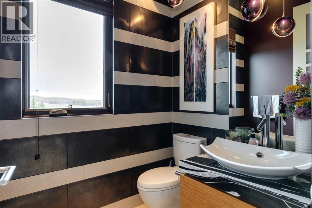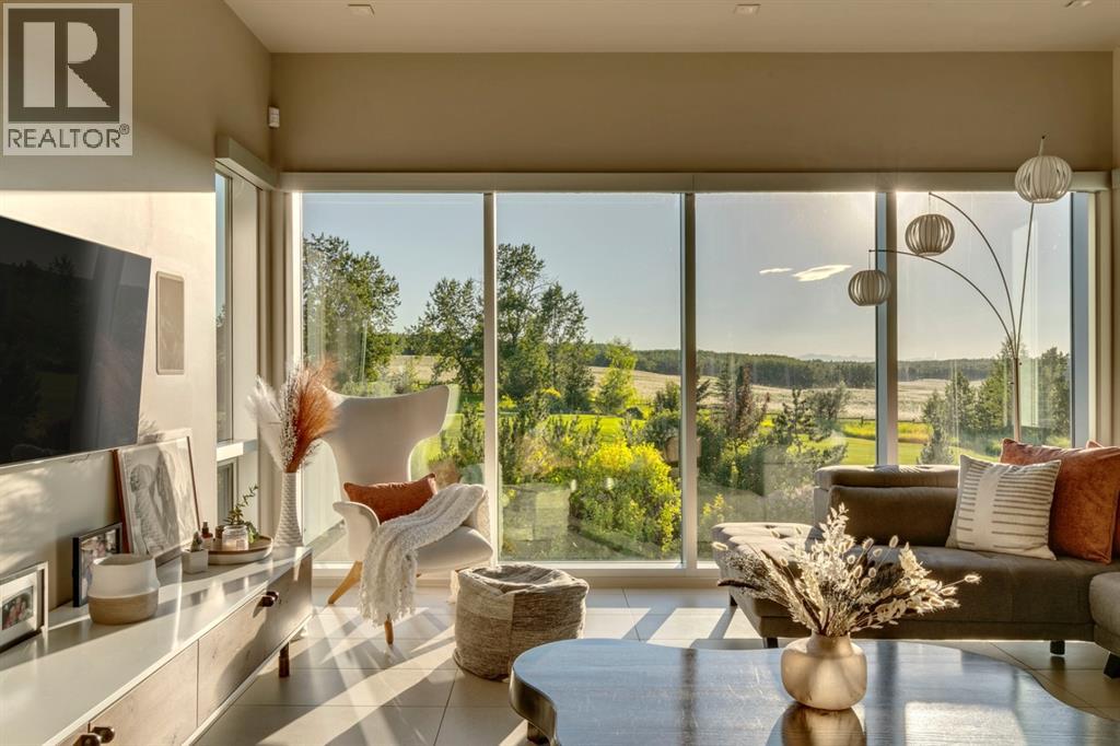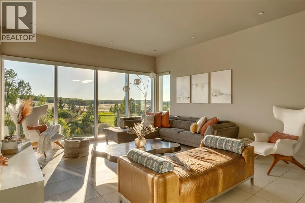 Architecturally inspired by Frank Lloyd Wright and designed to capture breathtaking west-facing views of the Rocky Mountains, this Built Green & Gold Certified, energy efficient estate is one of the most exceptional homes in Bearspaw. Thoughtfully curated on 2.91 pristine acres at the end of a quiet cul-de-sac, this 5 bedroom, 7 bath residence offers over 6,200 sq ft of developed living space, all warmed & cooled via advanced geothermal technology with in-floor heating. Striking floor-to-ceiling commercial grade windows frame the dramatic mountain vistas throughout the home. The chef’s kitchen is impeccably appointed with full Sub-Zero fridge & freezer, six-burner Wolf cooktop, custom hood fan, dual Wolf convection wall ovens, Wolf warming drawer, & Miele dishwasher & coffee station. A substantial quartz island provides abundant prep space, while the built-in kitchen table finished in Capolavoro honed granite adds warmth & texture. Entertain effortlessly as a 15.5-ft NanaWall opens to the spectacular backyard oasis, featuring a built-in Lynx BBQ, custom water feature, natural gas fireplace, & professionally designed landscaping with automated irrigation. The seamless indoor-outdoor flow is ideal for hosting gatherings large &/or small. The main level is completed by a spacious living area with dual-sided fireplace, a west-facing home office filled with natural light, formal dining room well suited for large gatherings, & a well-designed mudroom with extensive built-ins, laundry facilities, & a second floor laundry chute. A covered courtyard with motorized screens, sound system, & natural gas fire table creates an inviting outdoor lounge experience. A bright breezeway connects to the heated 4+ car garage, complete with dog wash & EV charging. The upper level hosts four generous bedrooms. The primary suite & fourth bedroom each feature private ensuites, while the second & third bedrooms share a Jack & Jill bath. The primary retreat rivals a six-star hotel, showcasing a custom built-in king bed & a Holt Renfrew-inspired walk-in dressing room. A thoughtfully designed kids’ media area completes this level. The walkout lower level is equally impressive, offering guest quarters, a media room with blackout blinds, custom banquet seating, wine room, wet bar, & a fitness studio with direct access to the private salt water hot tub. The spa-inspired bathroom features a rainfall steam shower & large infrared sauna, creating the perfect space for healthy detox & rejuvenation. A full Control4 smart home system provides advanced automation (lighting, audio video, temperature, blinds, irrigation, + security) all accessible via your smartphone. The property also has a radon mitigation system & reverse osmosis water throughout. Ideally located with quick access to the mountains, the airport, & the downtown core, this remarkable property offers a rare blend of architectural distinction, cutting-edge technology, & serene natural beauty, call for more information! (id:63190)