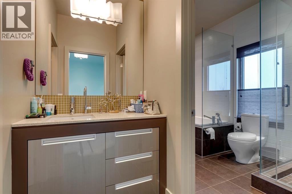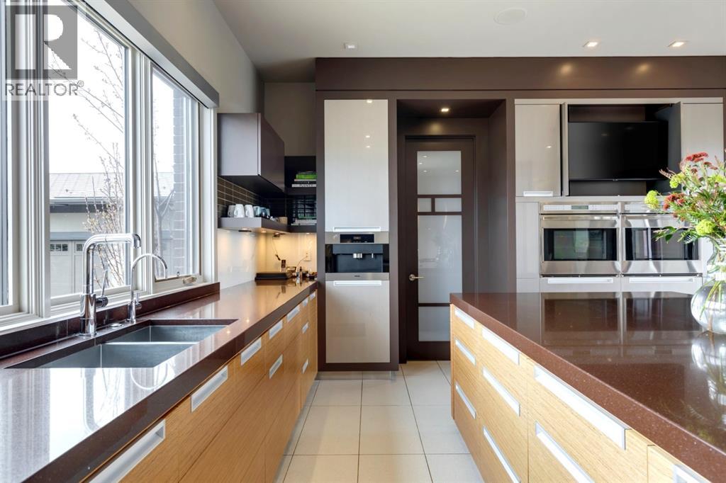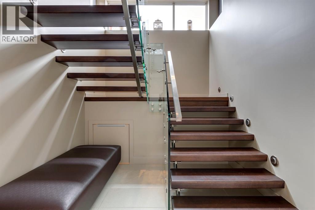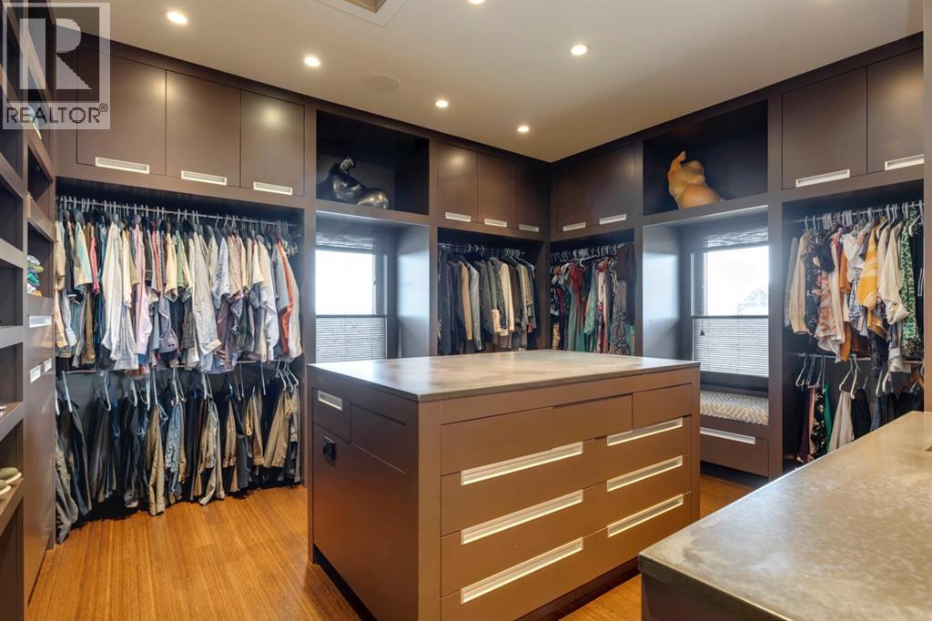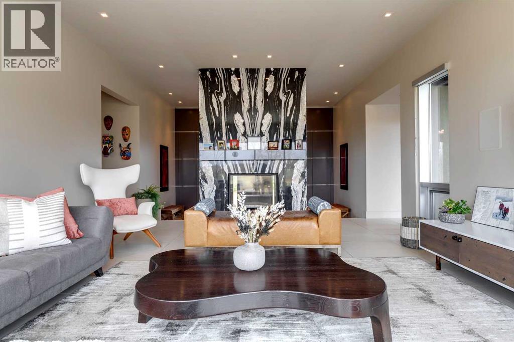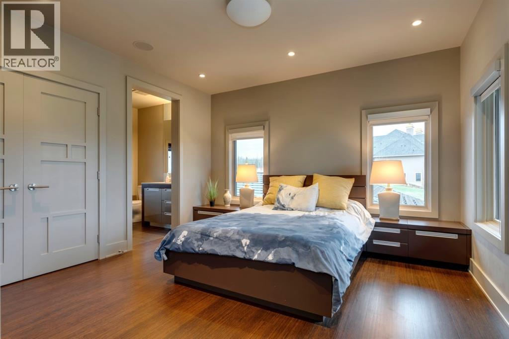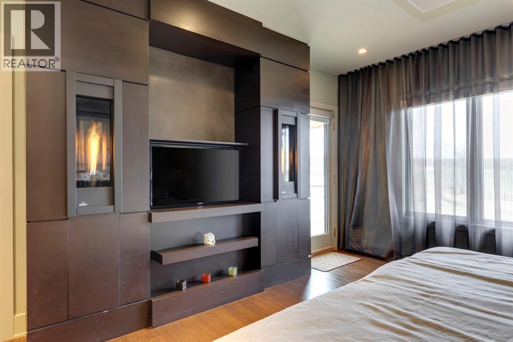 Architecturally inspired by Frank Lloyd Wright and designed to capture breathtaking west-facing views of the Rocky Mountains, this Built Green & Gold Certified, energy efficient estate is one of the most exceptional homes in Bearspaw. Thoughtfully curated on 2.91 pristine acres at the end of a quiet cul-de-sac, this 5 bedroom, 7 bath residence offers over 6,200 sq ft of developed living space, all warmed & cooled via advanced geothermal technology with in-floor heating. Striking floor-to-ceiling commercial grade windows frame the dramatic mountain vistas throughout the home. The chef’s kitchen is impeccably appointed with full Sub-Zero fridge & freezer, six-burner Wolf cooktop, custom hood fan, dual Wolf convection wall ovens, Wolf warming drawer, & Miele dishwasher & coffee station. A substantial quartz island provides abundant prep space, while the built-in kitchen table finished in Capolavoro honed granite adds warmth & texture. Entertain effortlessly as a 15.5-ft NanaWall opens to the spectacular backyard oasis, featuring a built-in Lynx BBQ, custom water feature, natural gas fireplace, & professionally designed landscaping with automated irrigation. The seamless indoor-outdoor flow is ideal for hosting gatherings large &/or small. The main level is completed by a spacious living area with dual-sided fireplace, a west-facing home office filled with natural light, formal dining room well suited for large gatherings, & a well-designed mudroom with extensive built-ins, laundry facilities, & a second floor laundry chute. A covered courtyard with motorized screens, sound system, & natural gas fire table creates an inviting outdoor lounge experience. A bright breezeway connects to the heated 4+ car garage, complete with dog wash & EV charging. The upper level hosts four generous bedrooms. The primary suite & fourth bedroom each feature private ensuites, while the second & third bedrooms share a Jack & Jill bath. The primary retreat rivals a six-star hotel, showcasing a custom built-in king bed & a Holt Renfrew-inspired walk-in dressing room. A thoughtfully designed kids’ media area completes this level. The walkout lower level is equally impressive, offering guest quarters, a media room with blackout blinds, custom banquet seating, wine room, wet bar, & a fitness studio with direct access to the private salt water hot tub. The spa-inspired bathroom features a rainfall steam shower & large infrared sauna, creating the perfect space for healthy detox & rejuvenation. A full Control4 smart home system provides advanced automation (lighting, audio video, temperature, blinds, irrigation, + security) all accessible via your smartphone. The property also has a radon mitigation system & reverse osmosis water throughout. Ideally located with quick access to the mountains, the airport, & the downtown core, this remarkable property offers a rare blend of architectural distinction, cutting-edge technology, & serene natural beauty, call for more information! (id:63190)