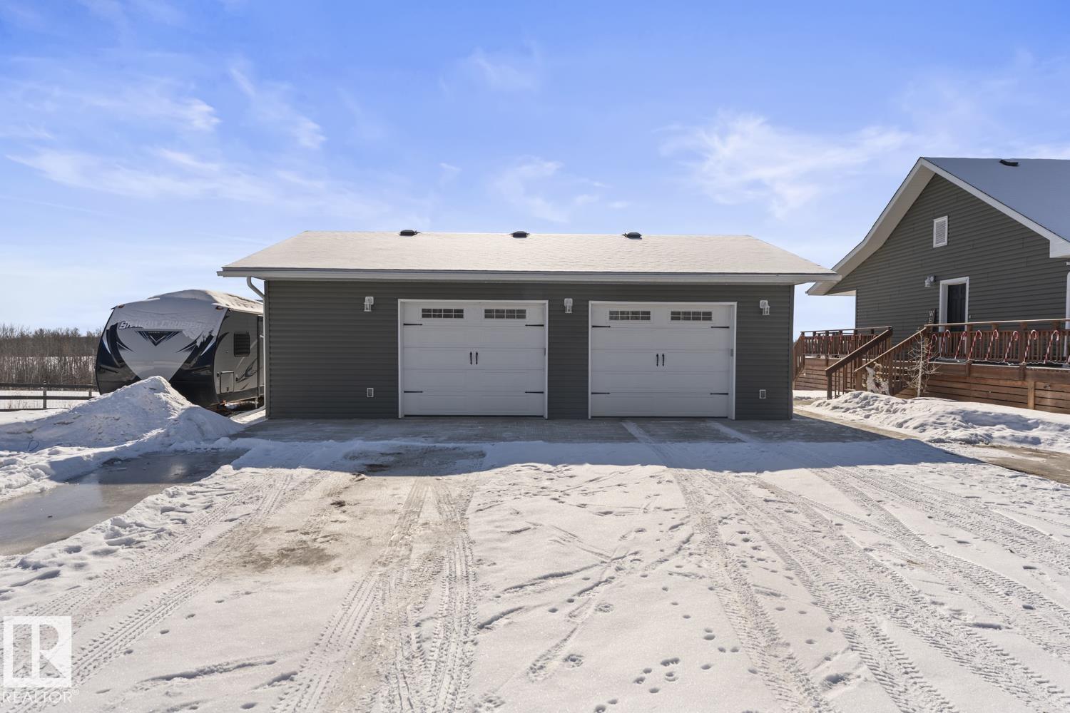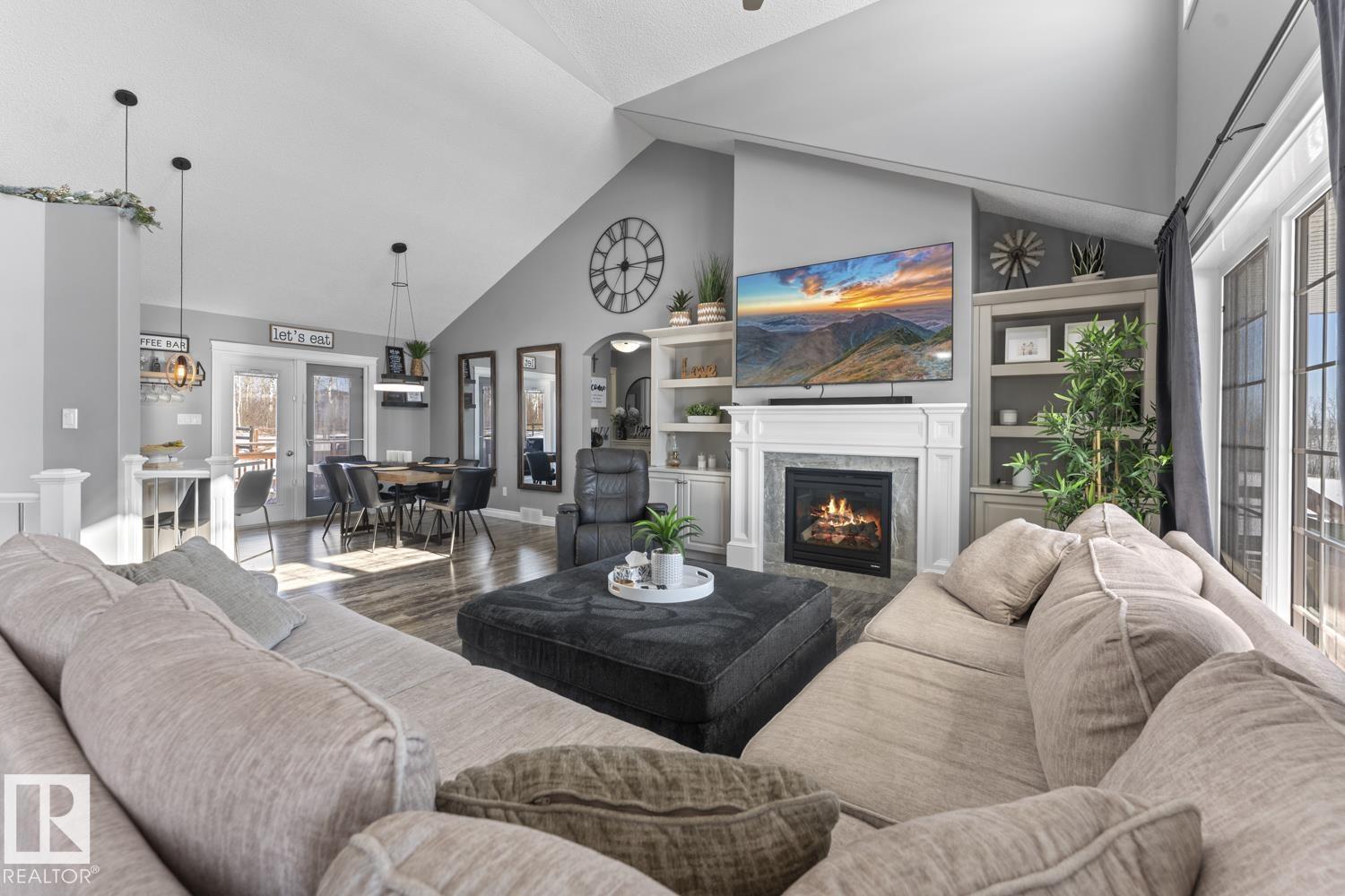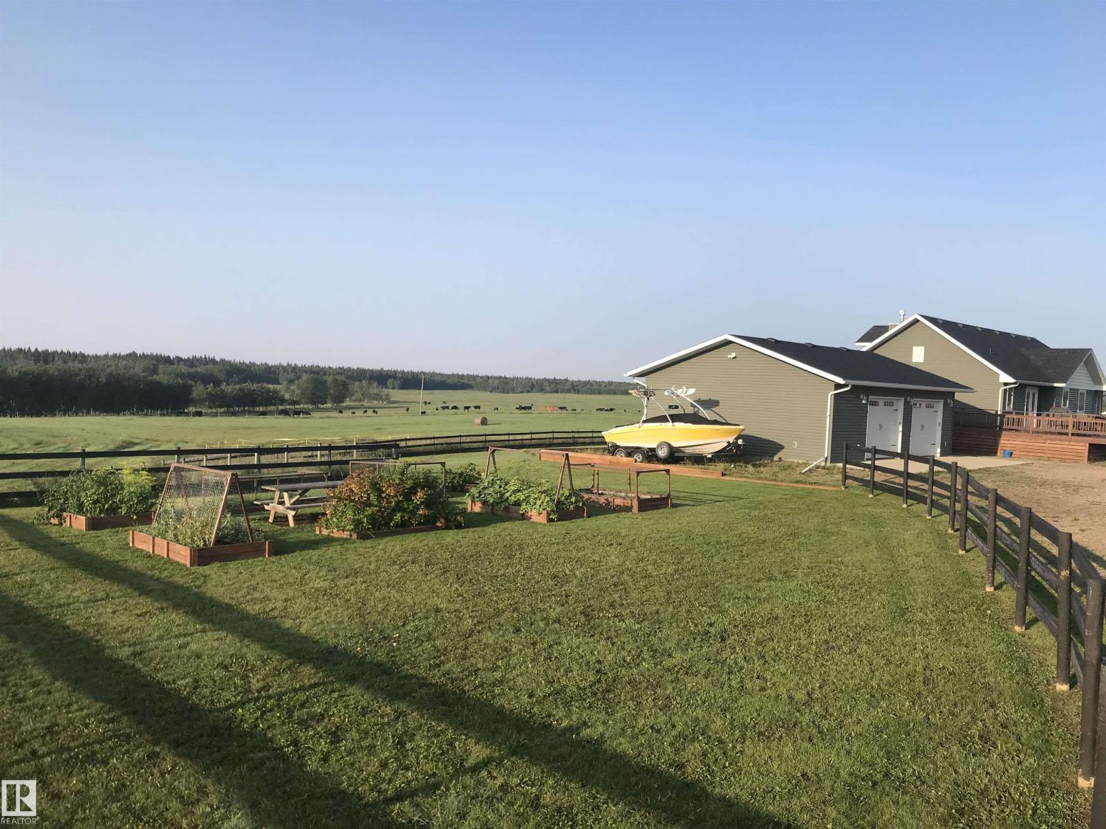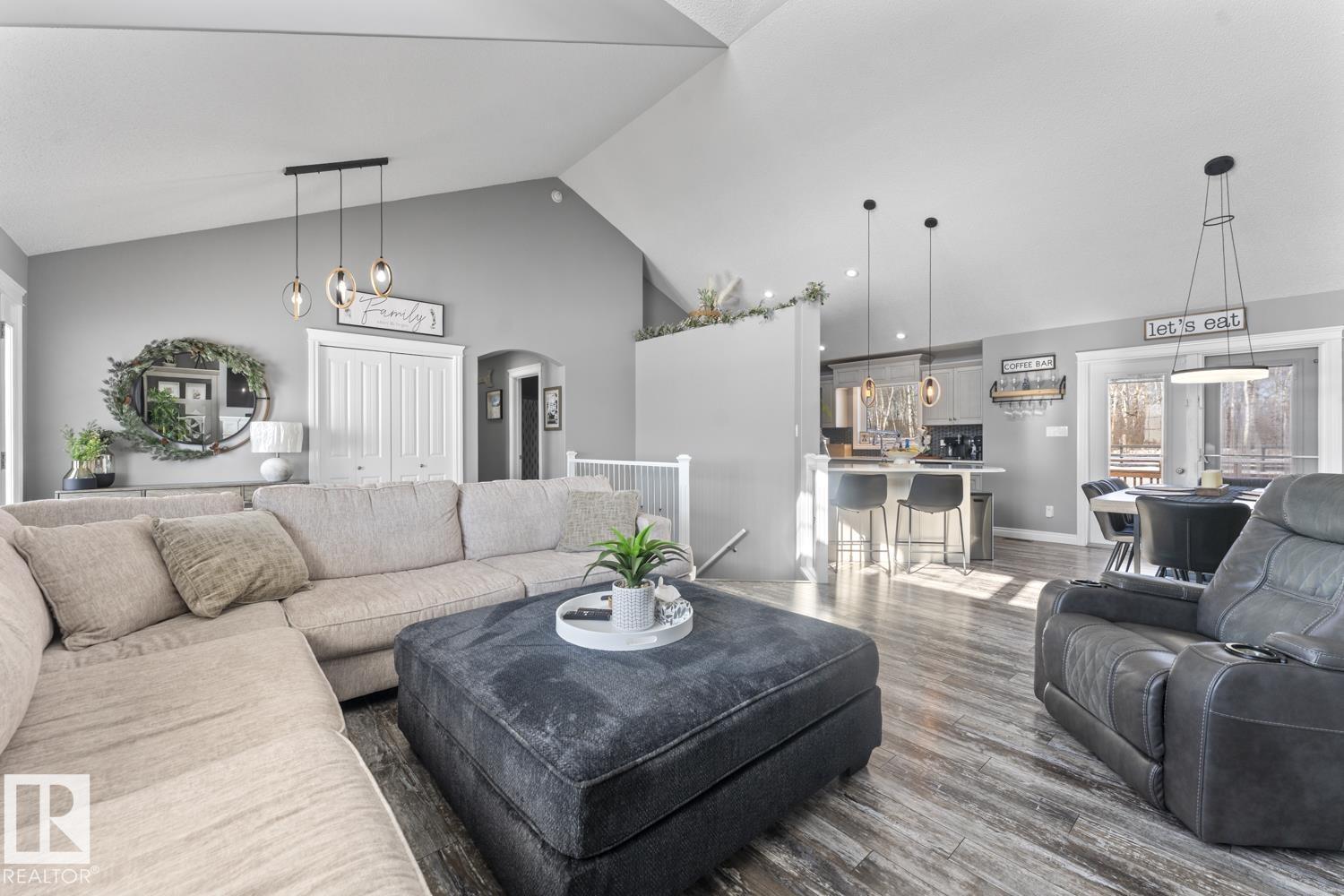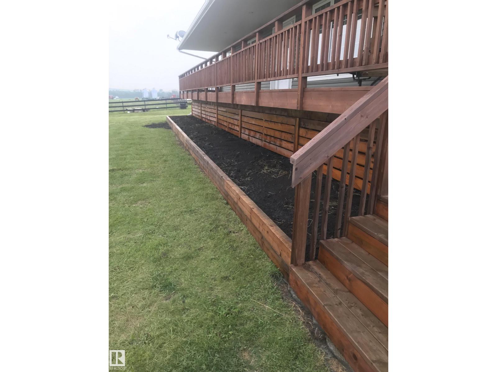What a glorious opportunity to wake up to serenity..birds chirping and the stillness of acreage living.This STUNNING 1614 sft bungalow with 6 bedrooms/3.5 baths sits on 10 acres of fully fenced & cross fenced land.A magazine cover home with main floor laundry,2 piece guest bathroom and a spacious boot room area.Soaring 16' vaulted ceilings, gas fireplace,built in cabinetry & a plethora of windows looking onto the picture perfect landscape.Quartz countertops,NEW appliances, soft close,pantry,eat up island & cream cabinetry.3 bedrooms on this level with the primary housing a walk in closet & a spa like ensuite(jetted tub, tiled shower & his/hers sinks). Central air for hot summer days. The lower level has 9' ceilings, family room,3 HUGE bedrooms and a stylish 3 piece bathroom.16x20 wrap around deck that connects to the front 8X60 covered deck..no better place for morning coffee.Heated 28X35 garage w/RV hook up. Various outbuildings, flower beds & property comes with 2 sheep,5 goats and farm cats. WINNING! (id:63190)