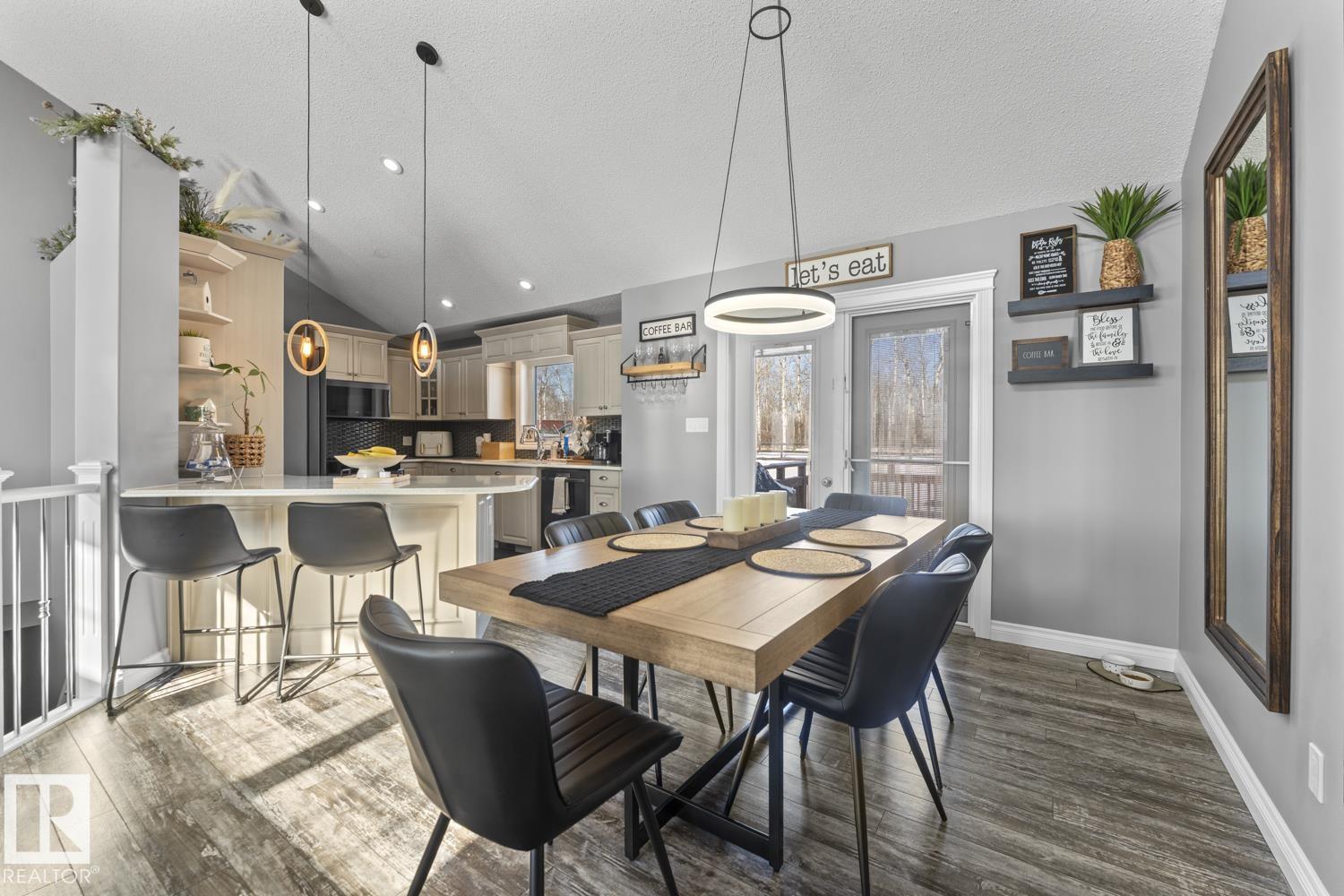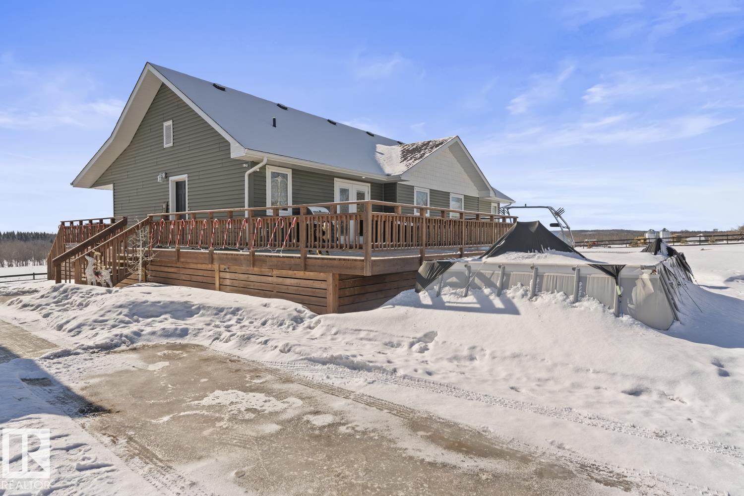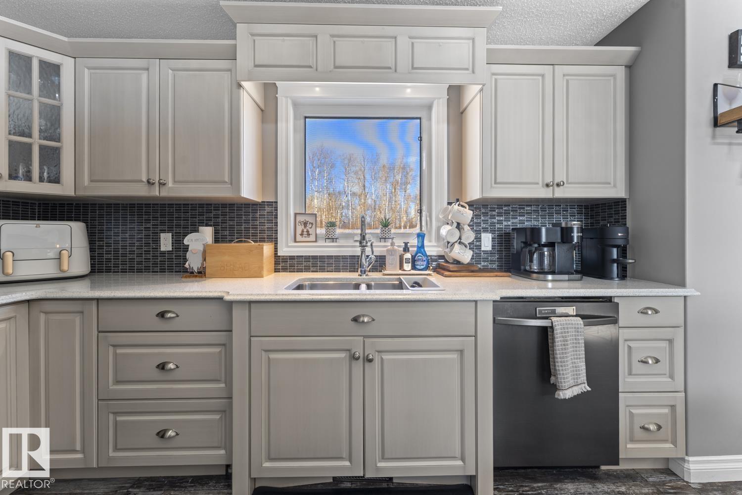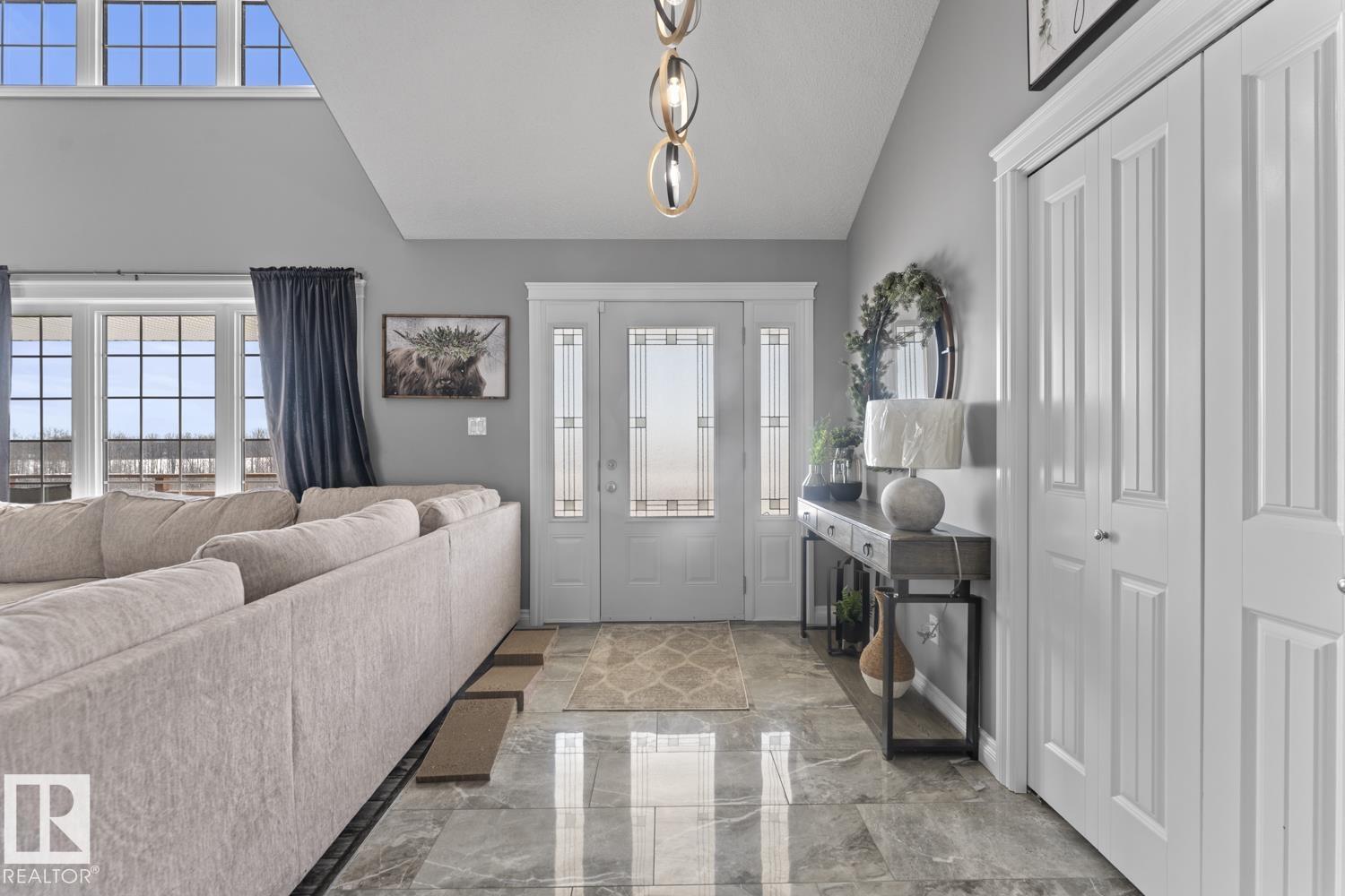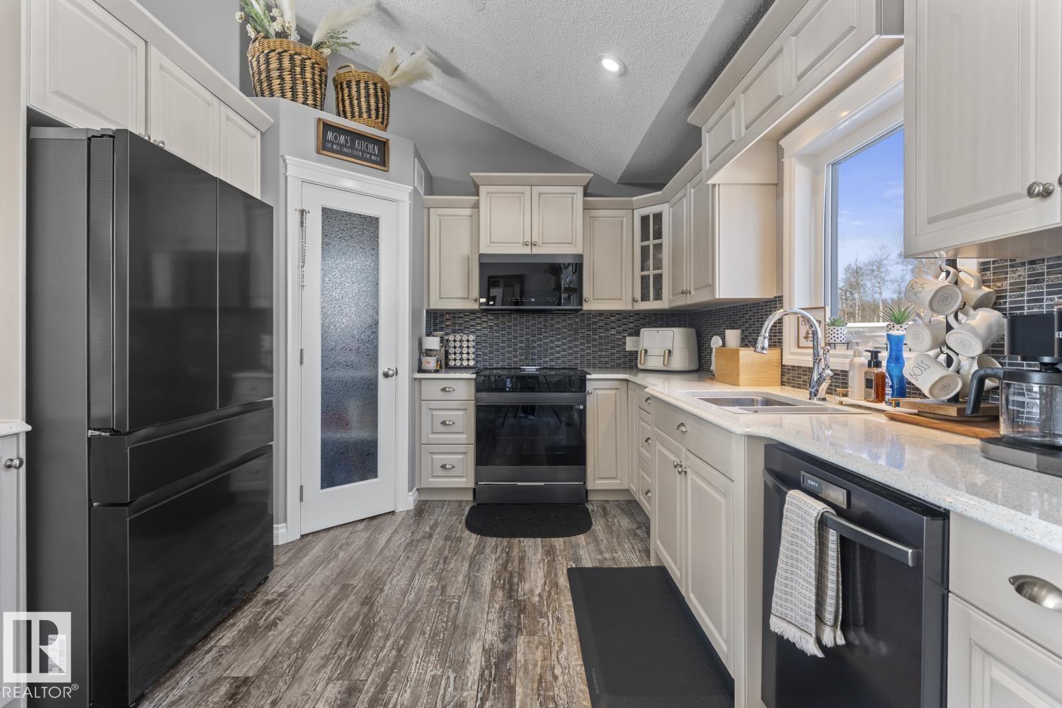 What a glorious opportunity to wake up to serenity..birds chirping and the stillness of acreage living.This STUNNING 1614 sft bungalow with 6 bedrooms/3.5 baths sits on 10 acres of fully fenced & cross fenced land.A magazine cover home with main floor laundry,2 piece guest bathroom and a spacious boot room area.Soaring 16' vaulted ceilings, gas fireplace,built in cabinetry & a plethora of windows looking onto the picture perfect landscape.Quartz countertops,NEW appliances, soft close,pantry,eat up island & cream cabinetry.3 bedrooms on this level with the primary housing a walk in closet & a spa like ensuite(jetted tub, tiled shower & his/hers sinks). Central air for hot summer days. The lower level has 9' ceilings, family room,3 HUGE bedrooms and a stylish 3 piece bathroom.16x20 wrap around deck that connects to the front 8X60 covered deck..no better place for morning coffee.Heated 28X35 garage w/RV hook up. Various outbuildings, flower beds & property comes with 2 sheep,5 goats and farm cats. WINNING! (id:63190)