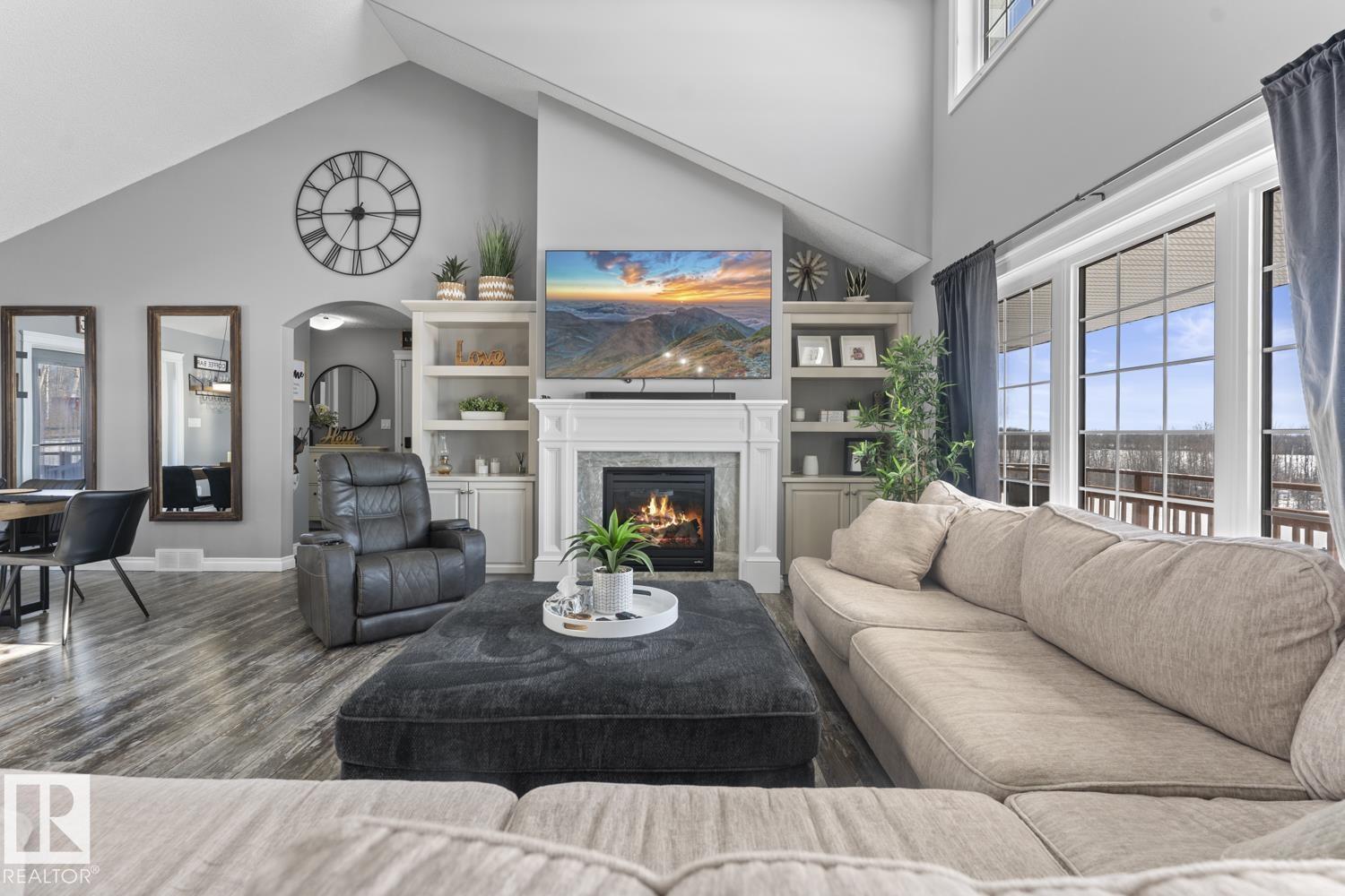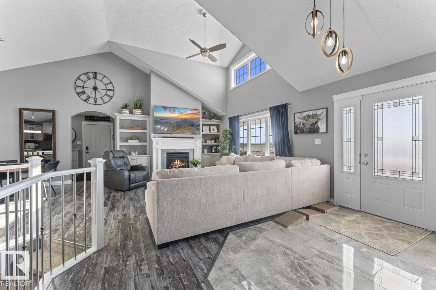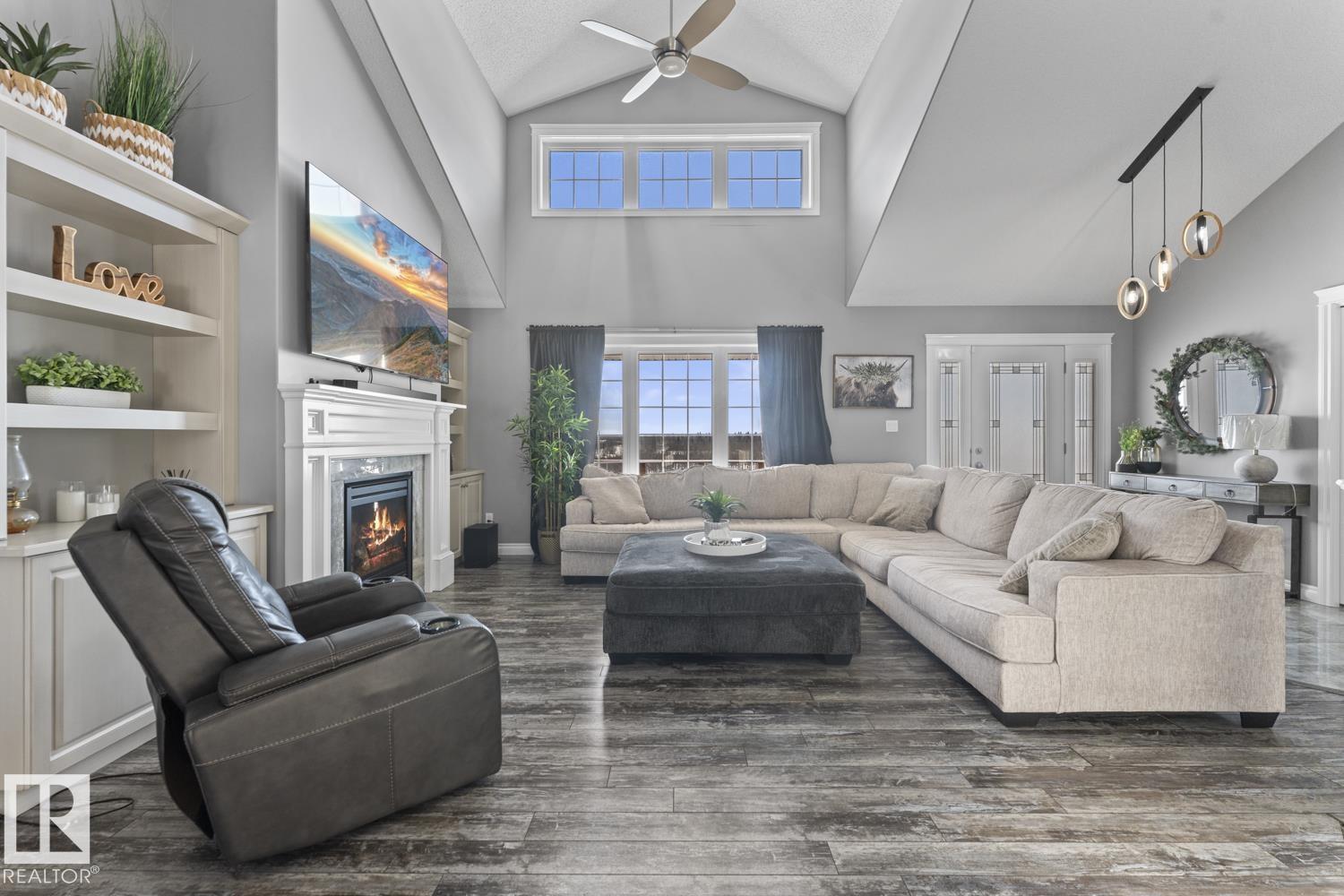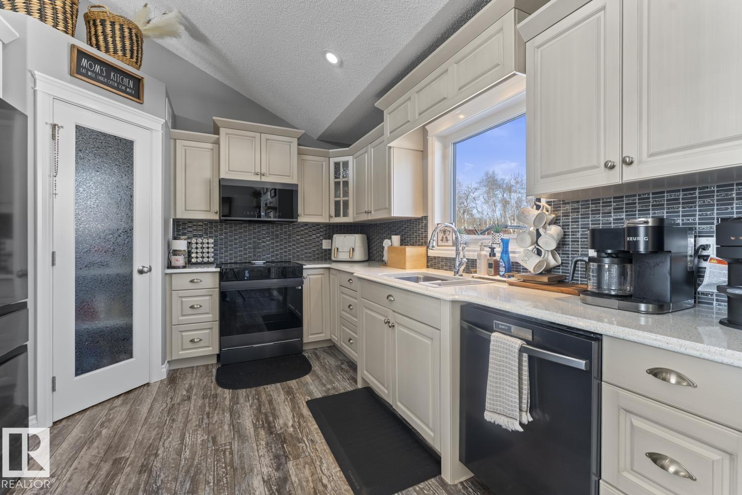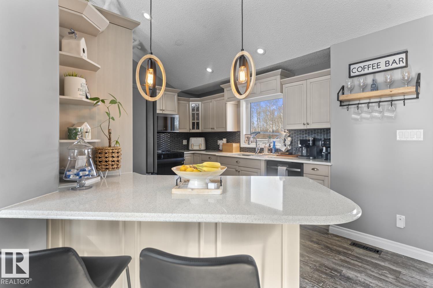 What a glorious opportunity to wake up to serenity..birds chirping and the stillness of acreage living.This STUNNING 1614 sft bungalow with 6 bedrooms/3.5 baths sits on 10 acres of fully fenced & cross fenced land.A magazine cover home with main floor laundry,2 piece guest bathroom and a spacious boot room area.Soaring 16' vaulted ceilings, gas fireplace,built in cabinetry & a plethora of windows looking onto the picture perfect landscape.Quartz countertops,NEW appliances, soft close,pantry,eat up island & cream cabinetry.3 bedrooms on this level with the primary housing a walk in closet & a spa like ensuite(jetted tub, tiled shower & his/hers sinks). Central air for hot summer days. The lower level has 9' ceilings, family room,3 HUGE bedrooms and a stylish 3 piece bathroom.16x20 wrap around deck that connects to the front 8X60 covered deck..no better place for morning coffee.Heated 28X35 garage w/RV hook up. Various outbuildings, flower beds & property comes with 2 sheep,5 goats and farm cats. WINNING! (id:63190)