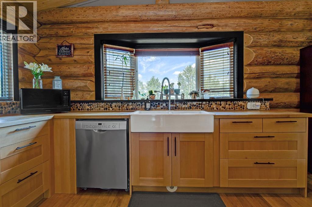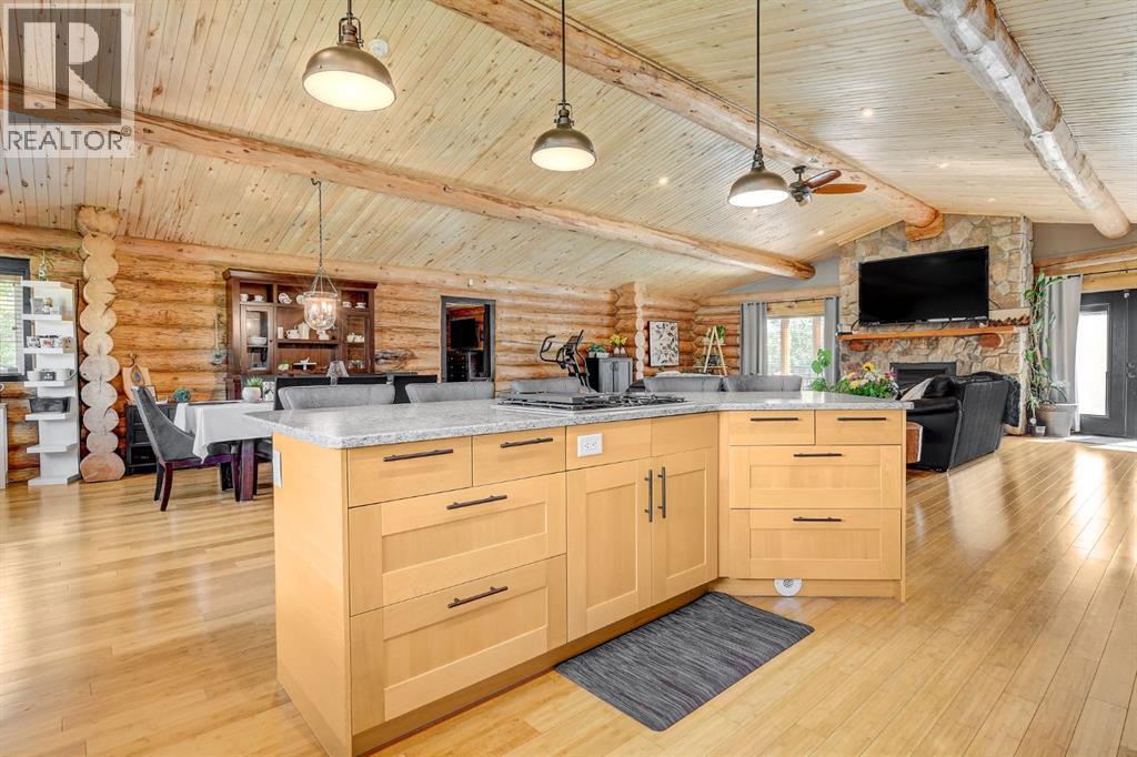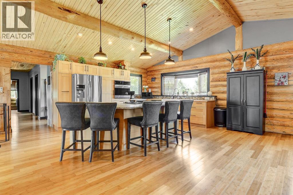 PRIVATE GATED 7-ACRE RETREAT WITH LUXURY LOG HOME AND 60’x60’ HEATED SHOP!Welcome to this extraordinary 7-acre gated and fully fenced estate, showcasing a stunning 2,518 sq ft custom log home built in 2009. This one-of-a-kind property is the perfect blend of rustic elegance and modern comfort, featuring 4 spacious bedrooms, 3 luxurious bathrooms, and a heated 26’ x 28’ attached garage.Step into the open-concept main floor, where you’ll find soaring ceilings, warm bamboo flooring, and a cozy wood-burning fireplace in the expansive living area. The chef’s kitchen is a true highlight with stainless steel appliances, a massive island with quartz counter tops, and ample cabinetry—perfect for entertaining. Enjoy ultimate relaxation in the massive primary suite complete with access to the private deck, pool, and hot tub. The ensuite boasts a steam shower and jetted jacuzzi tub.Three additional bedrooms, a full bathroom with charming clawfoot tub, main floor laundry, and deck access from both the primary and living areas complete the main floor.The fully finished basement features in-floor heating, a large craft room (easily converted back to a 5th bedroom), a gym area, a spacious theatre room, a third full bathroom, and a built-in sauna.Extensive Upgrades Include:•All exterior logs professionally refinished with premium log oil stain•All surrounding decks refinished with high-quality products•New 200,000 BTU boiler•New high-velocity air exchanger•New Boiler Mate hot water system•Central A/C•In-floor basement heat + forced air heating throughoutBackyard Oasis:•Above-ground pool with gas heater•Hot tub in enclosed gazebo•3 natural gas BBQ hookups•Private powered entrance gateMassive 60’ x 60’ Heated Shop:•Fully finished with 11’ x 48’ mezzanine man cave•In-floor heat with insulated floor•Full-length radiant make-up heater•Dual stainless steel sink, shower, RV sewer dump•50-amp interior & exterior RV plugs•Multi ple 20-amp plugs throughout•220V outlets for welder, air compressor, and pressure washer *. Dug out water source for water all outside areas and treesThis exceptional property offers peace, privacy, and high-end amenities rarely found together. Whether you’re seeking a luxurious family retreat or a hobbyist’s paradise, this property delivers it all. (id:63190)