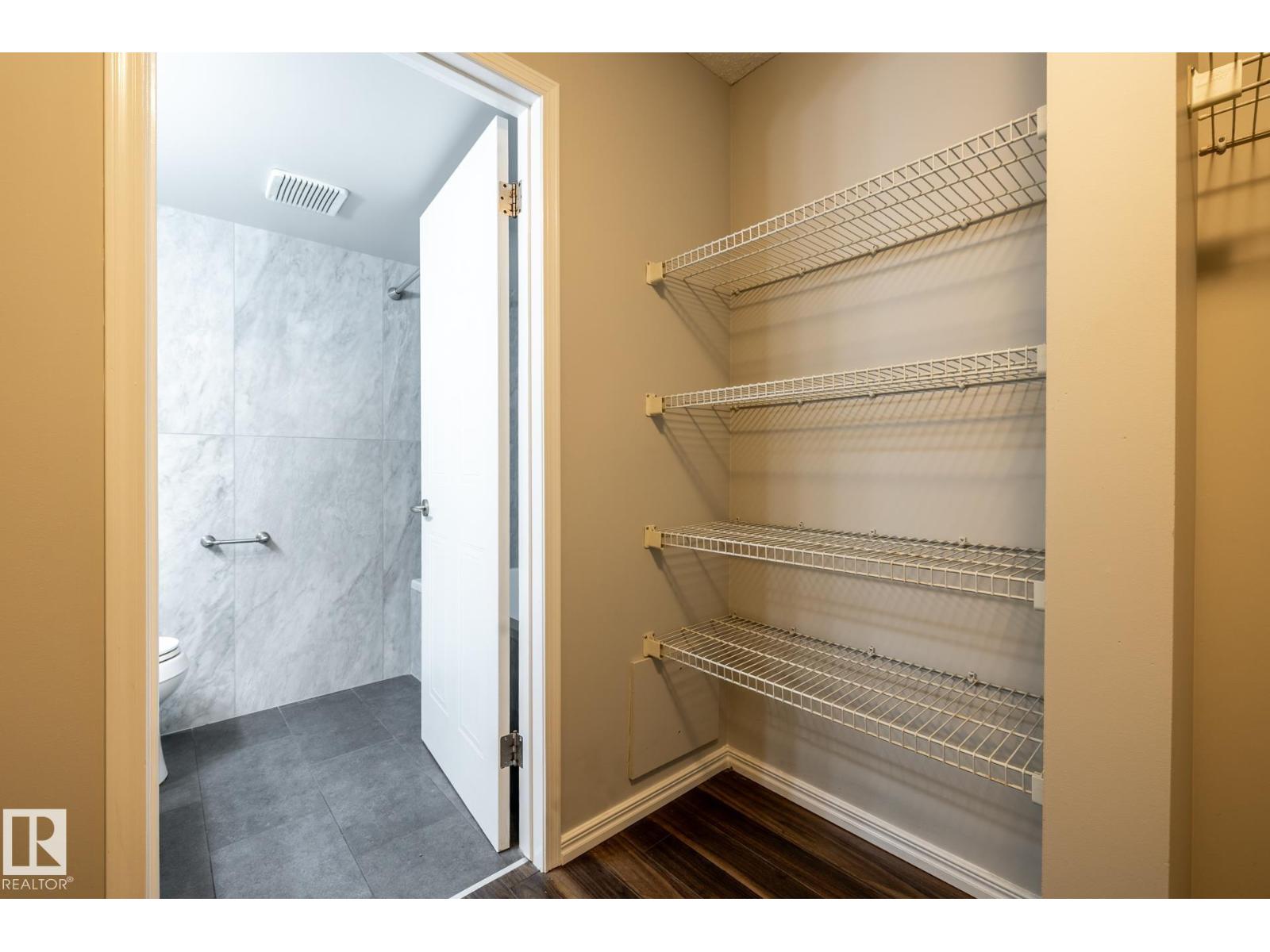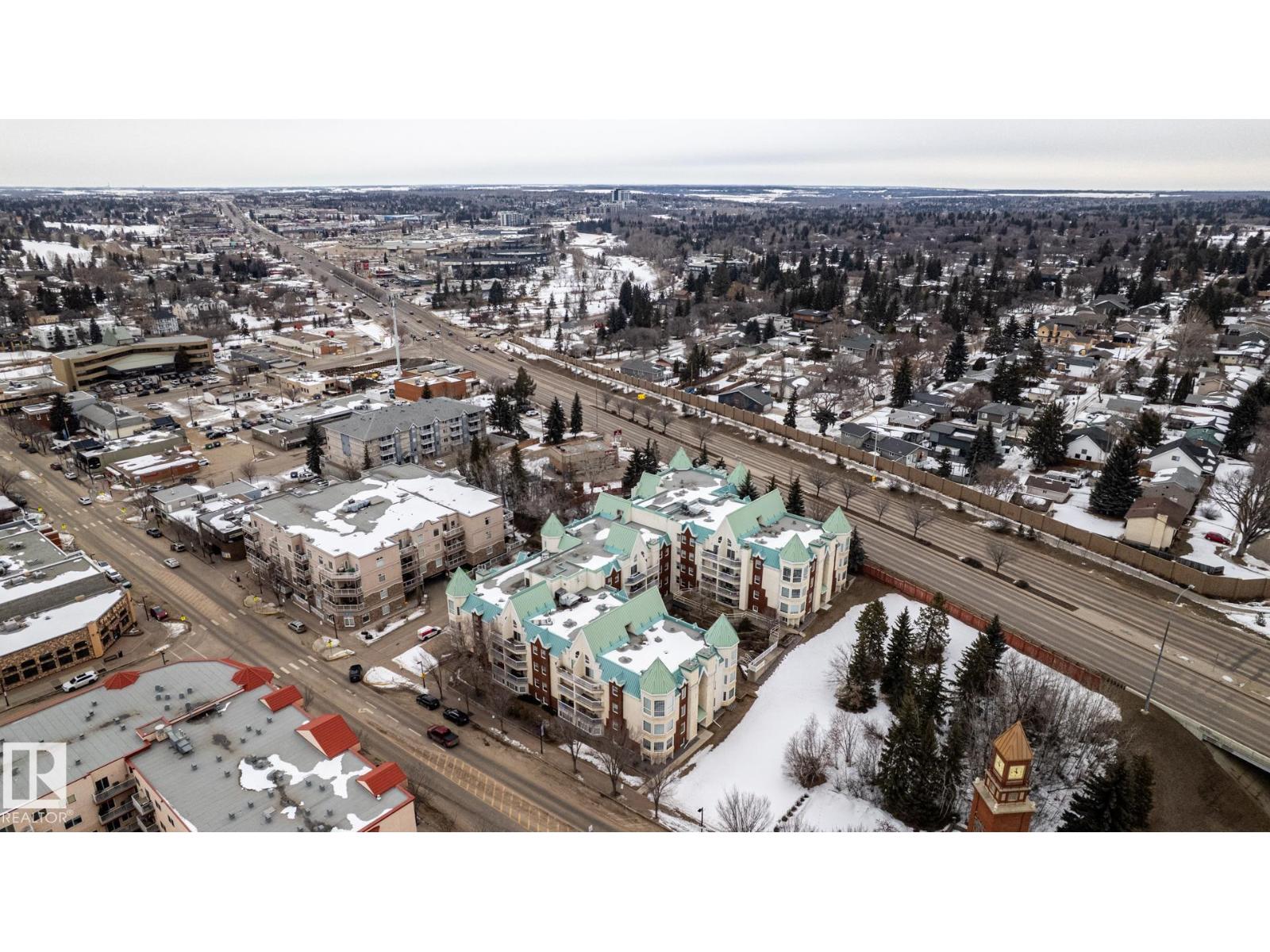 Spacious 1 Bedroom plus Den or small Bedroom, 1.5 bathrooms. Primary Bedroom with balcony, generous closet space, renovated 4 Piece ensuite with floor to ceiling tile, newer vanity and jetted tub. 2 piece bathroom with new floor to ceiling tile, new vanity. Laminate flooring though out, large kitchen open to living room with gas fireplace and balcony. Very generous in suite storage spaces, plus an office nook. One underground parking space. Fantastic location in downtown St. Albert walk to shops, cafe's, restaurants, art and markets. (id:63190)