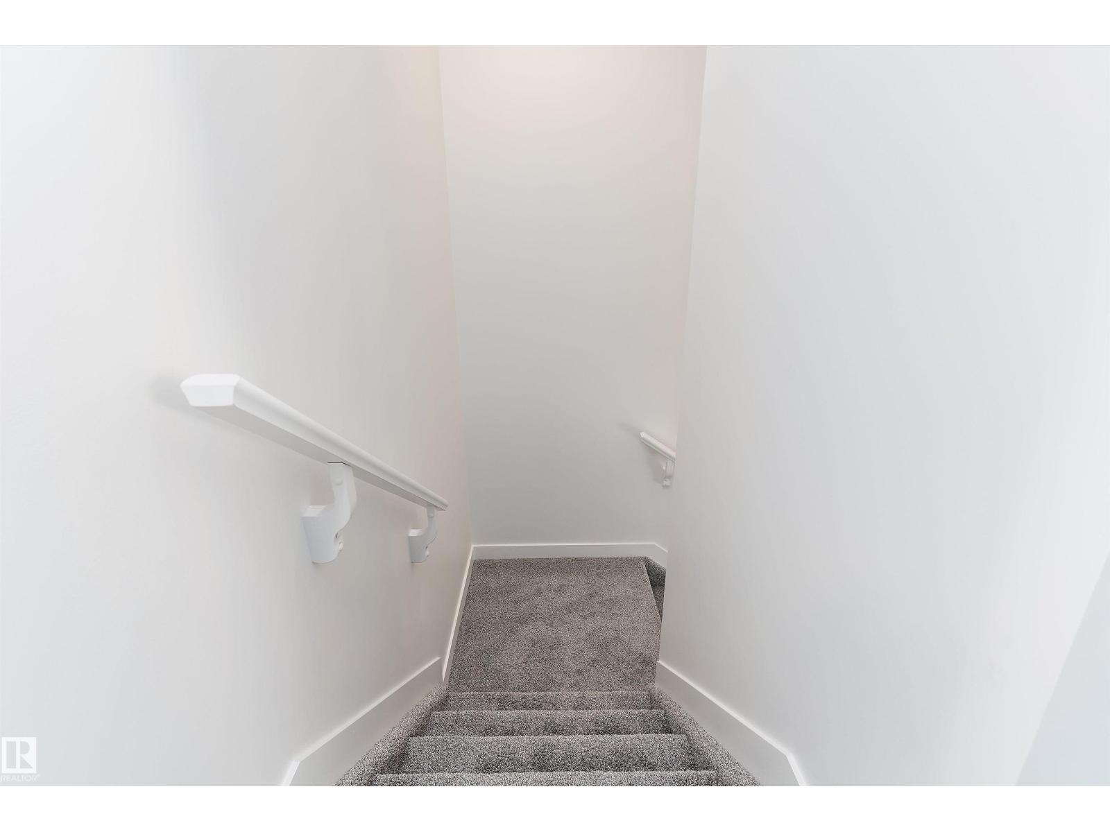 Built by Sterling Homes, this bright laned home in McConachie offers a warm, family-friendly layout with thoughtful spaces throughout. A sun-filled front living room creates an inviting start, leading into a rear kitchen with quartz counters, a Silgranit sink, upgraded cabinetry, and a pantry. The dining area overlooks the backyard, with a half bath and rear entry tucked conveniently nearby. Upstairs, an open loft adds flexible space for work or play. The primary suite features a walk-in closet and a 3-piece ensuite with a glass-door shower. Two additional bedrooms, a full bath, and upper-floor laundry complete the level. With luxury vinyl plank flooring, black fixtures, a separate side entrance, upgraded railings, a backyard parking pad, and basement rough-ins, this home delivers comfort and value in a growing northeast community. (id:63190)