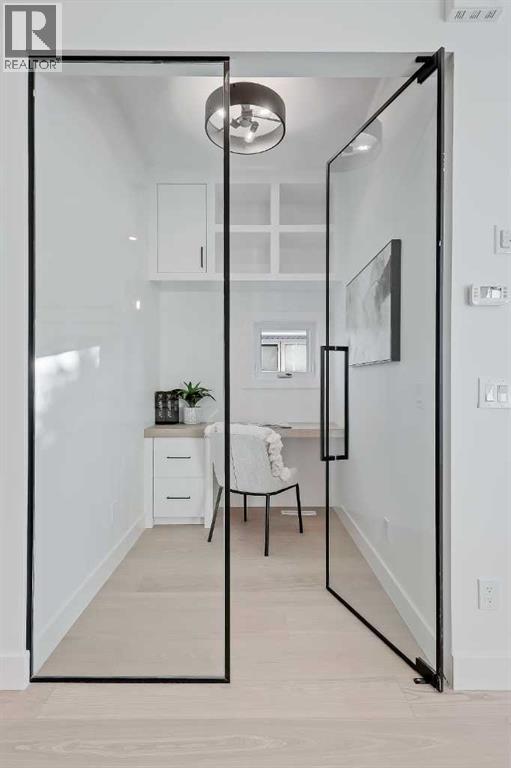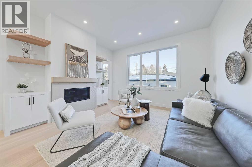 Welcome to this beautifully finished semi-detached infill in Glenbrook, offering a perfect blend of modern design, functional layout, and income potential. Featuring a city-approved 2-bedroom legal basement suite with private entrance, this home is ideal for homeowners seeking flexibility or investors looking for added value.The main floor showcases a bright and open layout with a front dining area surrounded by large windows, filling the space with natural light. The central kitchen is thoughtfully designed with ceiling-height cabinetry, quartz countertops, a large island with seating, and modern lighting. A standout feature is the glassed-in office with a built-in workstation, perfect for working from home or a quiet study space. At the rear, the living room features a sleek fireplace with built-in shelving and oversized windows overlooking the backyard. A convenient mudroom with built-in storage connects to the yard, offering a practical everyday entry.Upstairs, the spacious primary suite features vaulted ceilings, a walk-in closet, and a spa-inspired ensuite complete with dual sinks, glass shower, and freestanding tub. Two additional bedrooms, a full bathroom, a dedicated laundry room with sink, and a versatile bonus room perfect for a flex space for the kids or additional office space complete the upper level.The legal basement suite offers its own private entrance, full kitchen with quartz counters and stainless steel appliances, separate laundry area, a 4-piece bath, and two well-sized bedrooms, including one with a walk-in closet—perfect for extended family or rental use.Outside, enjoy a fenced backyard, concrete patio, and double detached garage with alley access.Located in the heart of Glenbrook, this home is close to schools, parks, shopping, and amenities, including Westhills and Signal Hill. Easy access to Sarcee Trail and Glenmore Trail makes commuting convenient. **Photos from show suite; finishes may vary.** (id:63190)