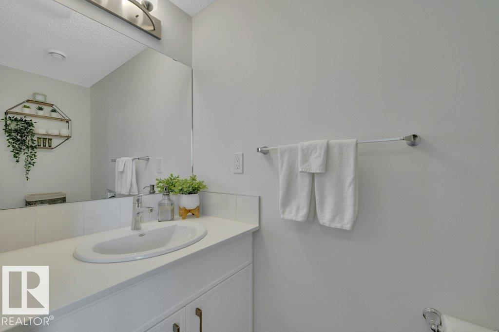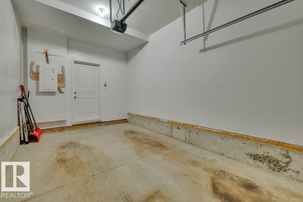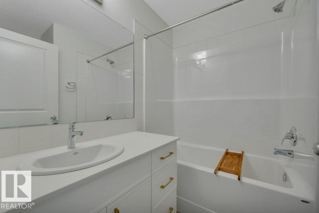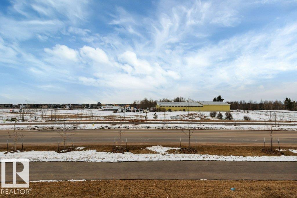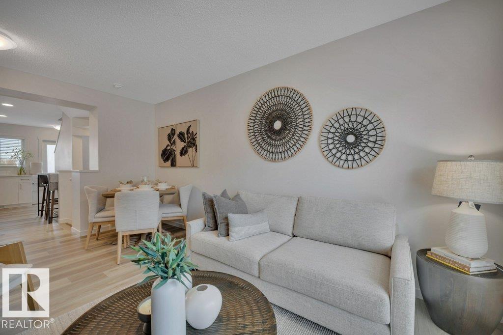 Feels like brand new! This 2024-built townhome in West Secord is in meticulous condition, with modern finishes & upgrades throughout! The main level shines with a bright kitchen featuring quartz counters, subway tile backsplash, brass accents, upgraded induction stove, undermount sink, hood fan/microwave, pantry & garden door to a south-facing balcony with a quiet view. Beautiful vinyl plank flooring flows into the living room with a stunning feature wall complete with custom mantle & electric fireplace. Upstairs, two bedrooms share a four-piece bath with soaker tub, quartz counters & added cabinetry. The primary bedroom boasts an acoustic feature wall. Upper-floor laundry with full-size Samsung Smart Steam washer/dryer. Entry-level powder room with quartz counter. Single attached insulated garage. Low $178/mo. condo fees. Pets allowed, no age restriction. One block from future Lewis Farms Rec Center w/ pool, gym, library, café & hockey rinks. The ideal starter home for singles, couples or young families! (id:63190)