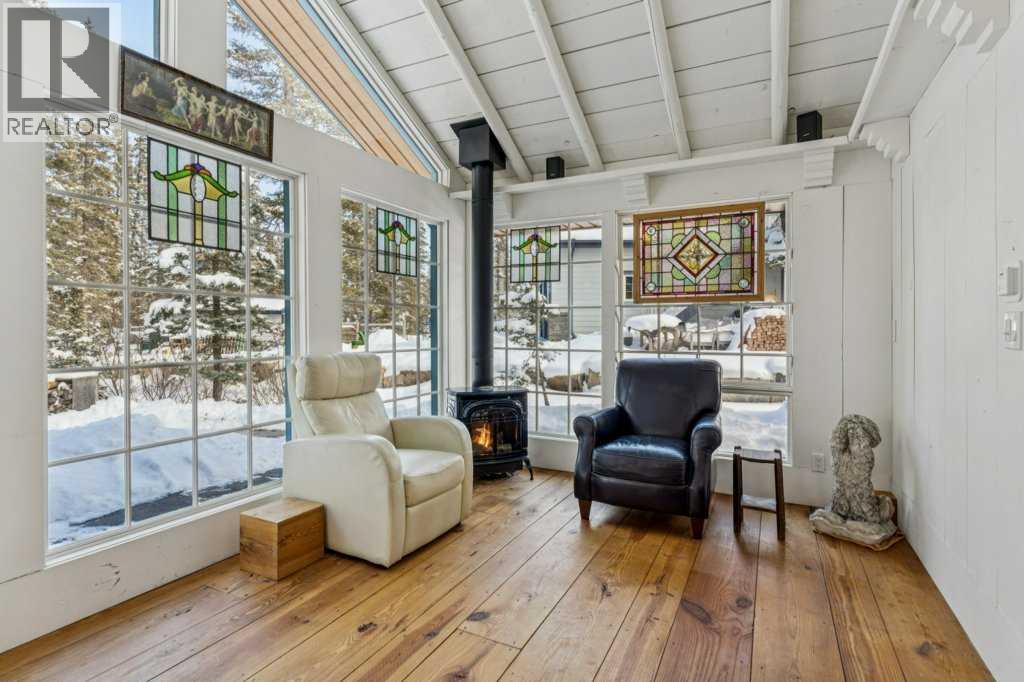 There are a few things that quintessentially define the hamlet of Bragg Creek. The sleepy small-town feel. The connection to nature. And the uniqueness of the homes and architecture, hidden in the trees, continually surprising to discover. This incredible home started life as a one-room log cabin in 1950, and has been extensively renovated and added on to, but retains its character and history. Entering the original cabin, you note the huge stone fireplace, the kitchen with updated appliances, 3-piece bath, and don’t forget to look up- there is a sleeping loft that would be appealing to any kid. Beyond the kitchen is an absolutely incredible sunroom which overlooks the backyard. Continuing on to the addition (added in 1990), you pass a large bedroom with it’s own patio access, the laundry, and a full bath, arriving in a large rec room. This is the perfect place to entertain guests, with a full bar! Proceeding to the back, there is a stunning primary suite, a gigantic room with its own fireplace, patio access, walk-in closet, and captivating 5 piece en suite. Connected to this is a flex room that could be another bedroom, office, gym, or whatever you need! The courtyard patio of the home is a beautiful centrepiece, with a fire-pit to gather around, a stone water feature, and a stone outdoor wood fired BBQ. The backyard also features a small cabin with a full bath- a perfect guest house, craft studio, or Air BnB. The 0.7 acre lot, with it's wilderness setting, gets lots of animal visitors, feels remote, yet is only a 4 minute walk to the shops and restaurants of Bragg Creek, or to the nearby Elbow River. This is a jewel, even among other unique homes, and must be seen! Explore this home using our 3-D tour, and then come experience it in person. (id:63190)