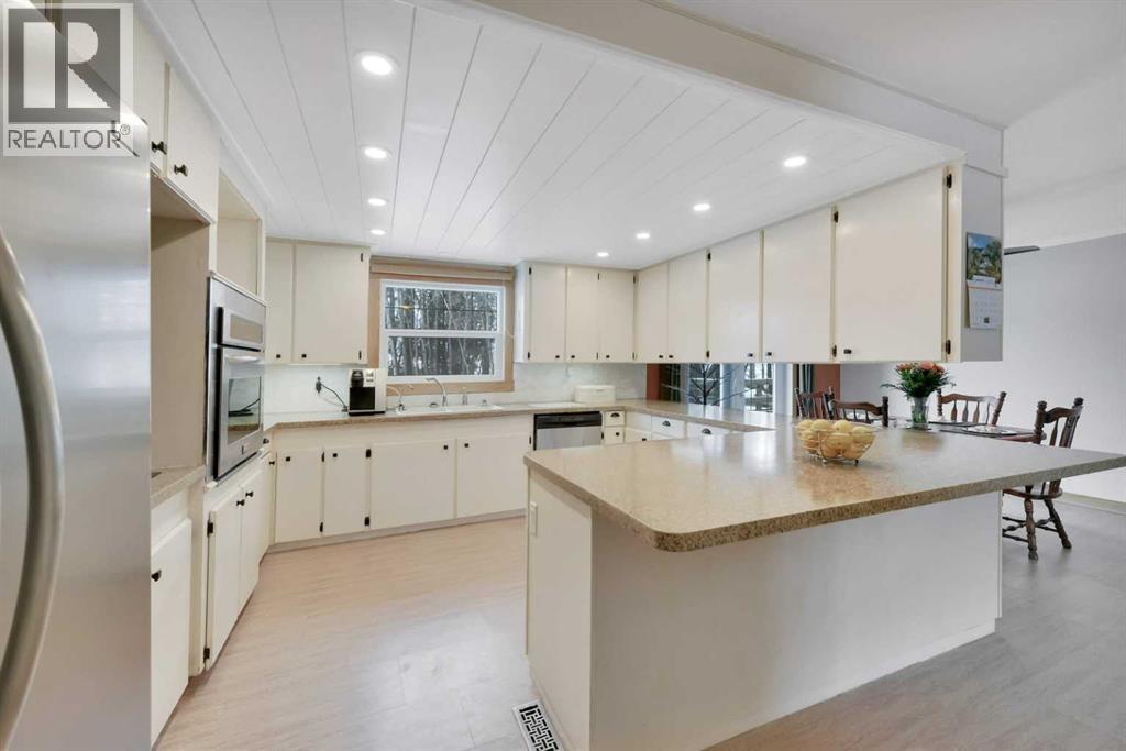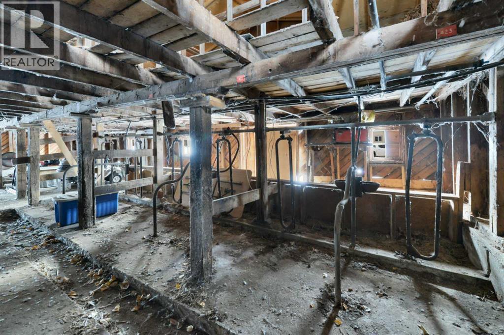 Situated on 10 private acres approximately 10 minutes to Gasoline Alley and Red Deer. This peaceful country property offers space, privacy, and a well-maintained home with extensive updates and multiple outbuildings. Located directly off Highway 42, the property enjoys convenient access while still offering a quiet rural setting with no immediate neighbours on either side. School bus service is available with pickup conveniently located at the end of the driveway.The 1992-built home offers a functional layout of 1649.45 sq feet featuring 4 bedrooms and 3 bathrooms, including three bedrooms on the main level and an additional bedroom and bathroom in the basement. The main floor features a spacious kitchen, large living room with wood-burning fireplace, main floor laundry, and a comfortable primary suite complete with a 4-piece ensuite and double doors leading to the deck. The basement provides excellent additional living and recreation space, including a large entertainment area with a circular birch wet bar, a hot tub with ventilation, additional storage areas, cold storage, access to the garage, and a wood-burning fireplace. Over the past decade the home has seen numerous important upgrades, including triple-pane windows, doors, furnace, and hot water tank. The home also features central vacuum with attachments, and newer vinyl plank flooring, along with quality oak finishes throughout. Heating includes a high-efficiency natural gas furnace along with two WETT-certified Osburn wood stoves with approximately 85,000 BTU capacity, providing both comfort and backup heating options. A wood pellet stove is also installed in the garage. The property features an oversized attached double garage with drywall, blown-in insulation, built-in shelving, mezzanine storage, and double-pane windows. Outside, the acreage offers exceptional rural functionality with a large deck with seating, hot tub, and firepit area. The front yard offers a wonderful blend of mature landscapin g and productive garden space. Fruit trees include apple, crab apple and plum, saskatoon berries, chokecherries, high-bush cranberries, and rhubarb. There are several agricultural outbuildings throughout the property including a 1950s dairy barn, storage shed, pole-frame combine shelter, and multiple animal shelters. In 2024, a new organic septic treatment system with four tanks and fermentation process was installed, designed to significantly reduce maintenance with pumping typically required only every 5–8 years. The system includes alarms and backup float protection. The property includes a well with newer pump and pressure system.With its combination of privacy, functional outbuildings, updated mechanical systems, and easy access to Red Deer, this acreage offers a rare opportunity for those seeking space, rural living, and flexibility with the bonus agricultural zoning. (id:63190)