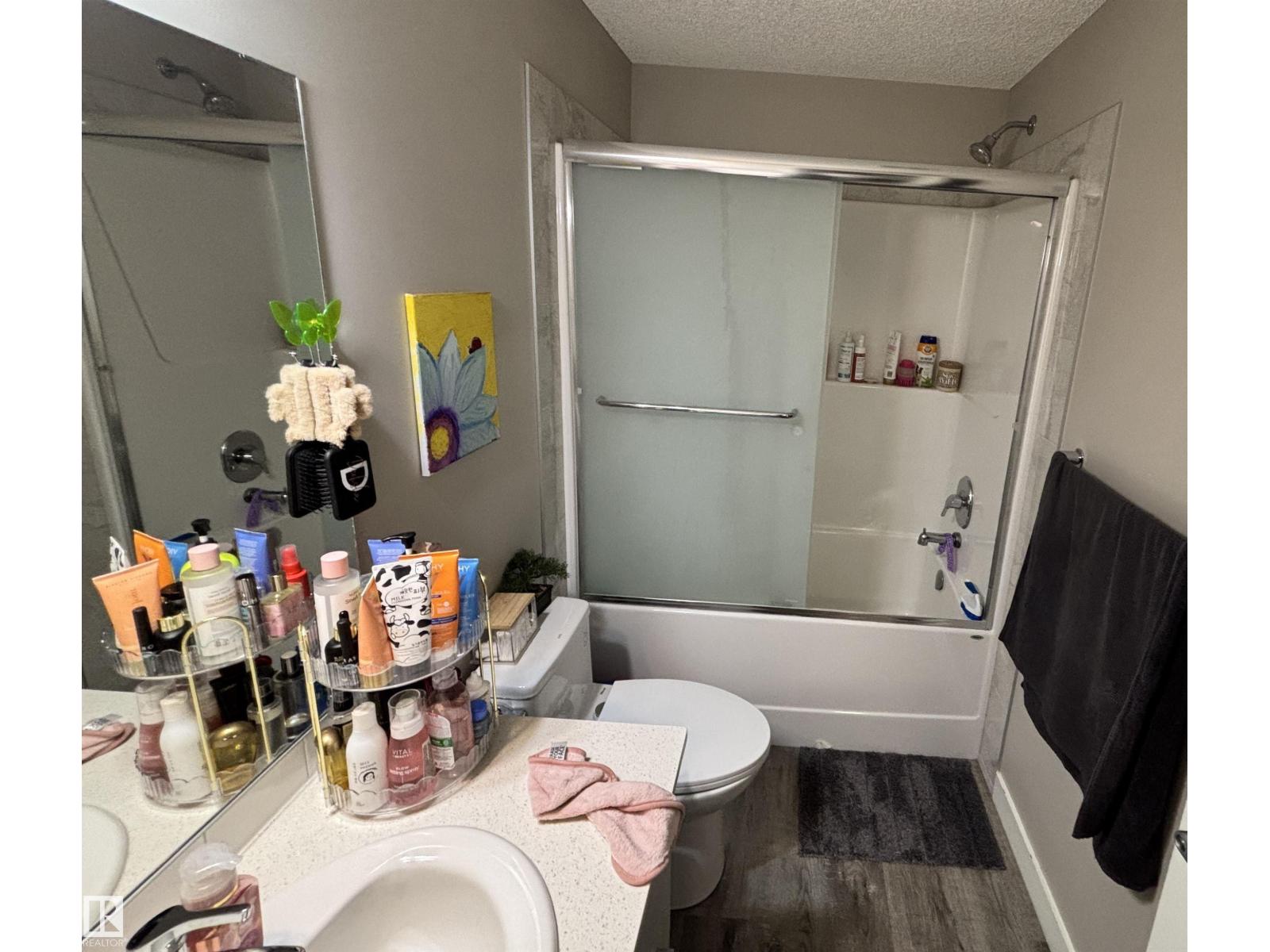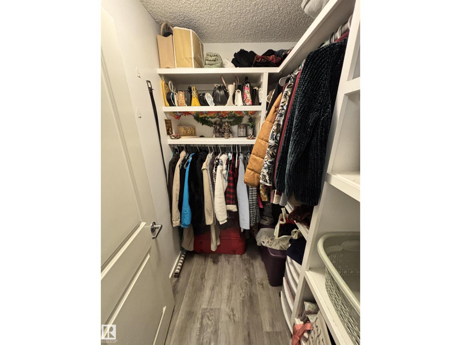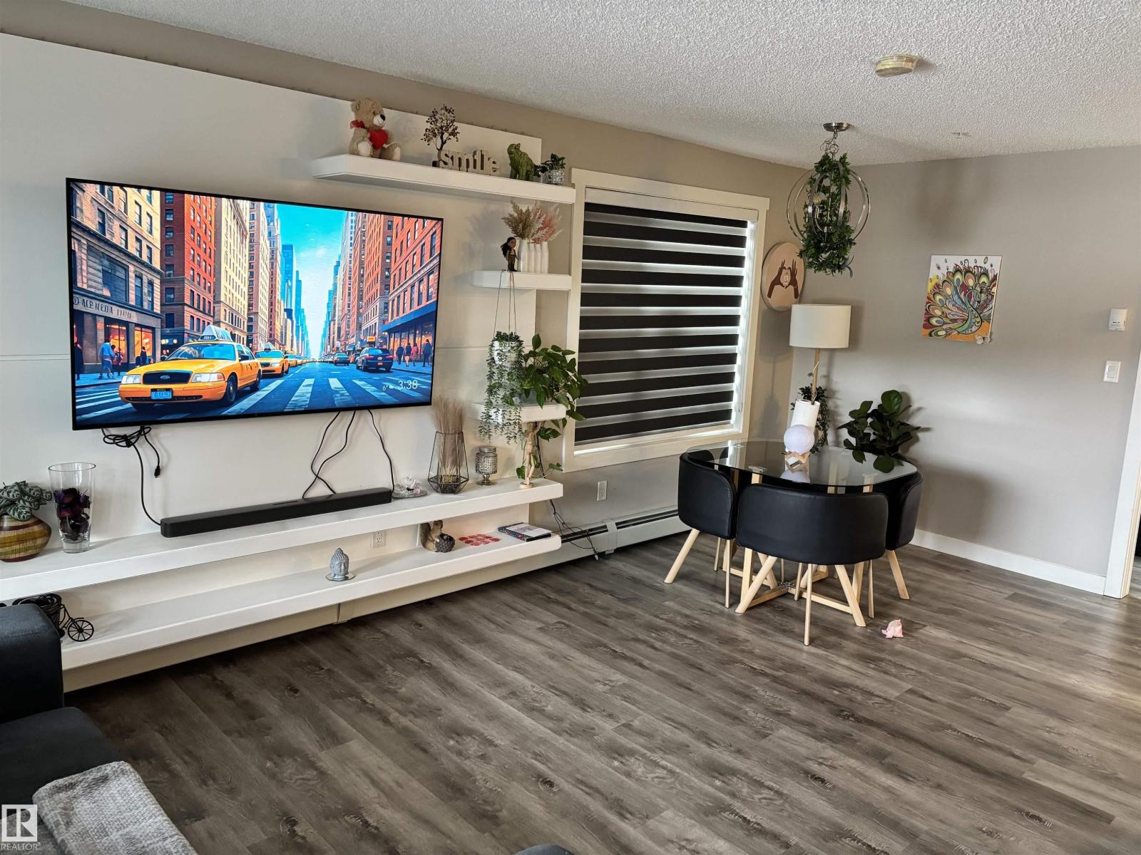 Nestled in the community of Tamarack, ALOFT TAMARACK is a vibrant place that is centrally located close to all amenities like shopping, schools, entertainment, highways like Henday and Whitemud. This stylish 2 bedroom and 2 bathroom home offers 1012 sq. ft. with thoughtfully designed floor plan. A wide open layout with a beautiful kitchen featuring abundance of cabinets, Quartz countertops, stainless steel appliances, full tile backsplash. The kitchen overlooks the huge living room area, open to the dining area and step onto private patio, perfect for relaxation, entertaining and family gatherings. The master bedroom has a walk-in closet and bathroom. This well-designed and well maintained condo provides many upgrades like deeper and higher cabinets, a feature wall and led lighting, huge windows for natural light, deck, stacked washer/dryer leaves space extra space for storage. The building has a security system. Perfect home for first time buyer. Aloft is a place that you can easily call your home. (id:63190)