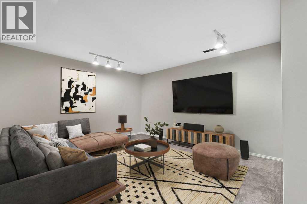 The developed basement provides a comfortable family room perfect for movie nights, relaxing, or gathering with friends