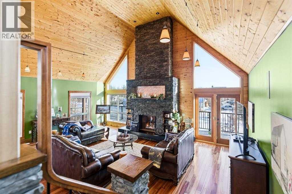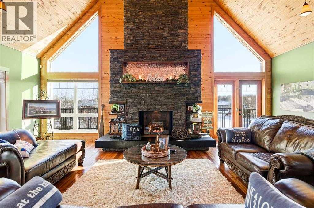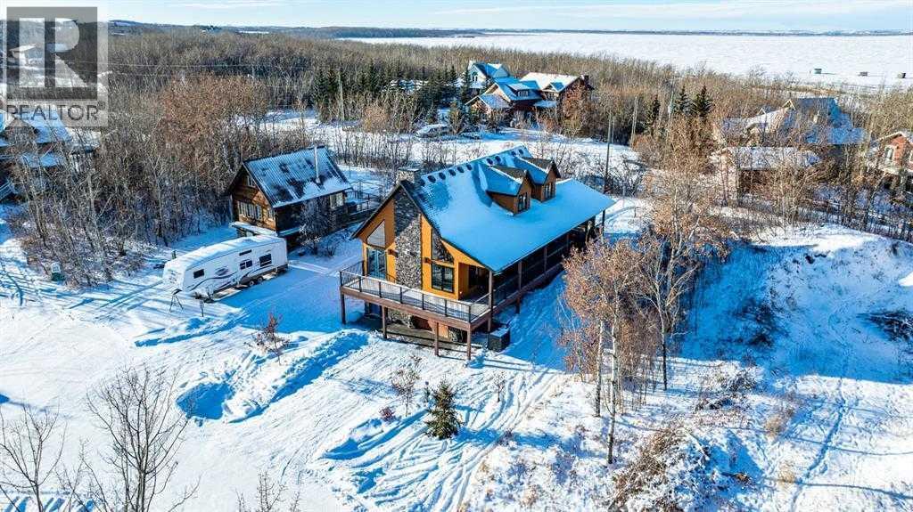 Located at one of Alberta’s largest lakes, Buffalo Lake is truly one of the area’s best-kept secrets. Welcome to Buffalo Sands, a close-knit lake community offering a four-season lifestyle ideal for weekend escapes, unwinding after work or full-time living. This exceptional lakehouse-inspired chalet is not an A-frame cabin, but a thoughtfully designed home with architectural character, warmth and timeless appeal. This beautifully maintained 1½-storey, fully finished home features a front walkout entry-level with 9’ ceilings and in-floor heating, offering comfort and practicality year-round. The attached double heated garage (12’6” x 33’6”) is fully finished, painted, wired and includes a floor drain, upgraded lighting, new electrical panel, and generator hook-up panel. Step inside to a welcoming tiled foyer with generous storage and a stylish 2-piece bathroom. A few steps up, the great room impresses with soaring 19’ vaulted ceilings, polished hardwood floors and a stunning floor-to-ceiling stone fireplace with copper insert, framed by stone pillars inside and out. Large windows flood the space with natural light and showcase tranquil views. The kitchen is designed for both everyday living and entertaining, featuring polished concrete countertops, a premium WOLF gas stove, stainless steel appliance package, corner sink, pantry, breakfast bar and a custom coffee station. Three doors provide seamless access to the massive three-sided wrap-around covered deck, perfect for hosting or relaxing outdoors. The primary bedroom offers a walk-in closet with built-in organizers and a spa-inspired ensuite with an upgraded steam walk-in tiled shower and glass doors. The upper-level loft overlooks the main living space and includes two additional bedrooms and a 4-piece bathroom—ideal for guests, family a library or office nook and direct access to a covered outdoor courtyard complete with a gas fireplace. The entry-level walkout features in-floor heat, a newly created recreation r oom/could be additional bedroom with plush carpeting, cabinetry and feature dart wall, a large utility/laundry room with epoxy flooring and extensive storage, workshop/boiler room. Outdoor features include multiple conversation areas a fire pit and maintenance-free decking with storage underneath. Recent upgrades include new WOLF stove, stainless refrigerator, Samsung washer/dryer, boiler, furnace and A/C unit, hot water tank, sound system (inside and out), lighting upgrades, paint, cabinetry refinishing, garage improvements, widened driveway, additional parking pad, landscaping/ new sod and stone enhancements. A unique highlight is the walking trail behind the home providing direct access to the lake, beach, docks, playgrounds, pond - skate, canoe or country ski on trails. The property includes the right to boat slip in the community marina (on separate title). Full time residence or your new income / rental escape! This is lake living at its finest-be prepared for love at first sight. (id:63190)